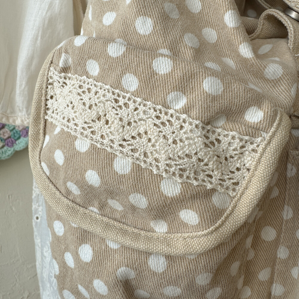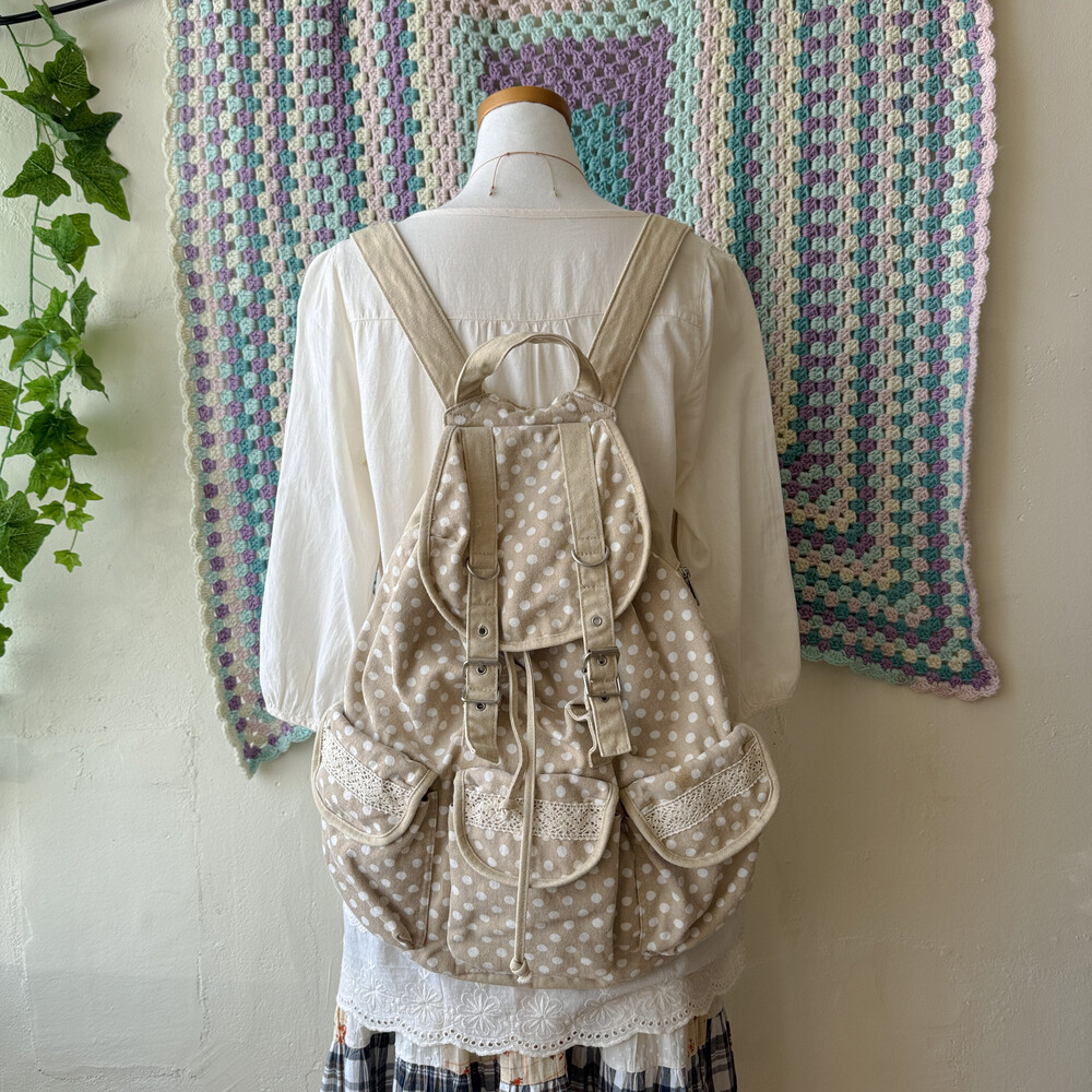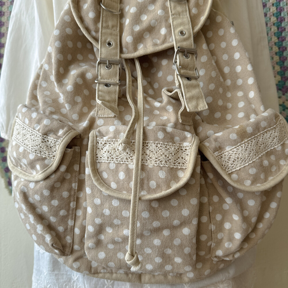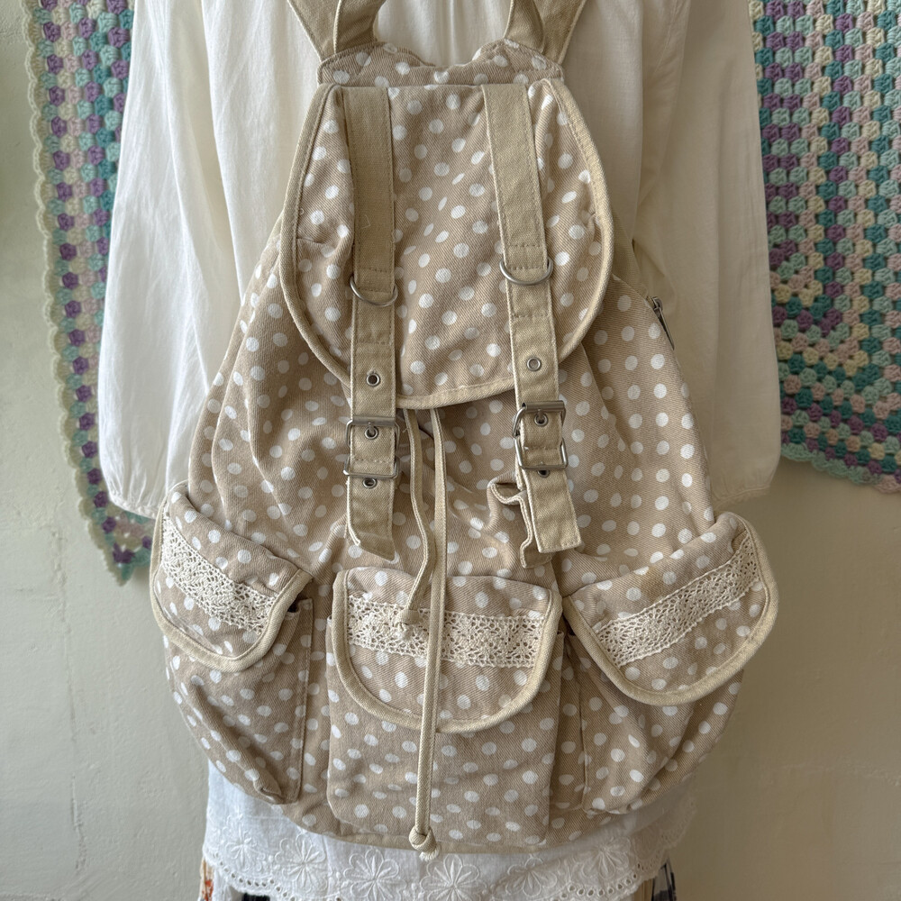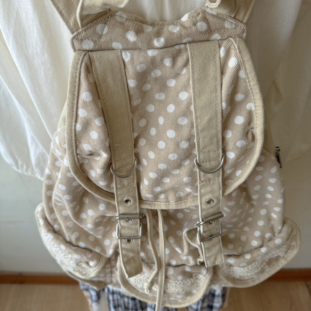 beige dot 3 pocket backpack