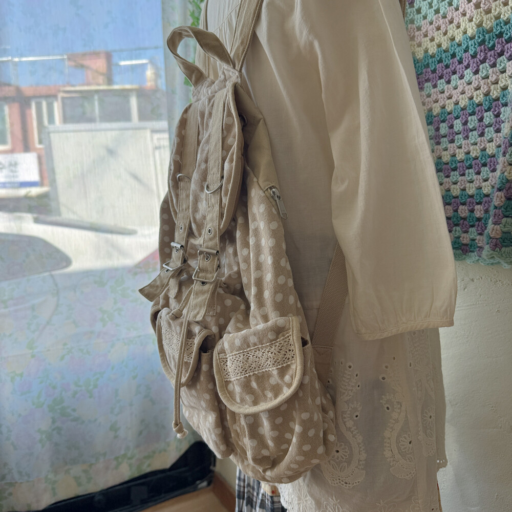 베이지 색감의 도트 3포켓 백팩이에요