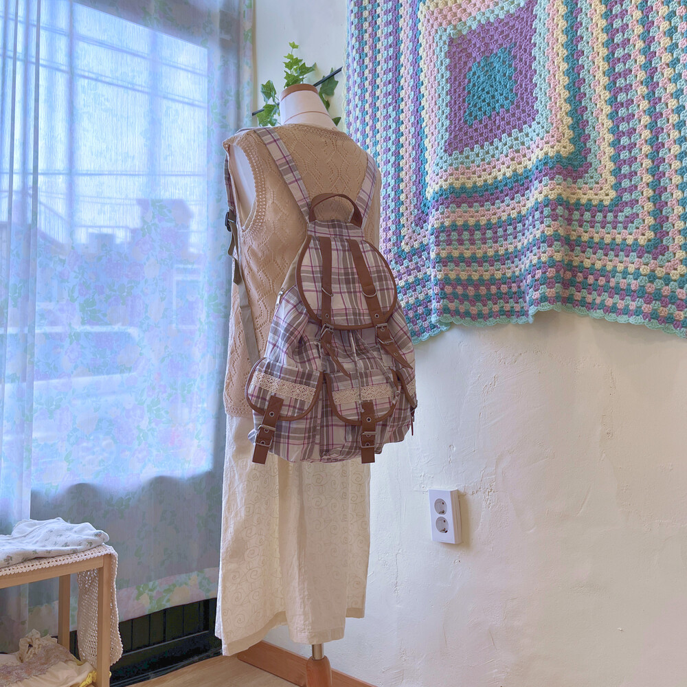 코지한 분위기의 체크 포켓 백팩이에요
