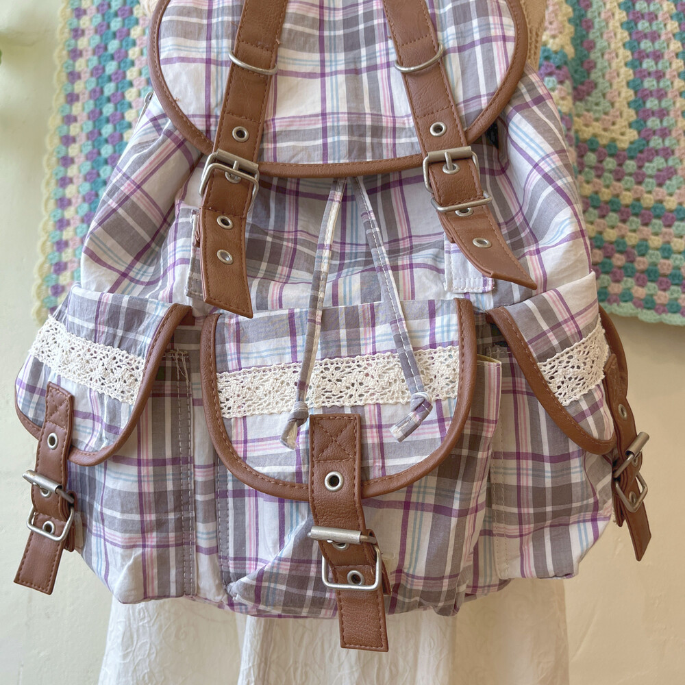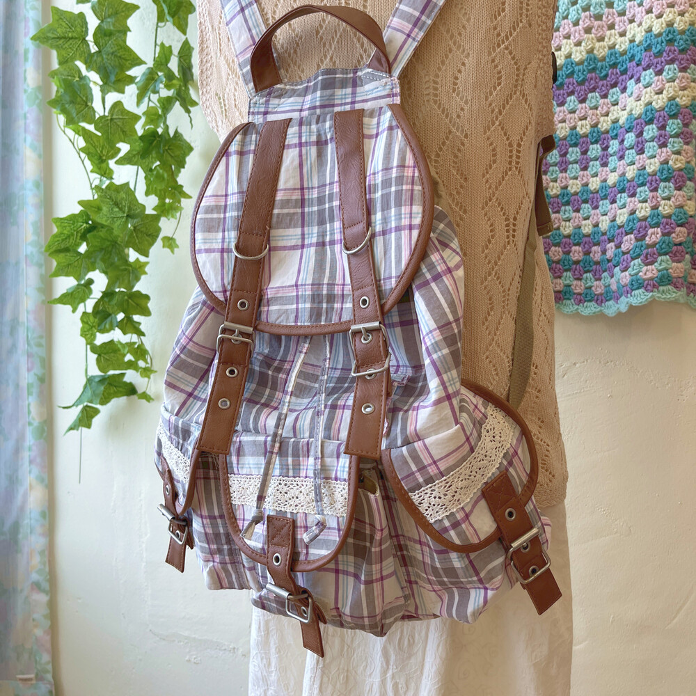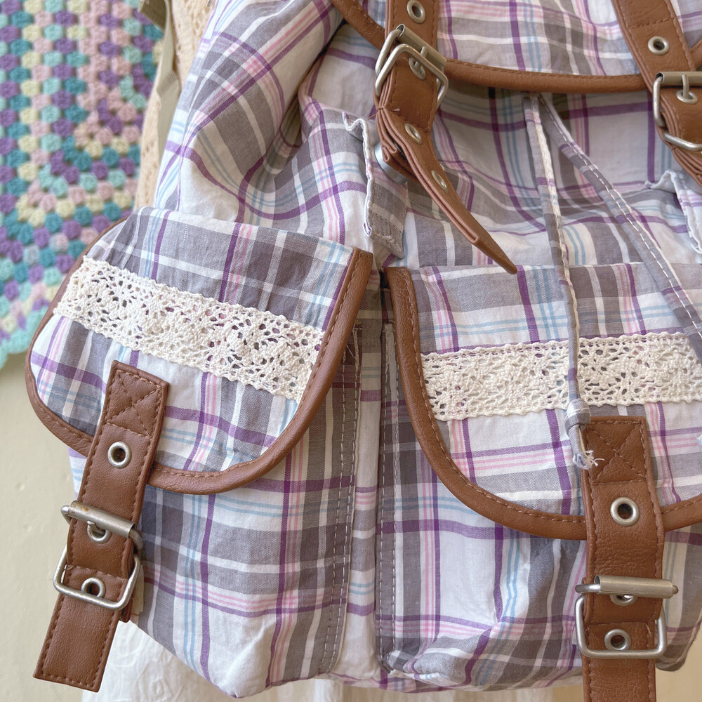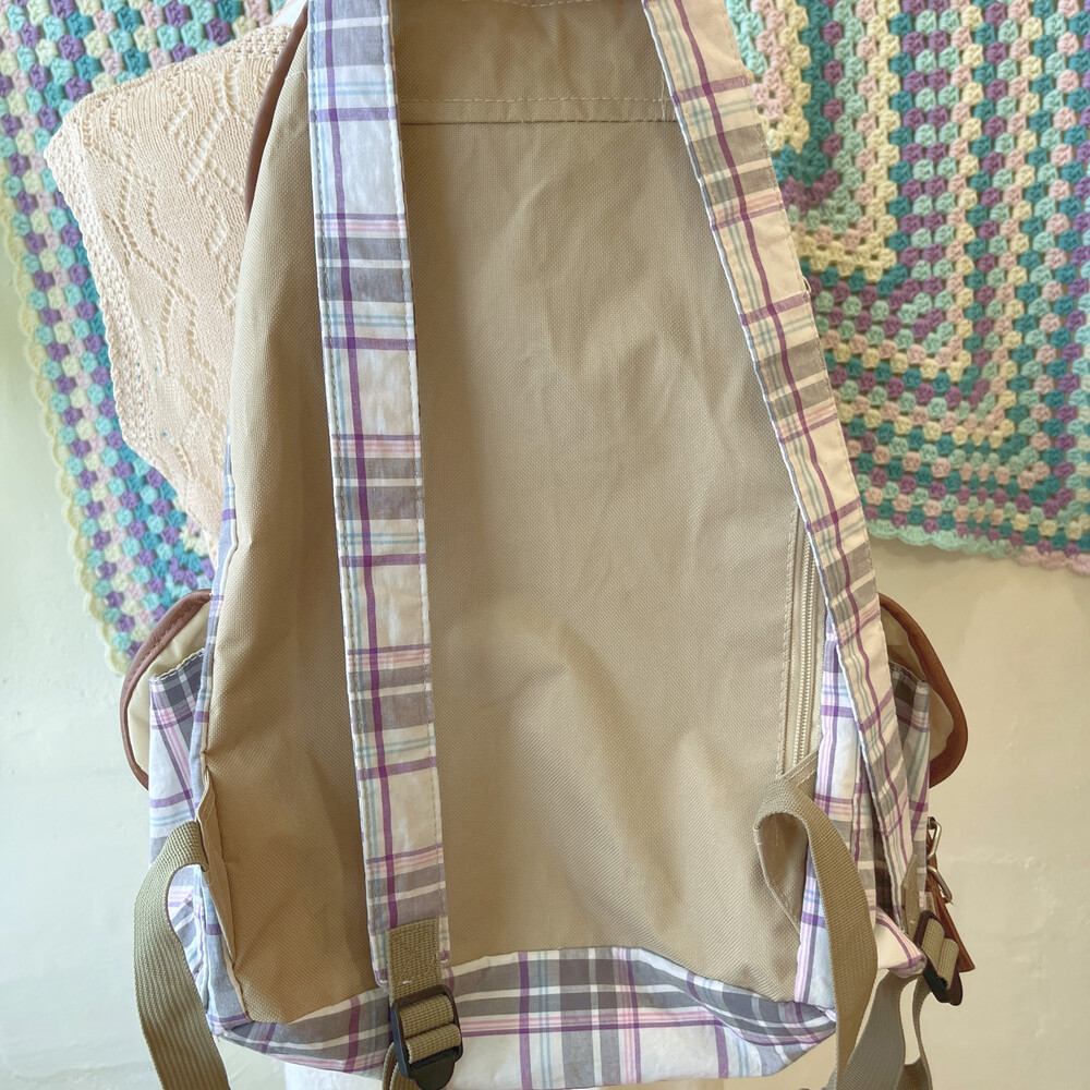 purple line check pocket backpack