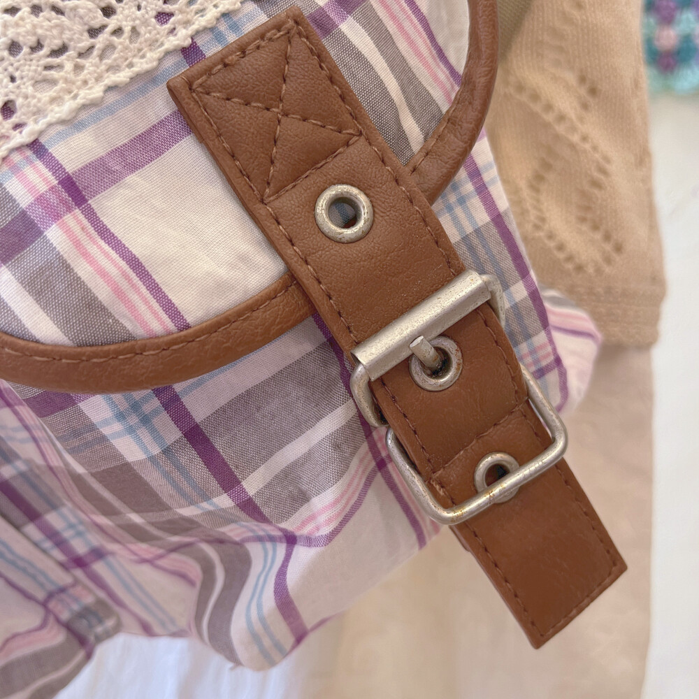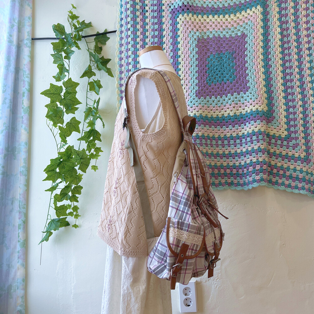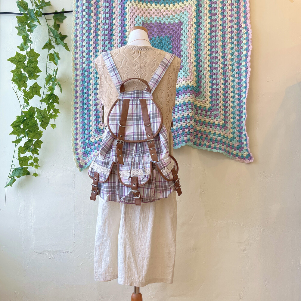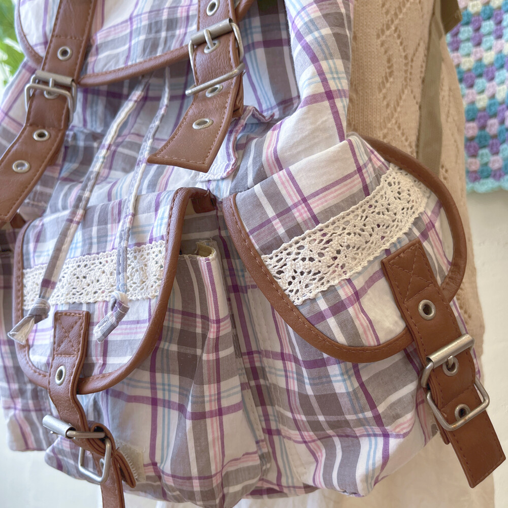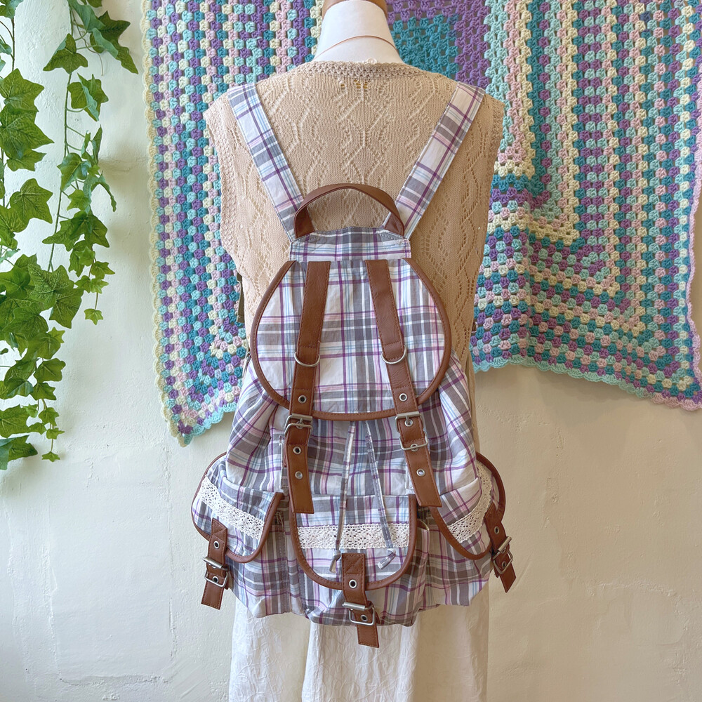 purple line check pocket backpack
