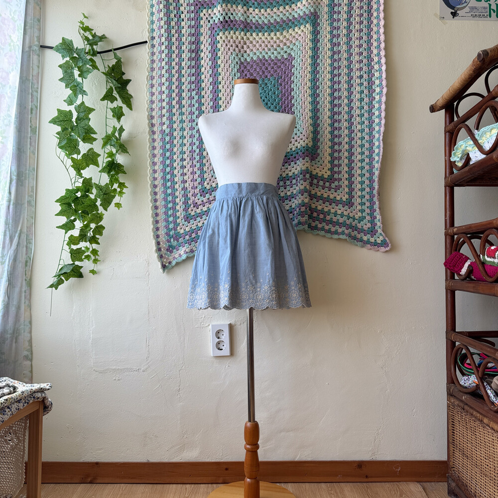 light blue hemline embroidery mini sk