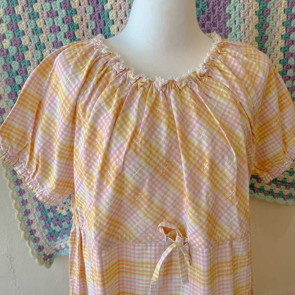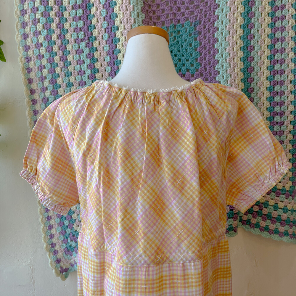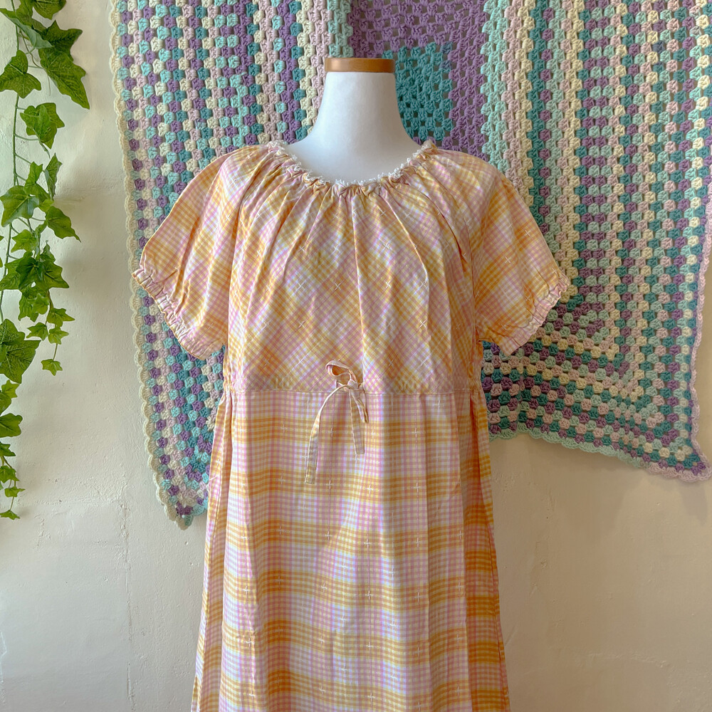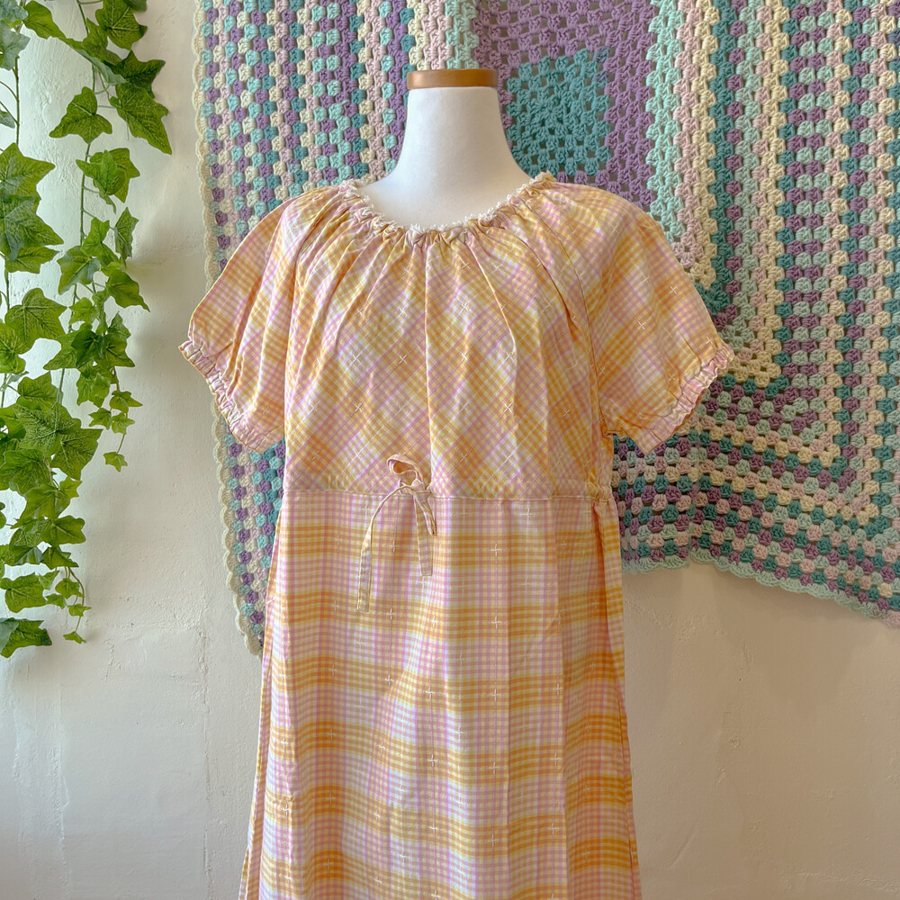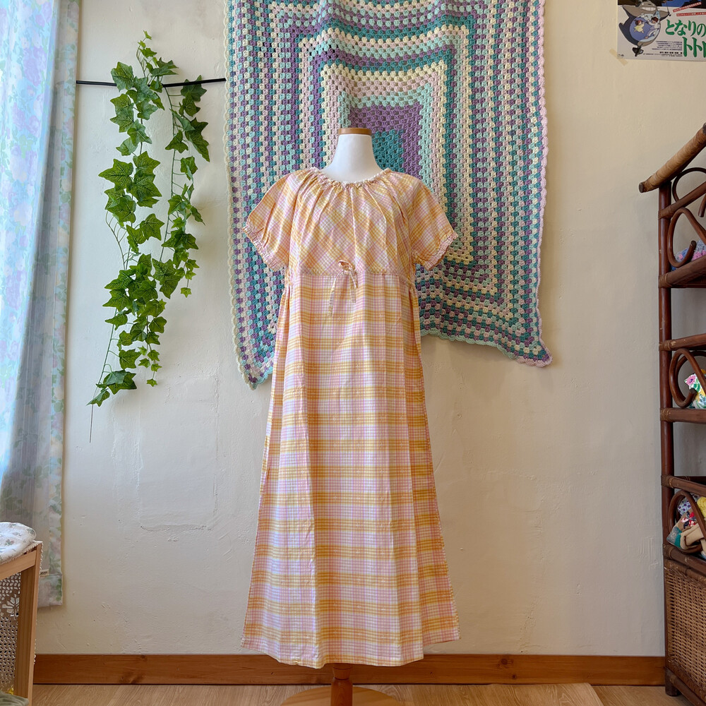 mori yellow&pink check long ops