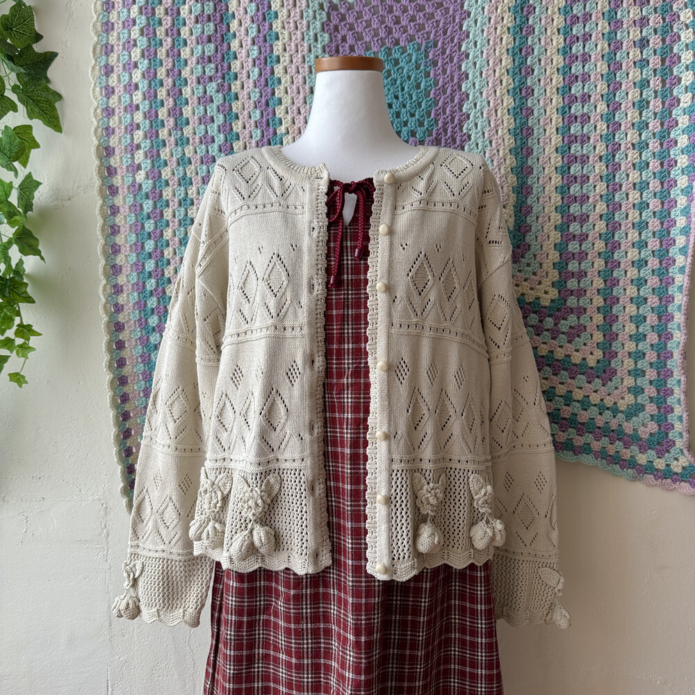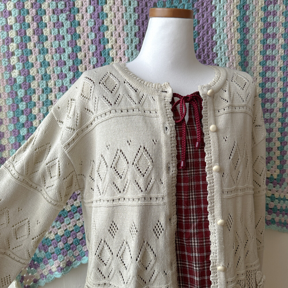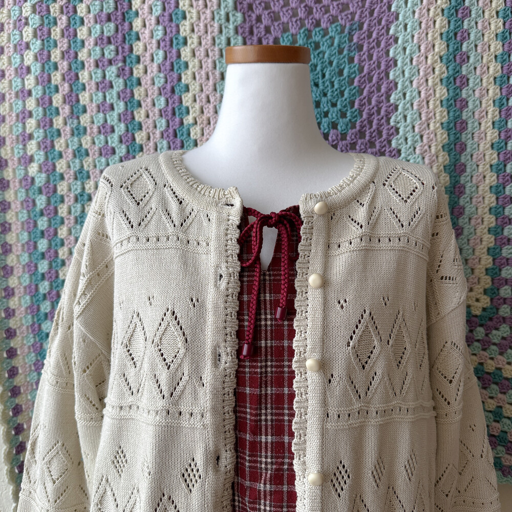 뮤트 베이지 색감의 모티브 가디건이에요