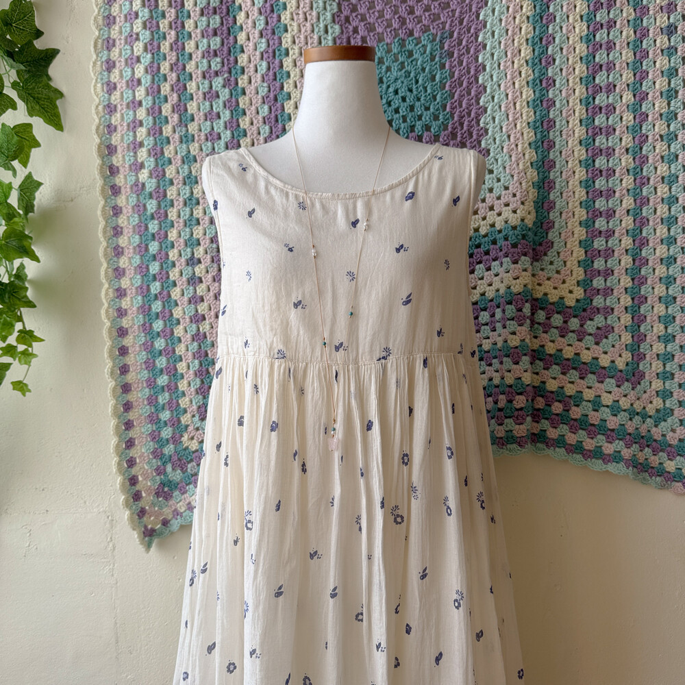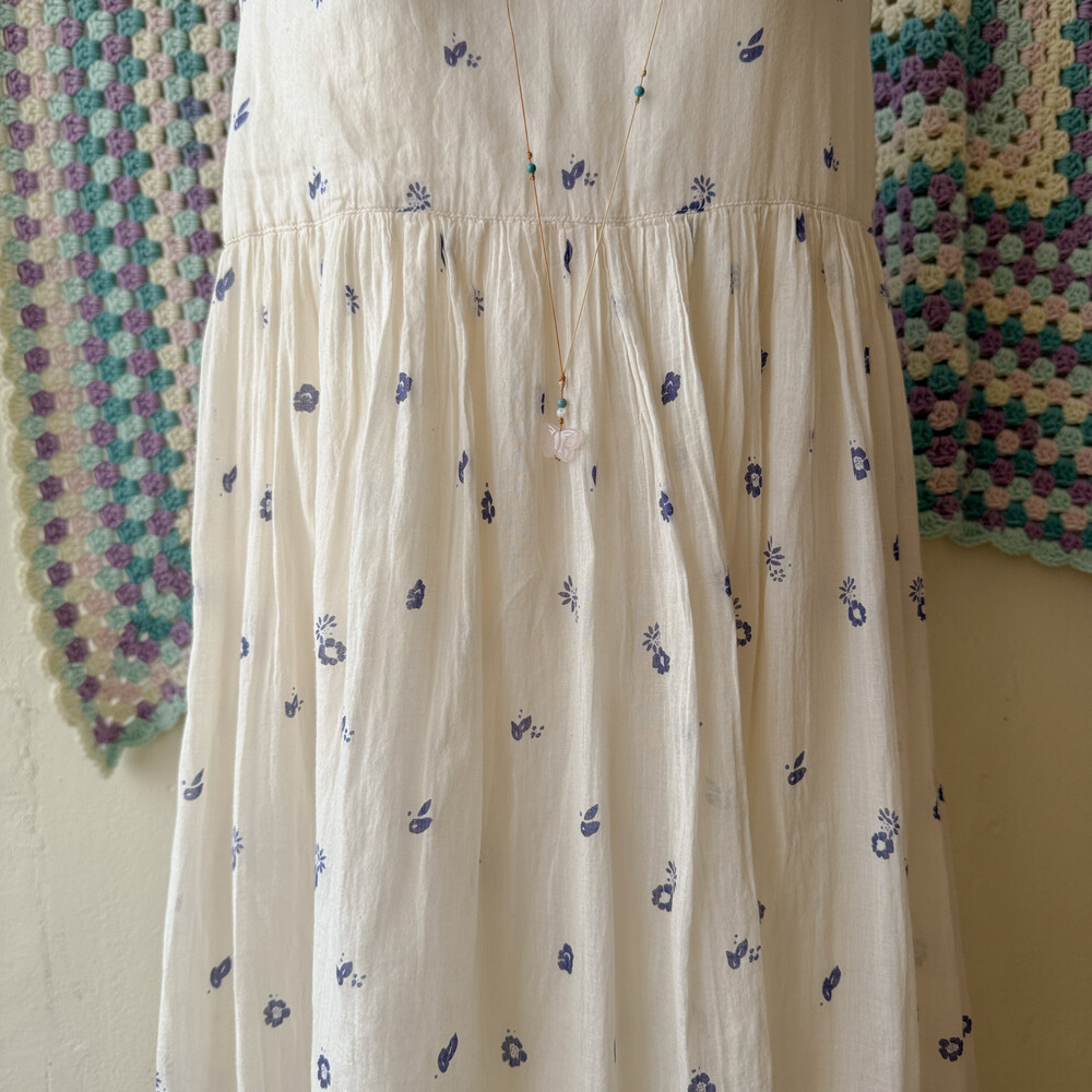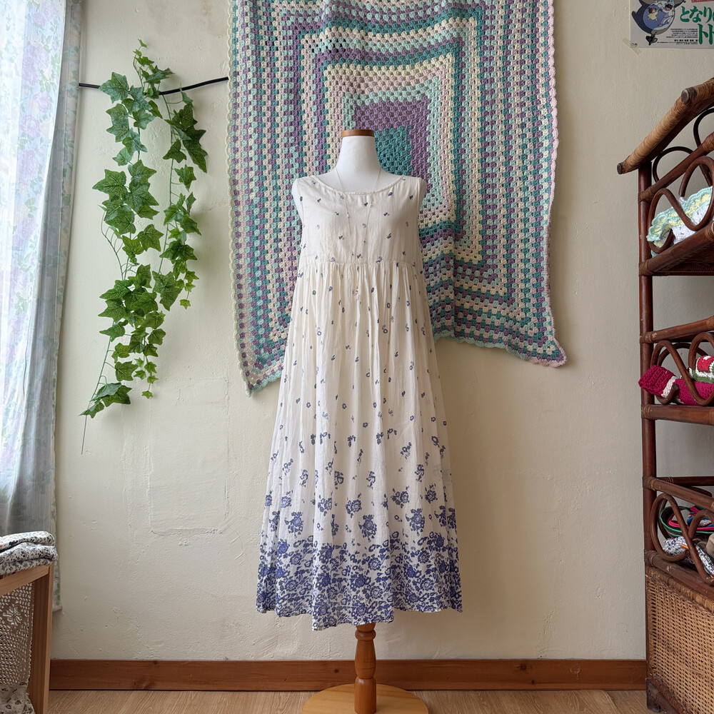 ivory base blue flower long sleeveless ops