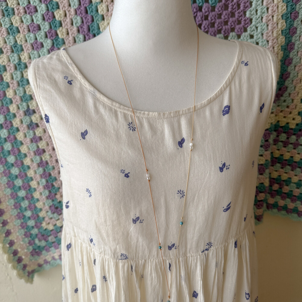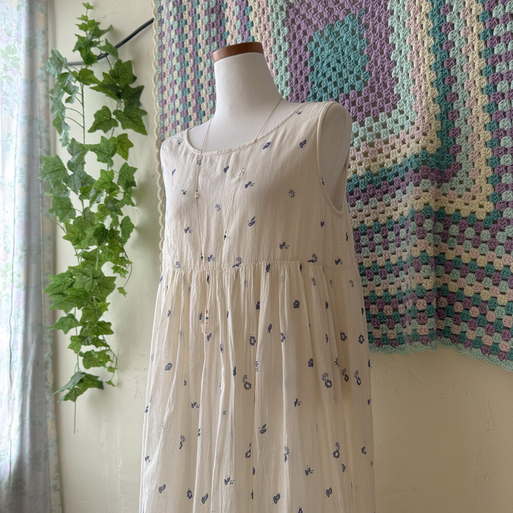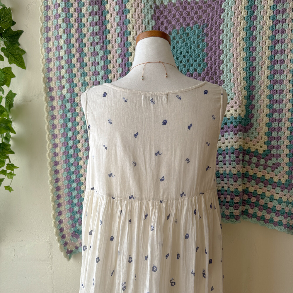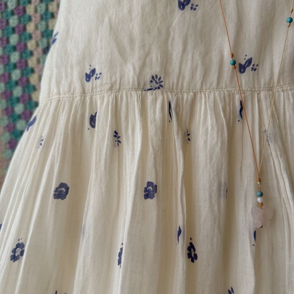 ivory base blue flower long sleeveless ops
