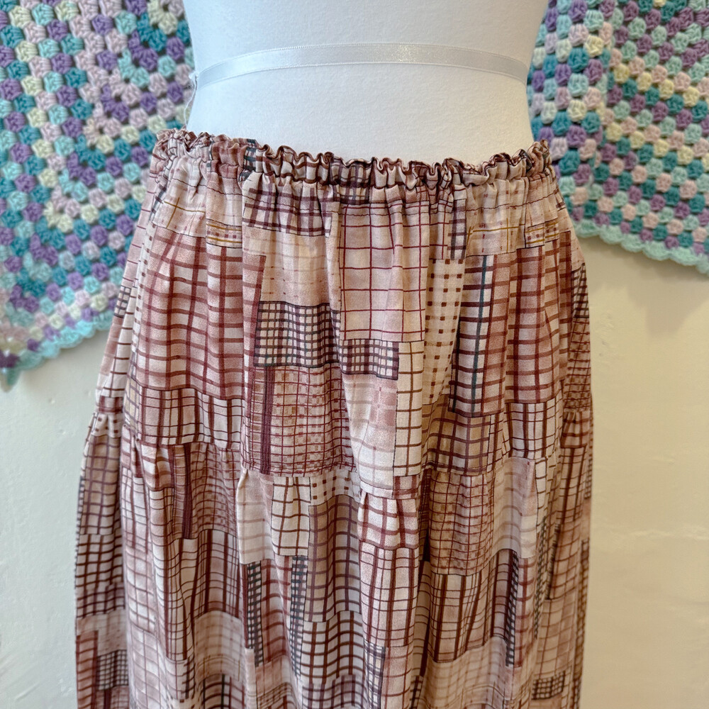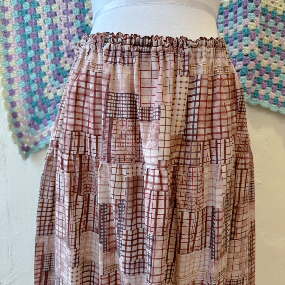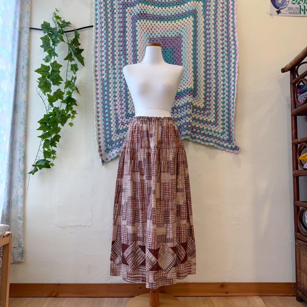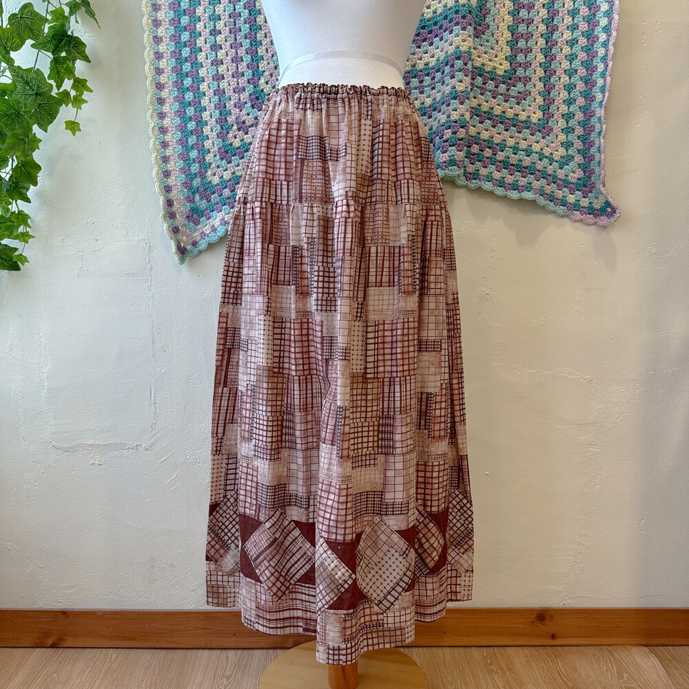 burgundy check hemline patch sk