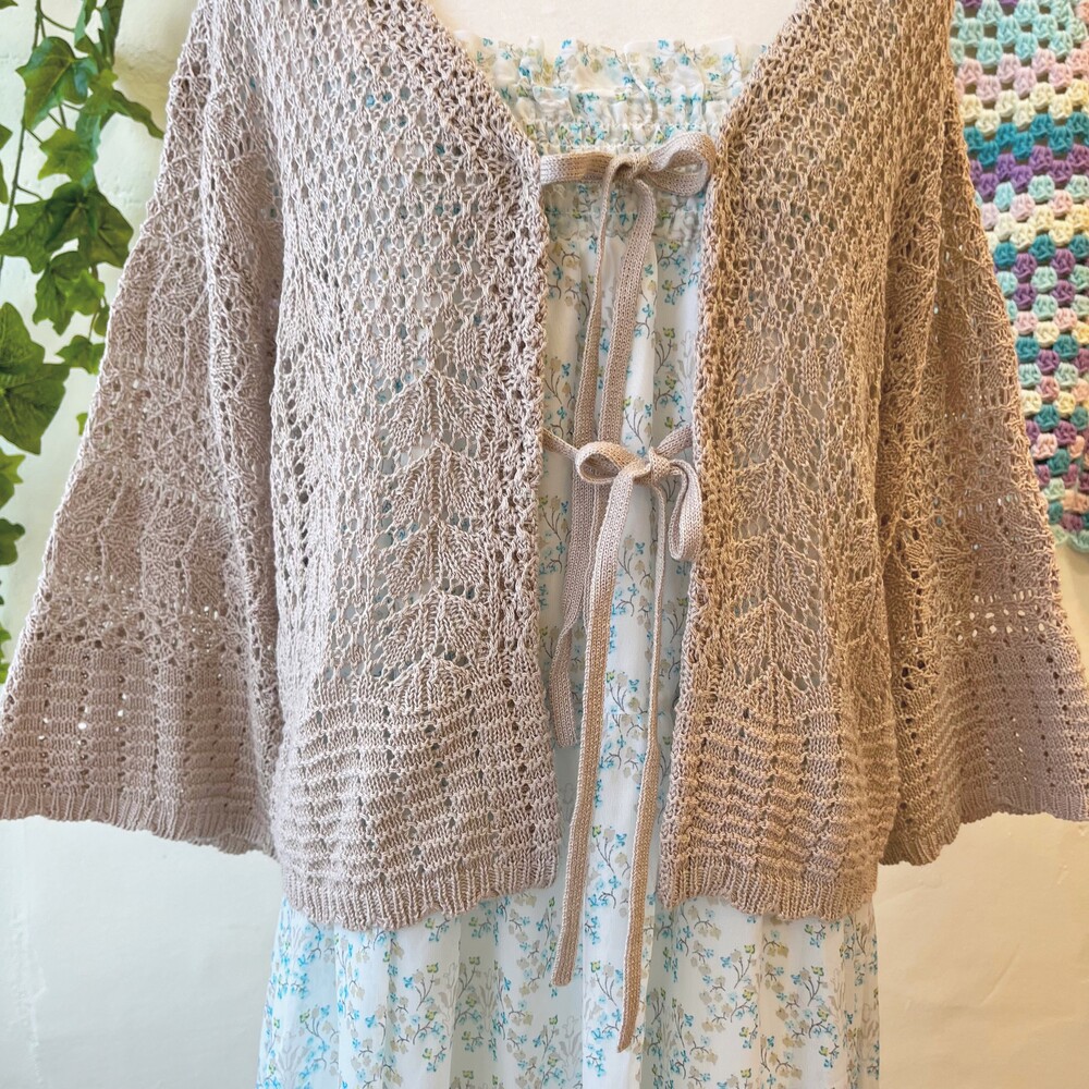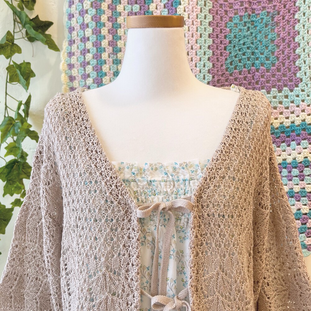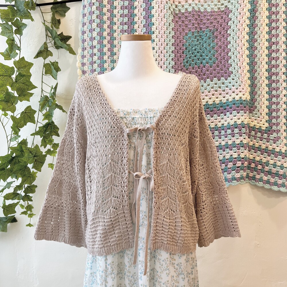 베이지 색감의 크로셰 투 리본 가디건이에요