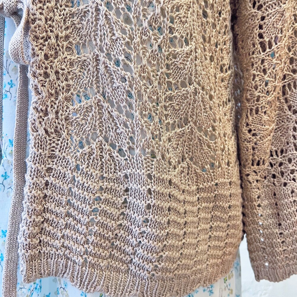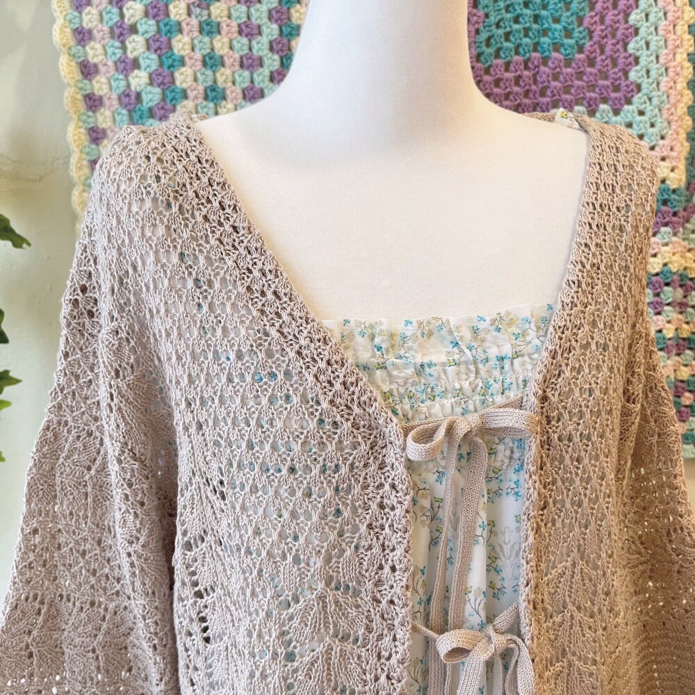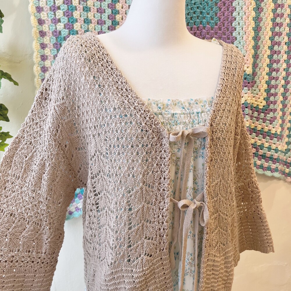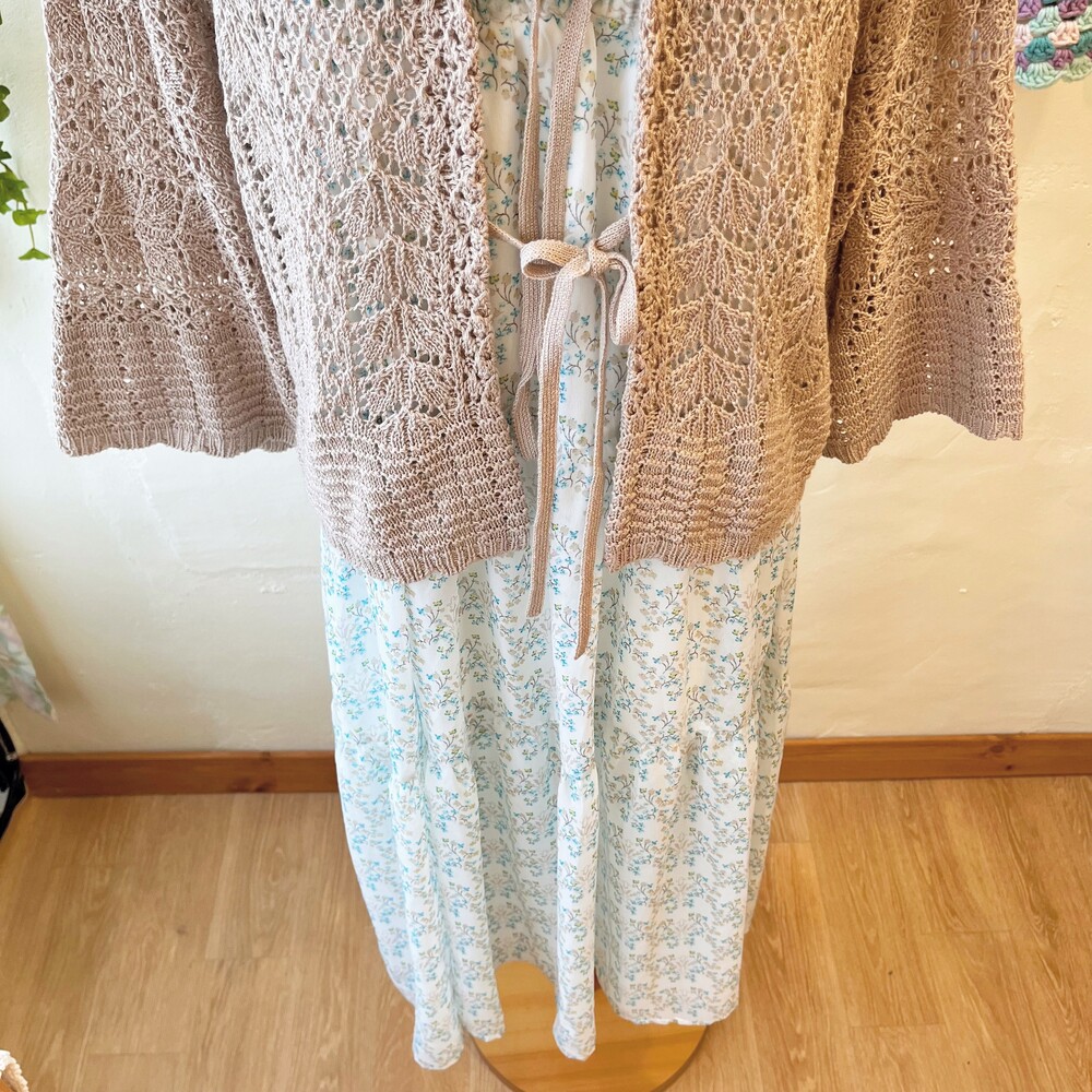 베이지 색감의 크로셰 투 리본 가디건이에요