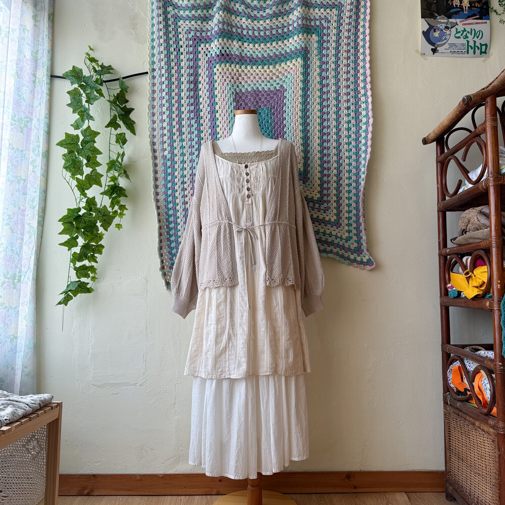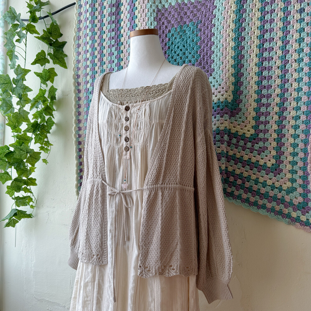 오트밀 베이지 색감의 긴팔 봄 가디건이에요