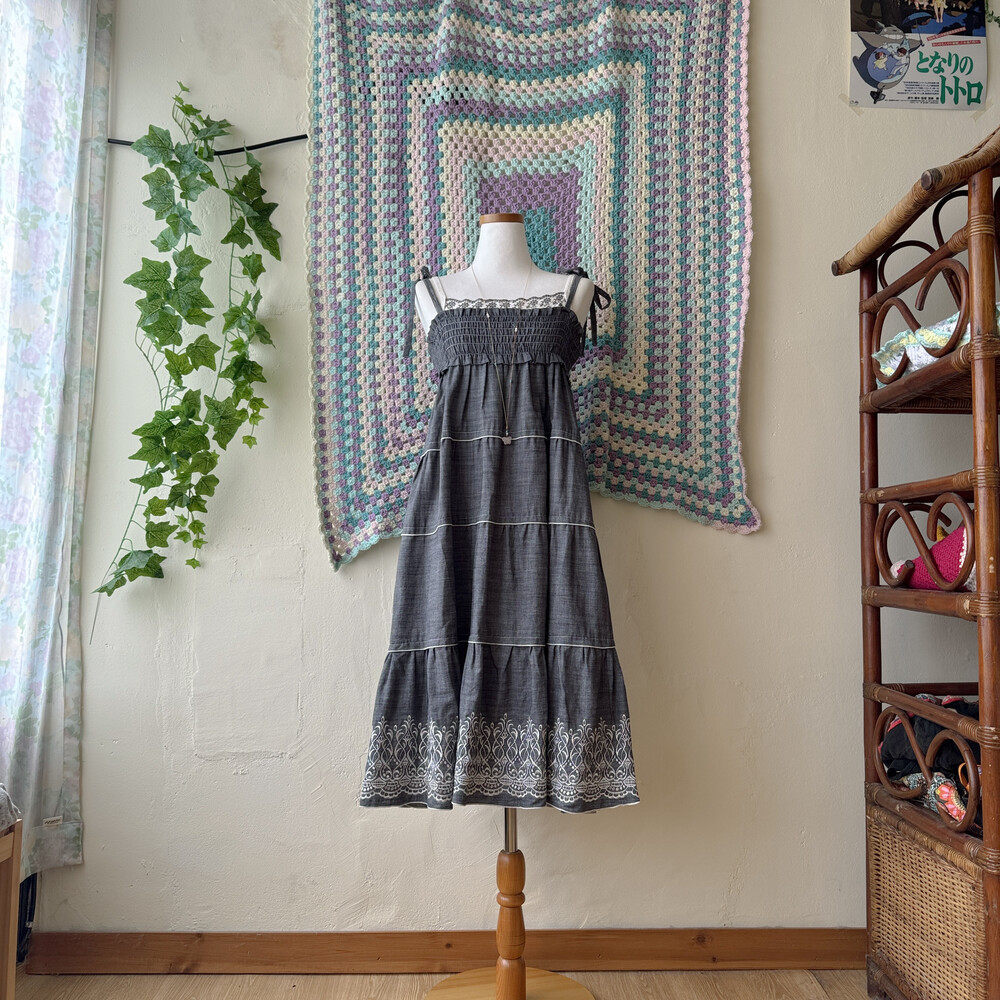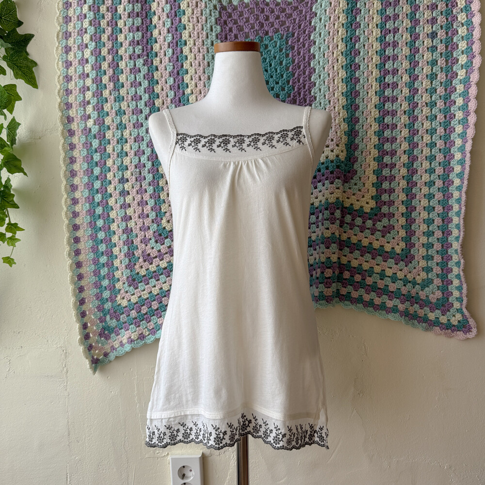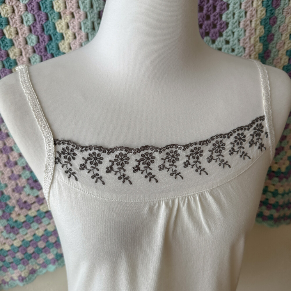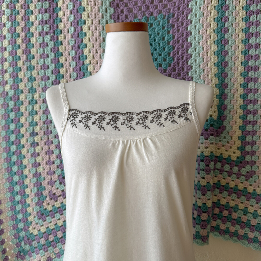 gray punching embroidery sleeveless top