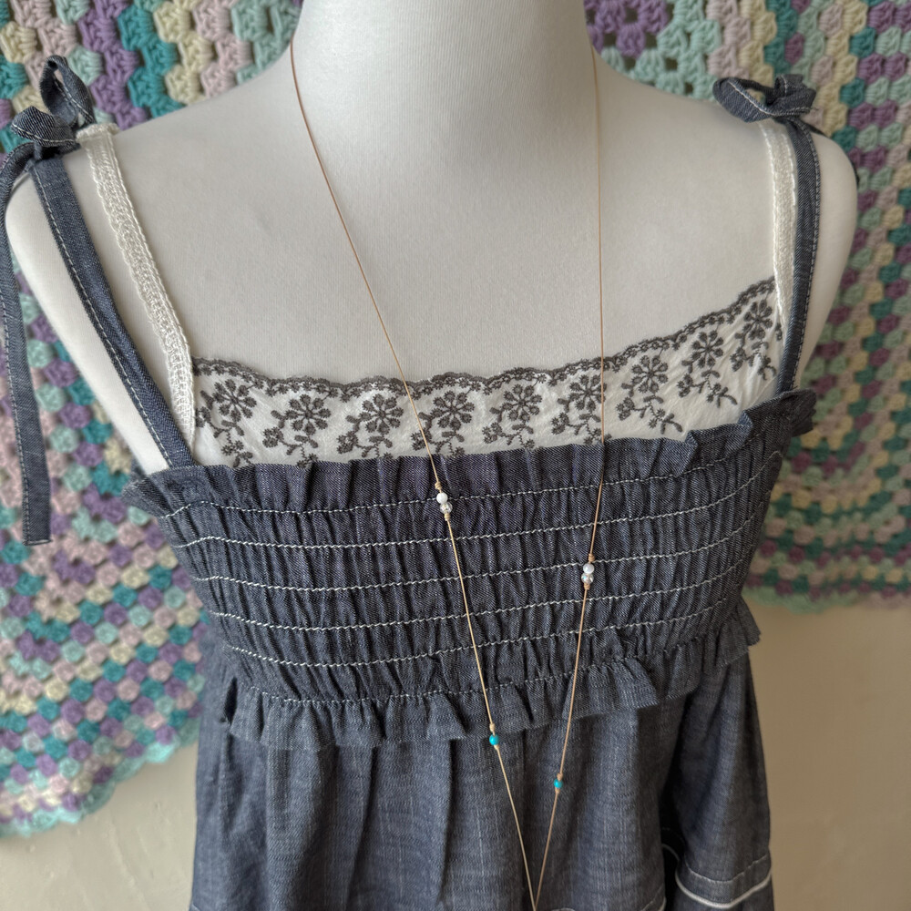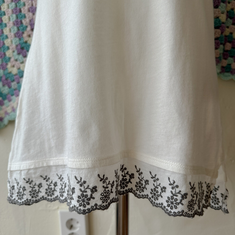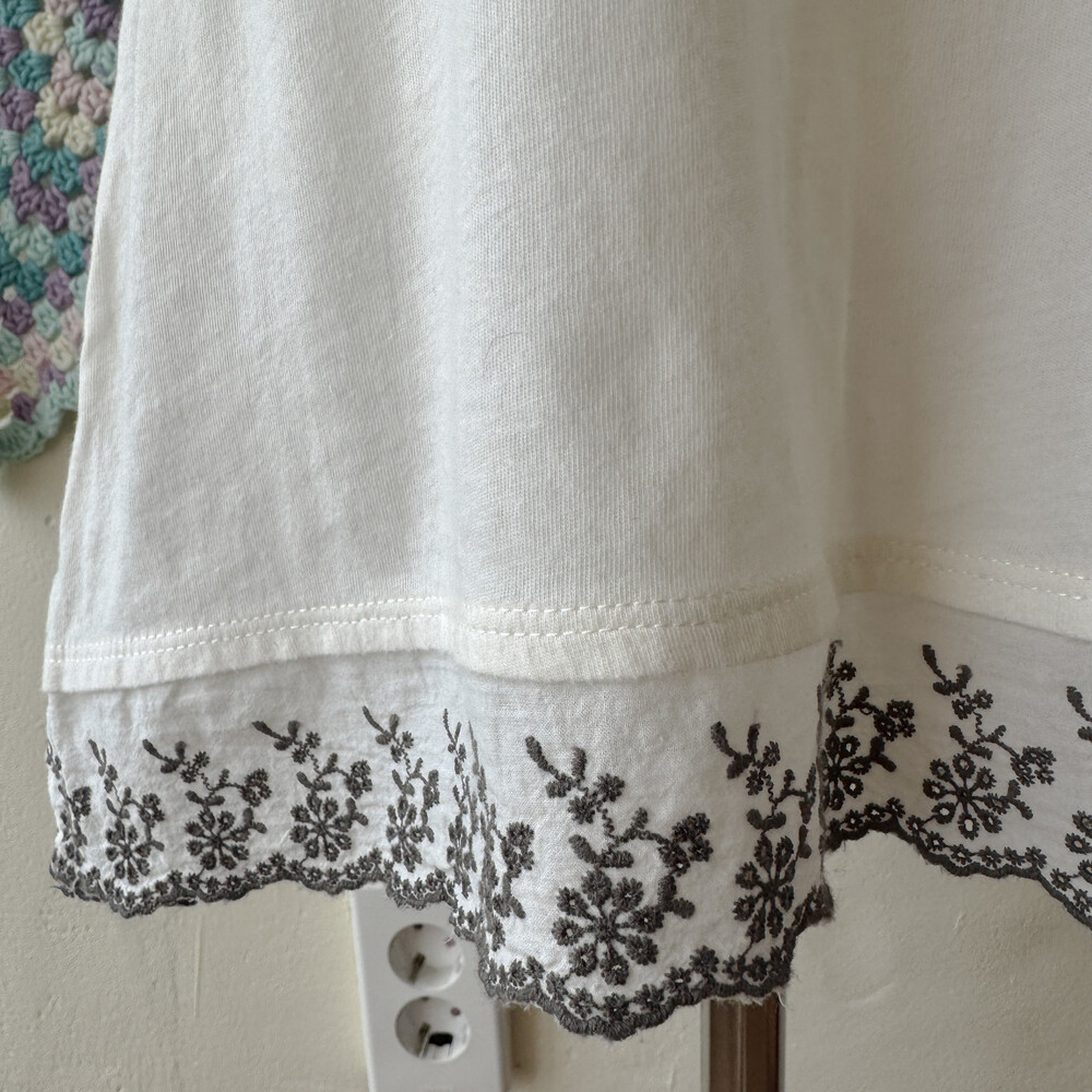 밀키한 색감의 펀칭 자수 이너 슬립 티셔츠예요