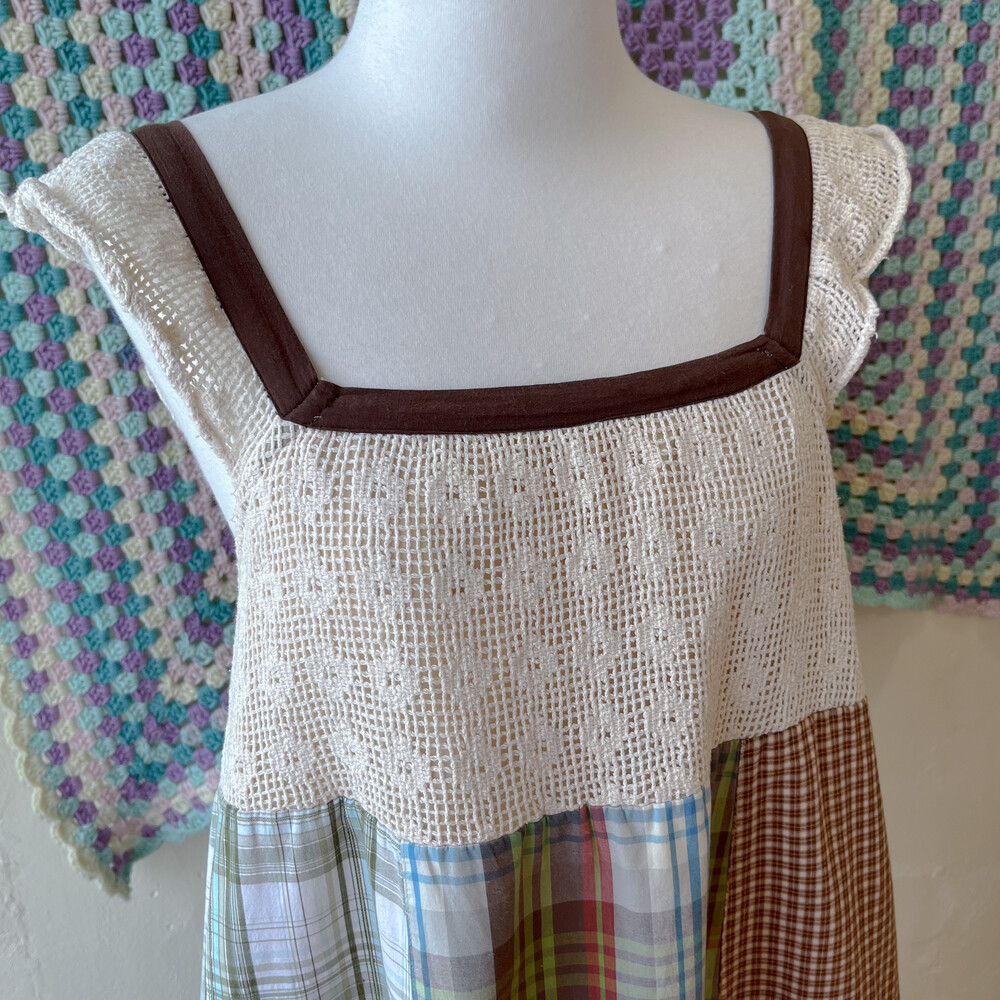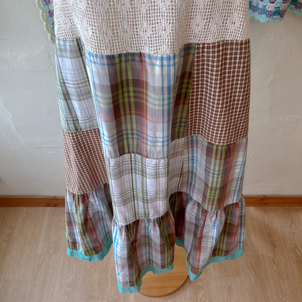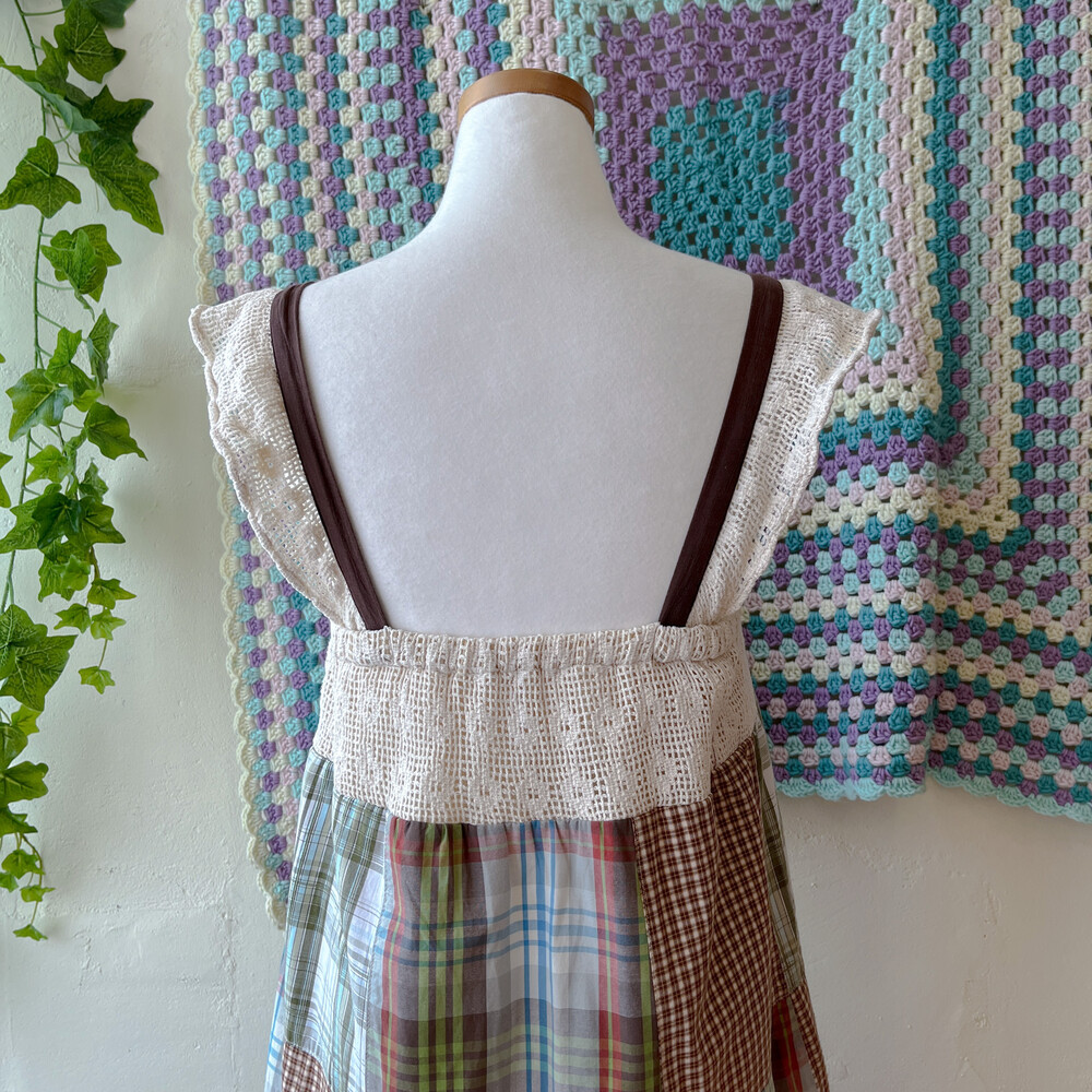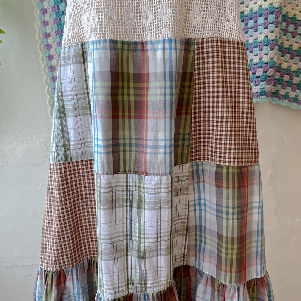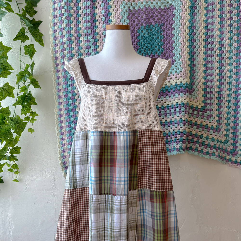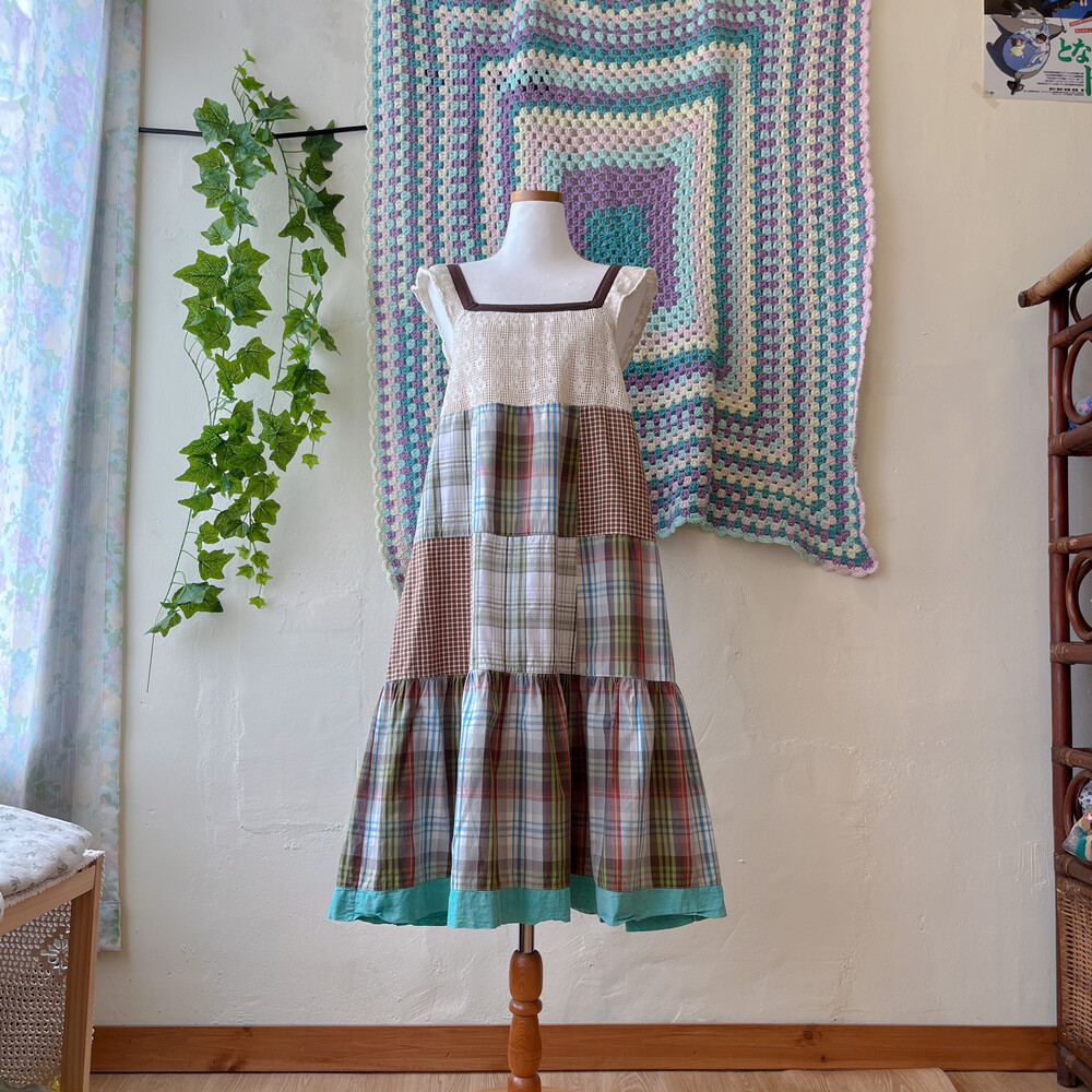 가슴 와플 디자인의 코튼 패치워크 원피스예요