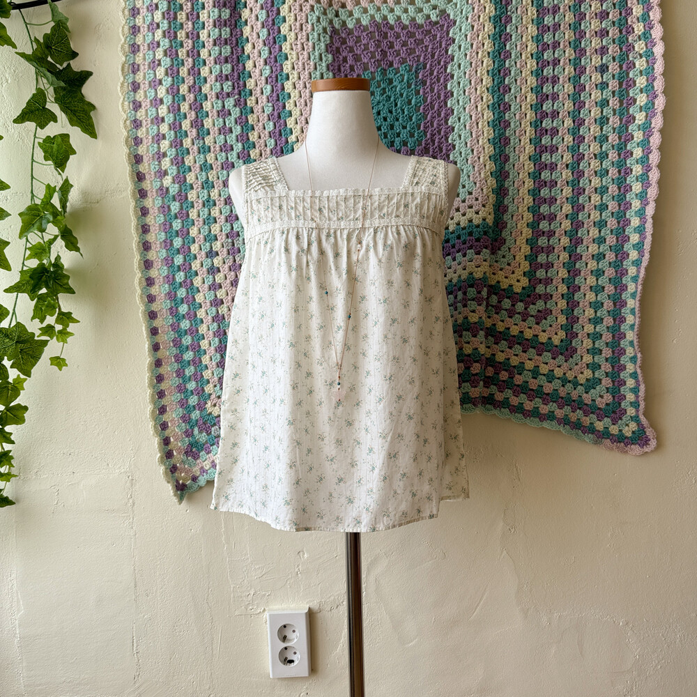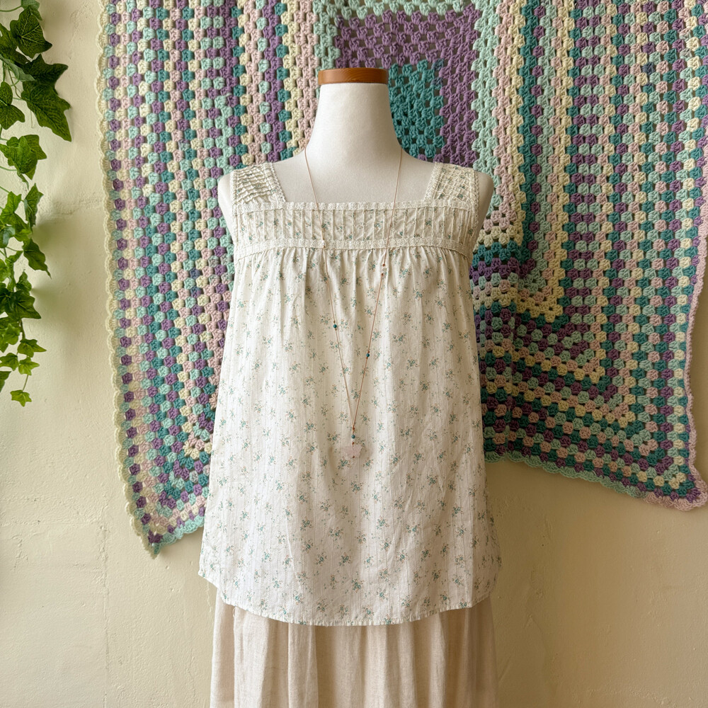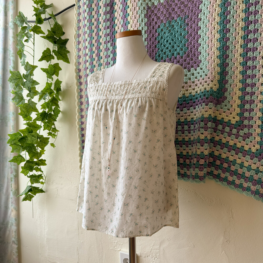 블루 잔꽃 패턴의 민소매 블라우스예요