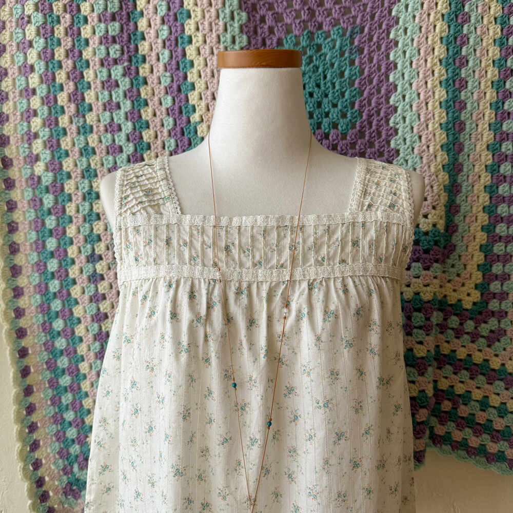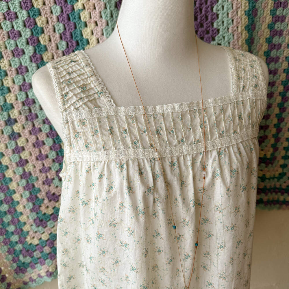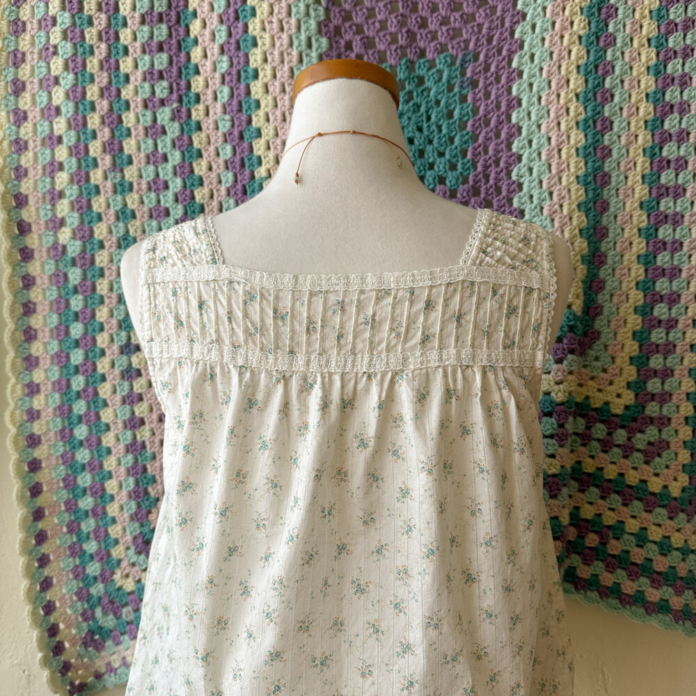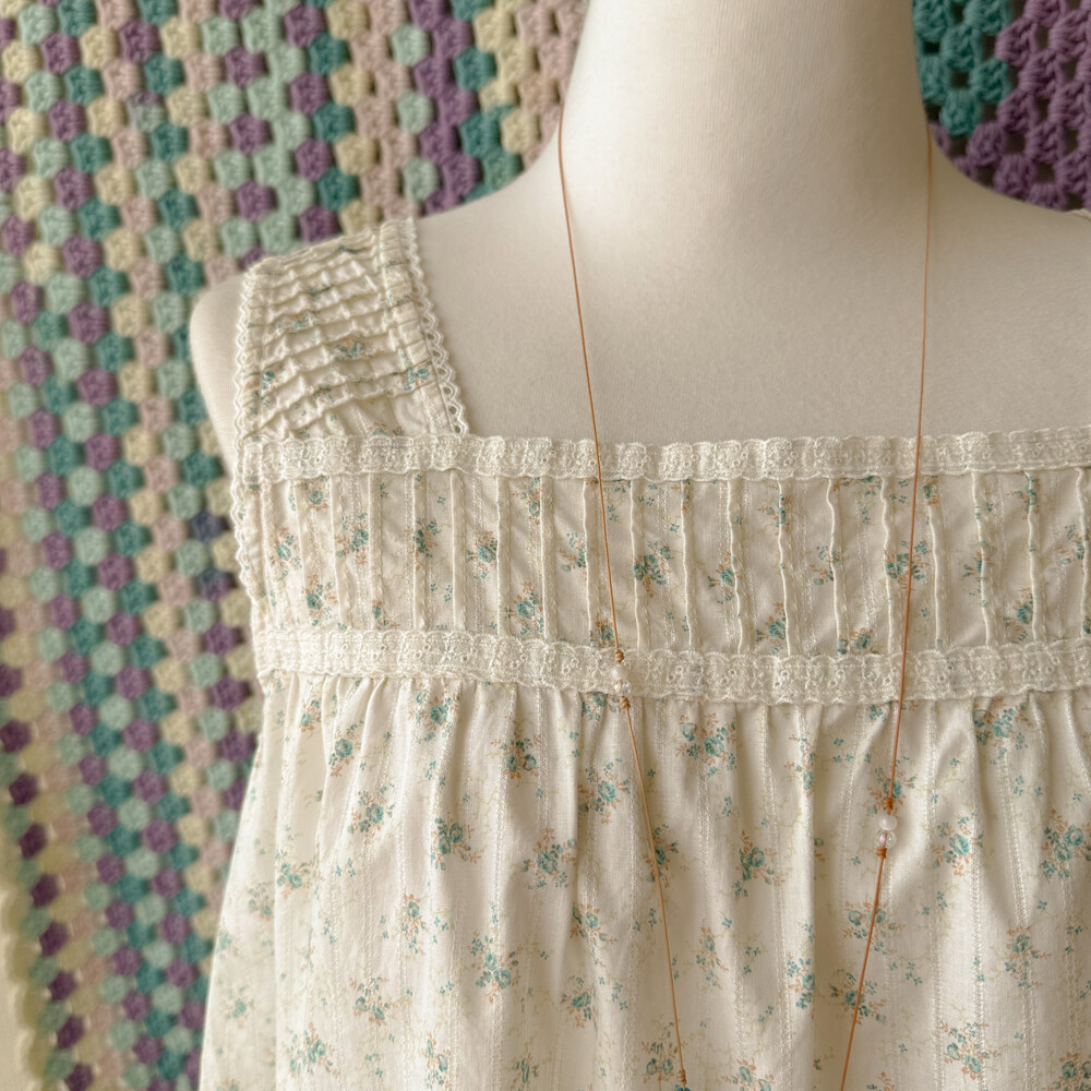 블루 잔꽃 패턴의 민소매 블라우스예요