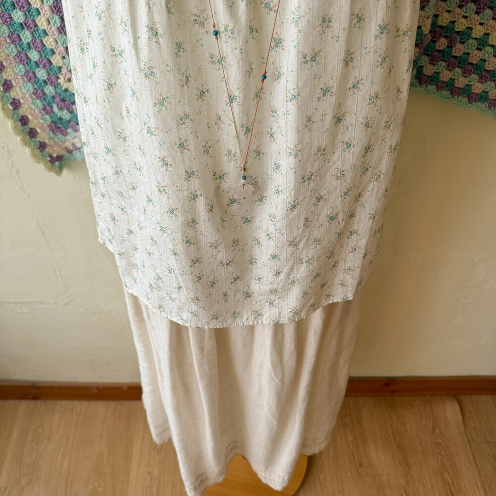 코튼 소재구요, 밀키한 색감 바탕에 코지한 꽃무늬가 가득 들어가 있어요