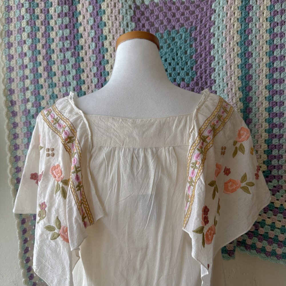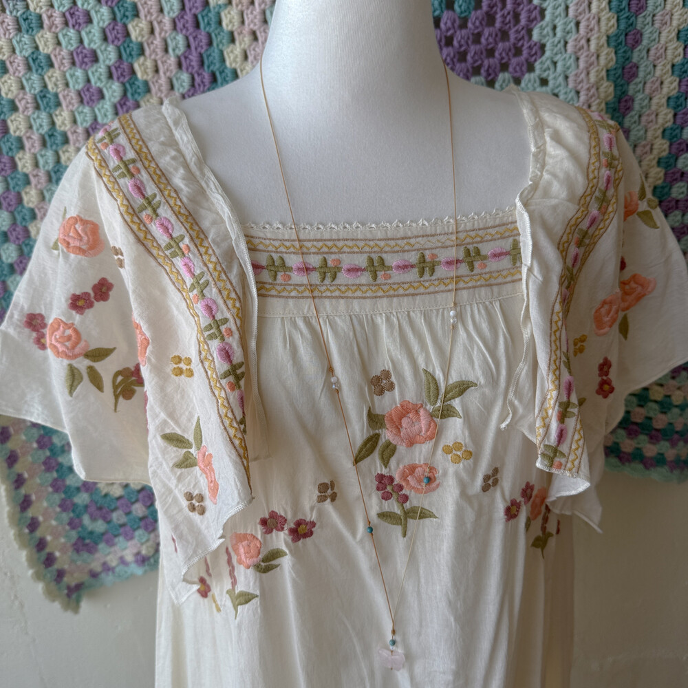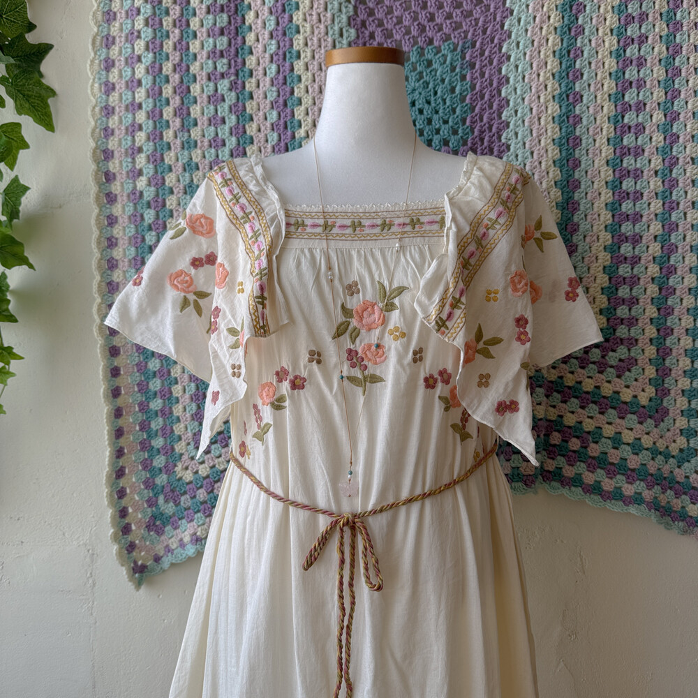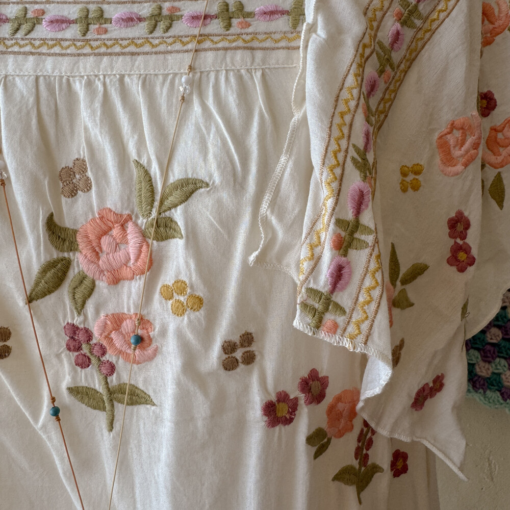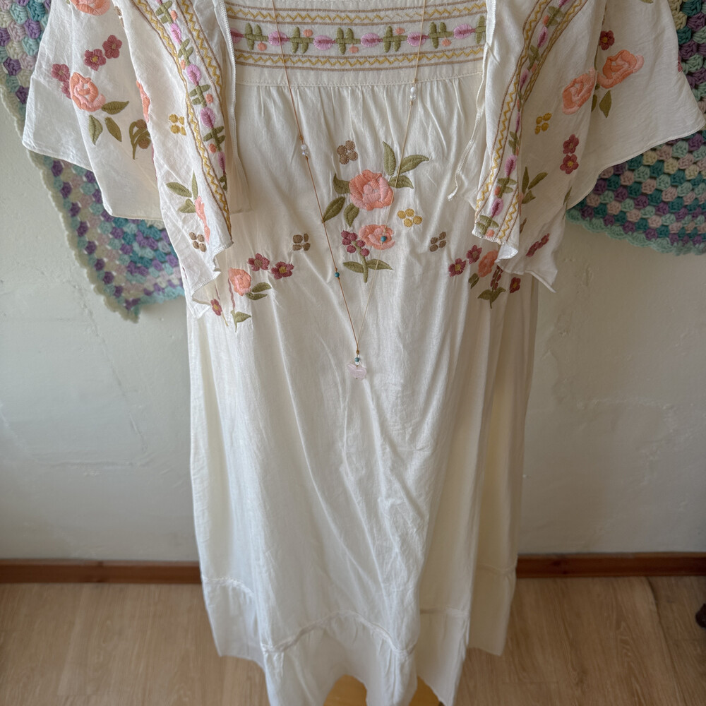 핑크, 살구 등 자수 포인트의 코튼 원피스예요