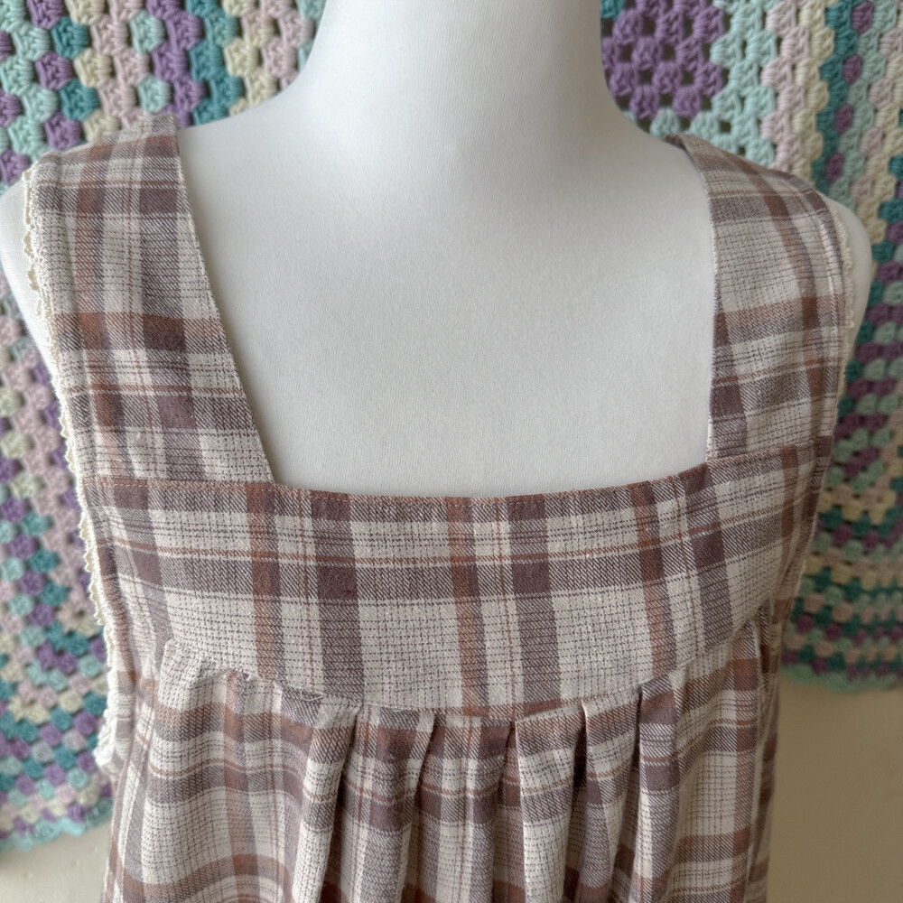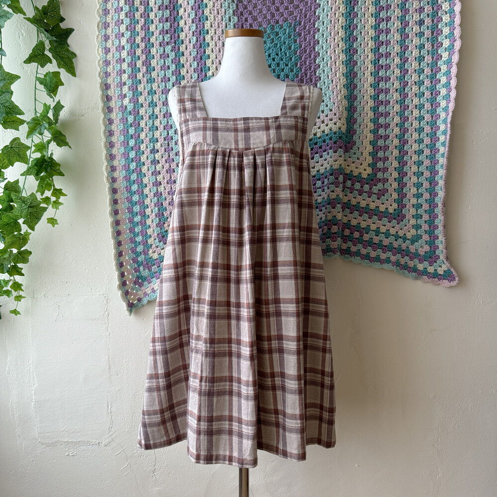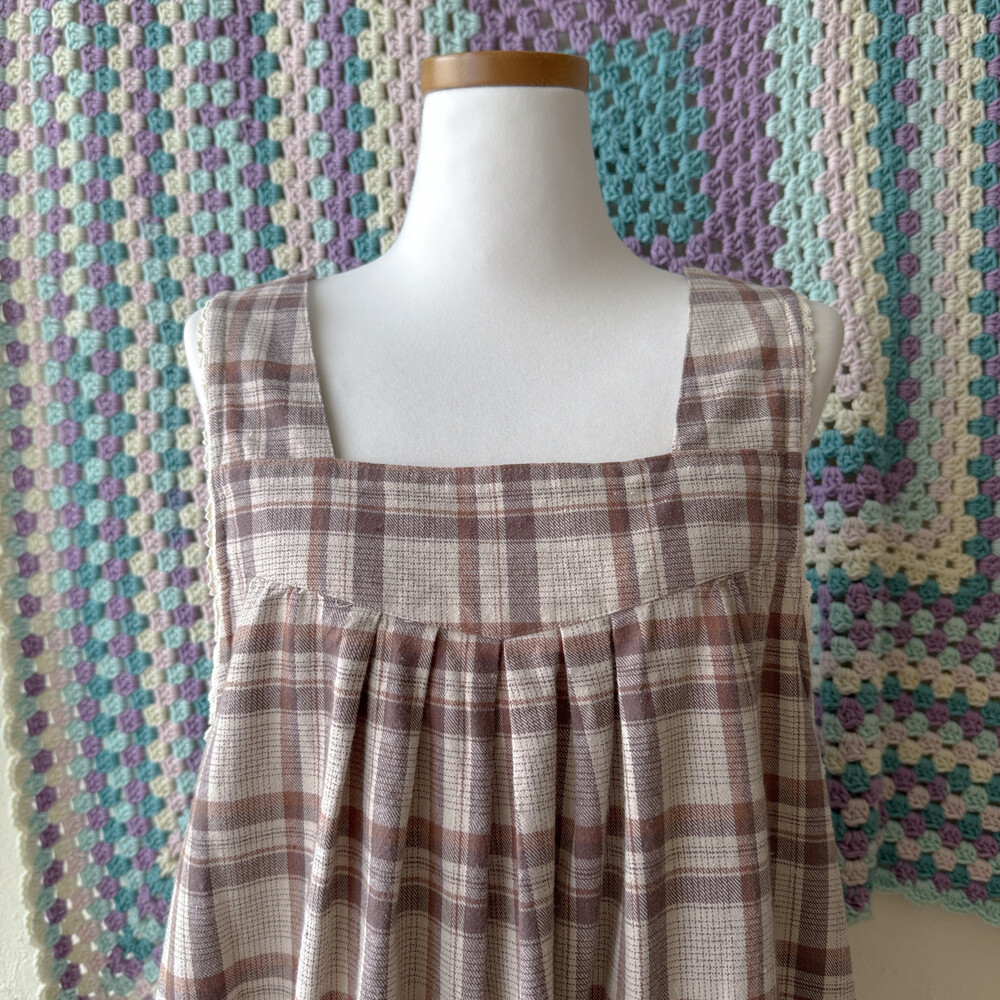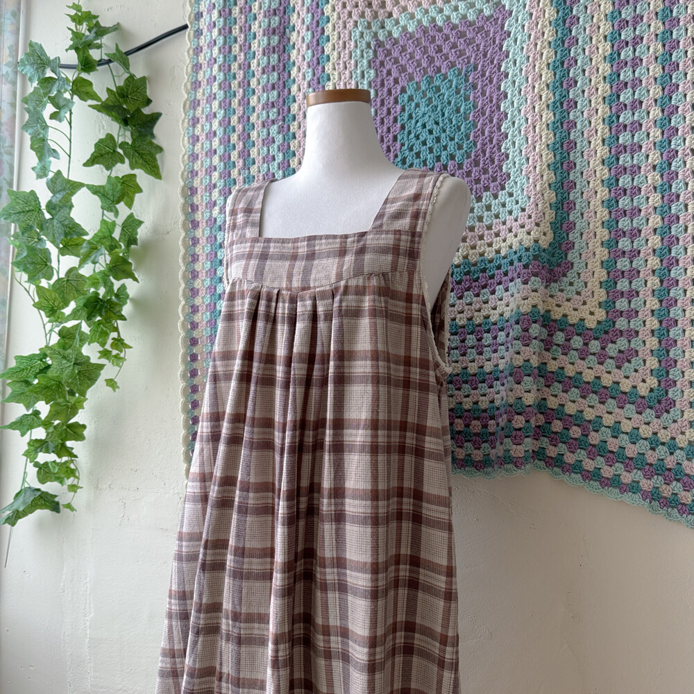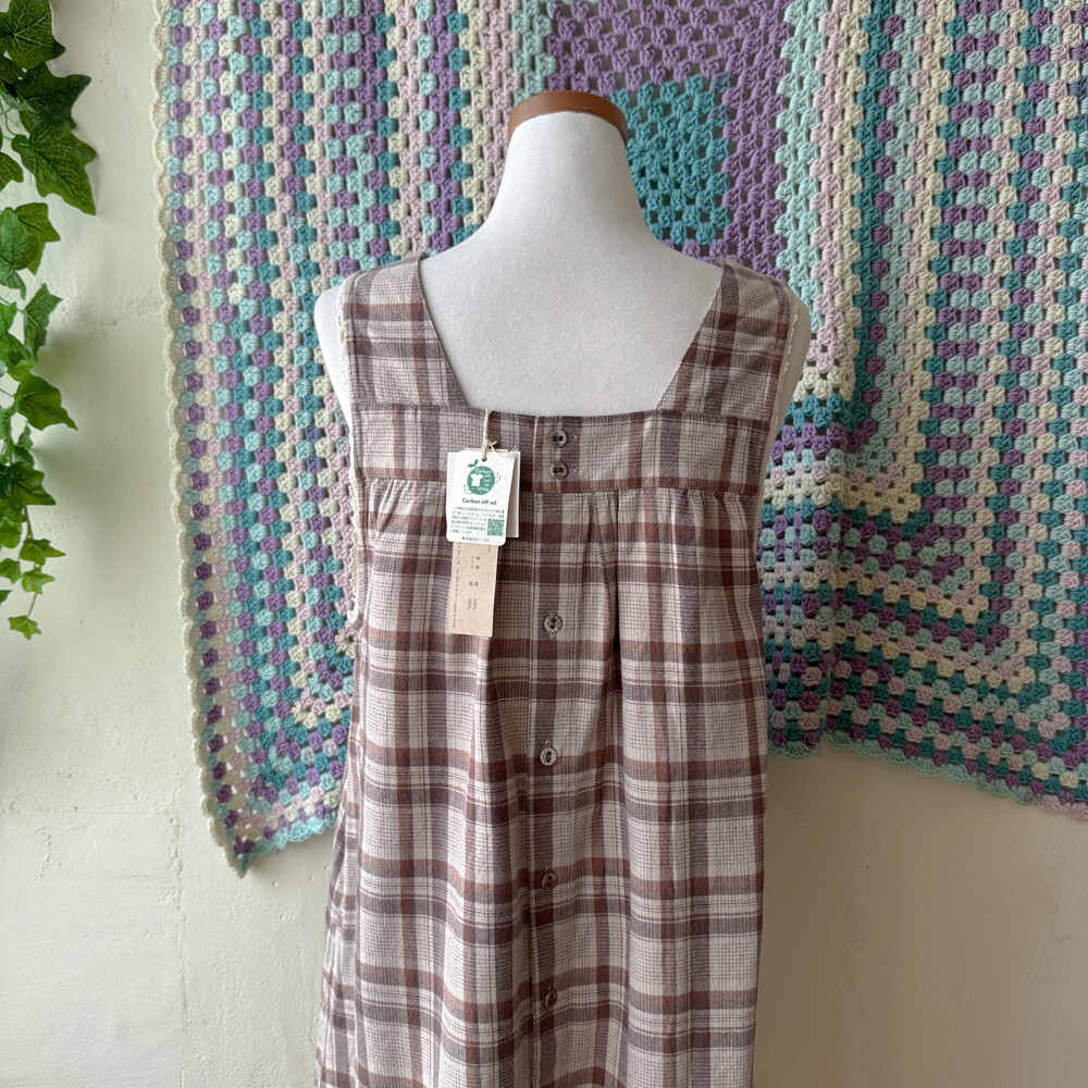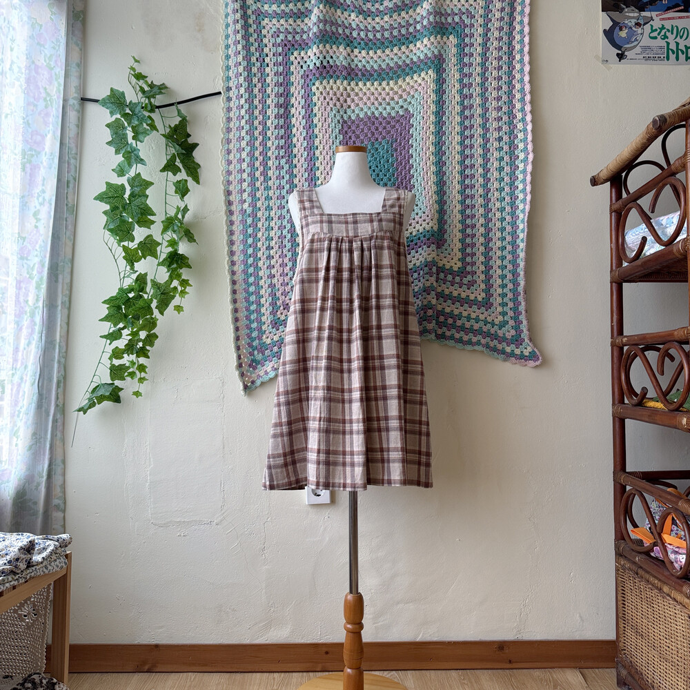 브라운, 베이지 색감 조합의 민소매 원피스예요