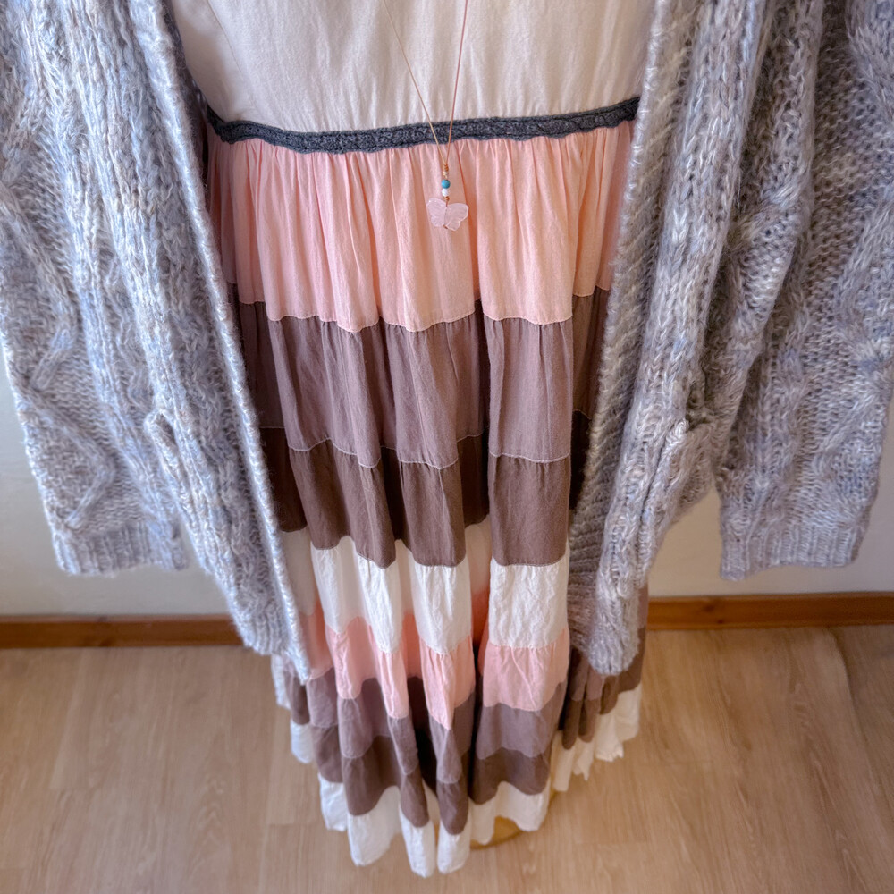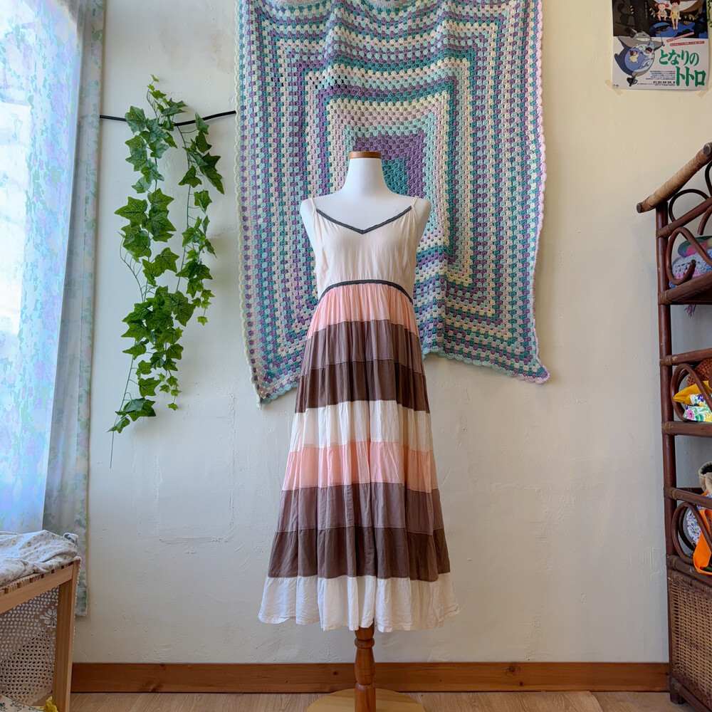 웜한 분위기의 패치워크 코튼 끈원피스예요