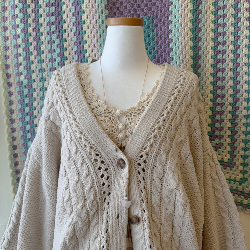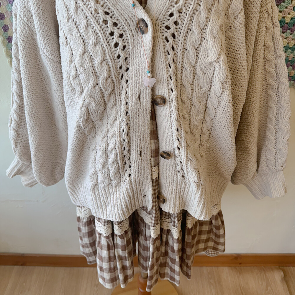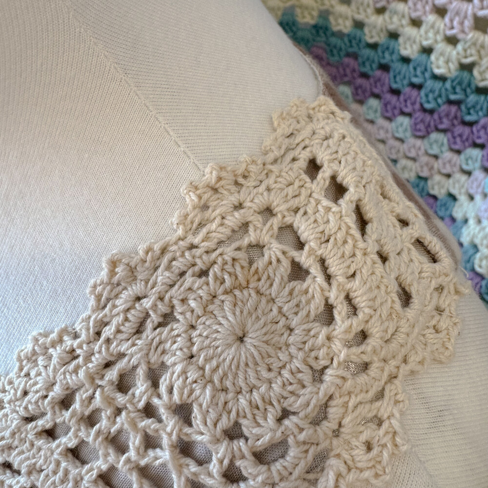 가슴 크로셰 포인트가 사랑스럽고 코지한 분위기가 나요