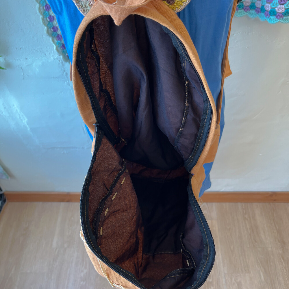 가방 윗쪽에 검은색 실로 수선한 흔적이 보여요