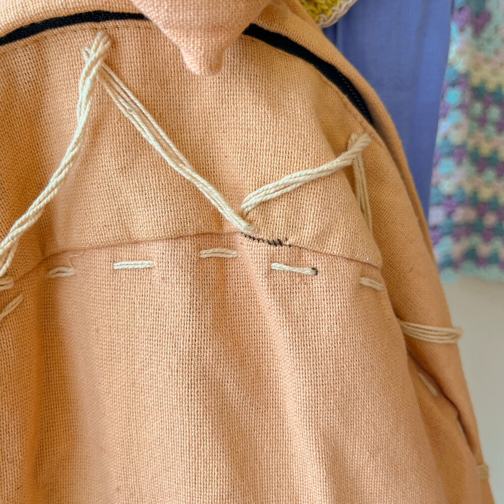 수공예품 특유의 깔끔하지 않은 실 마감 상태고