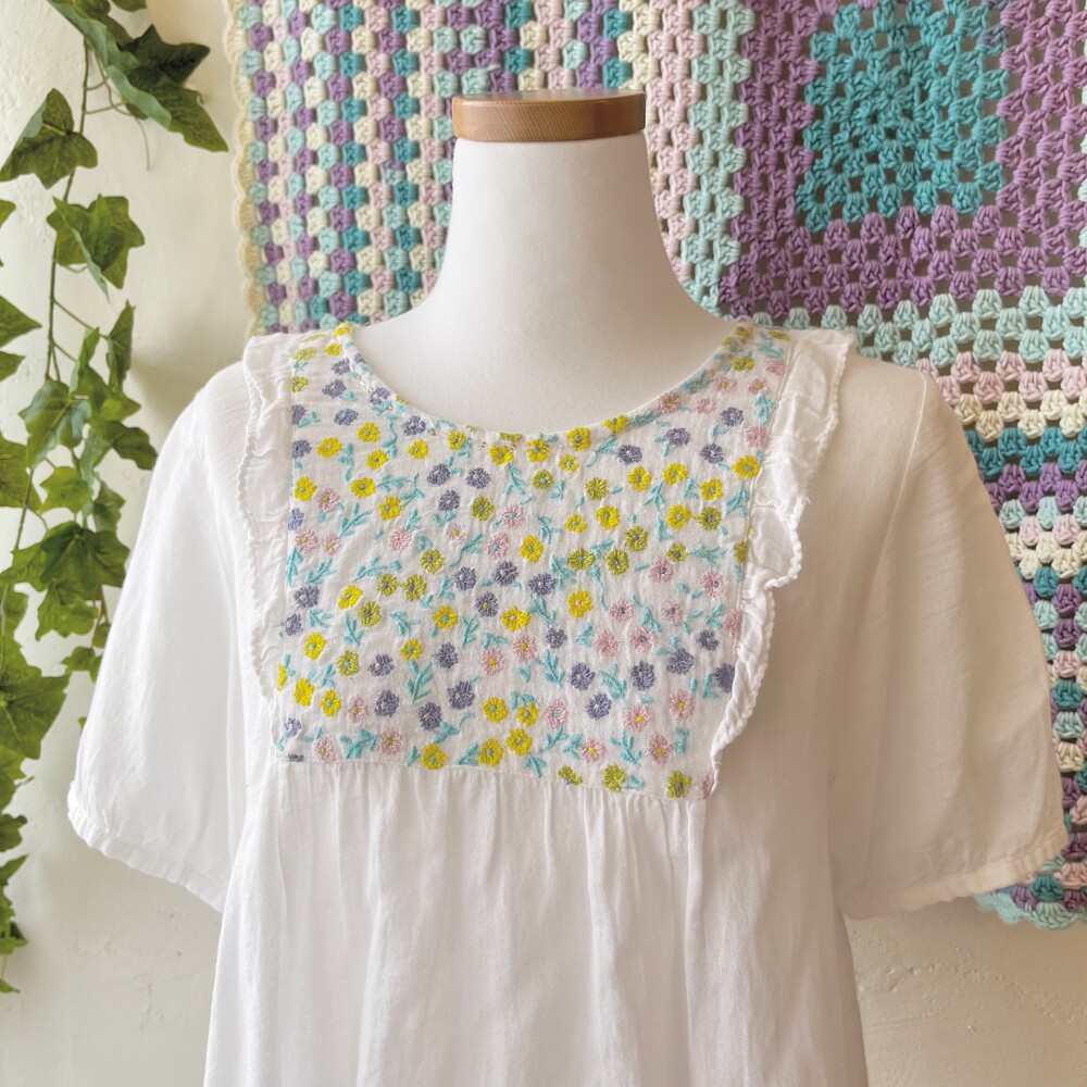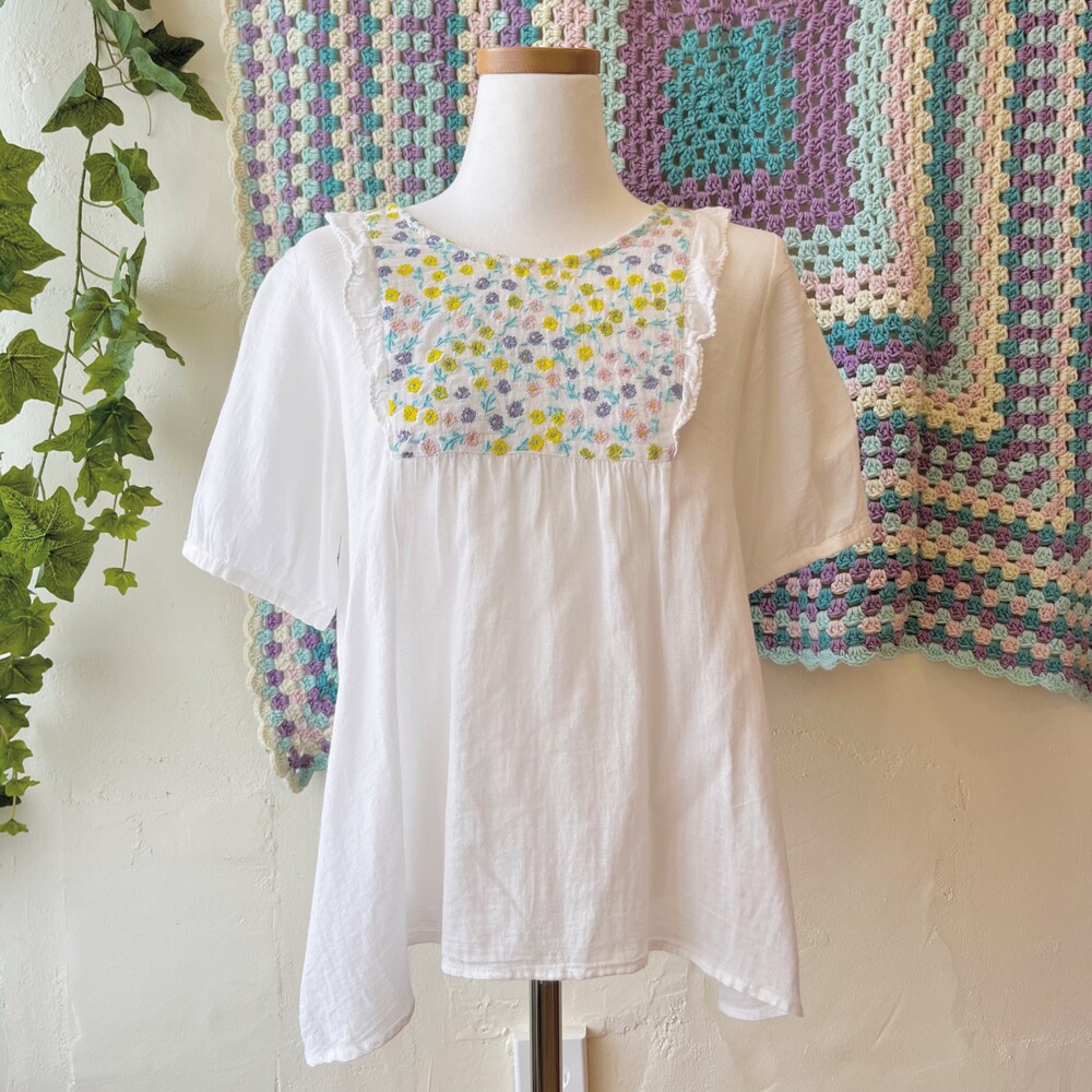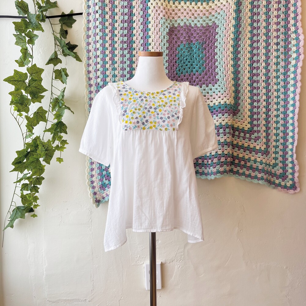 pastel chest embroidery&frill point bl