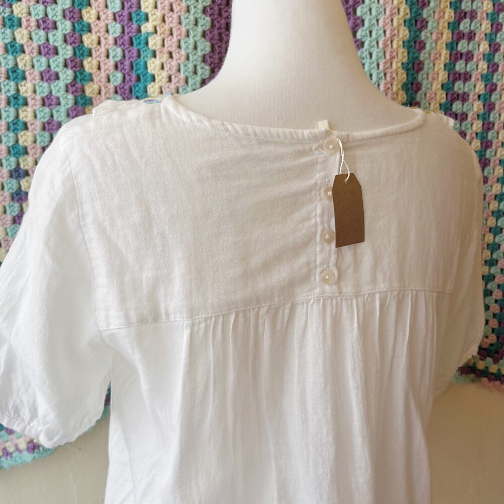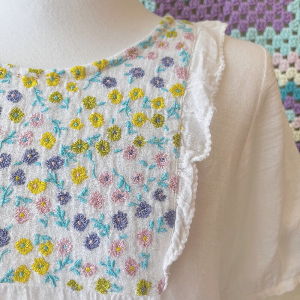 파스텔 색감의 자수 포인트 블라우스예요