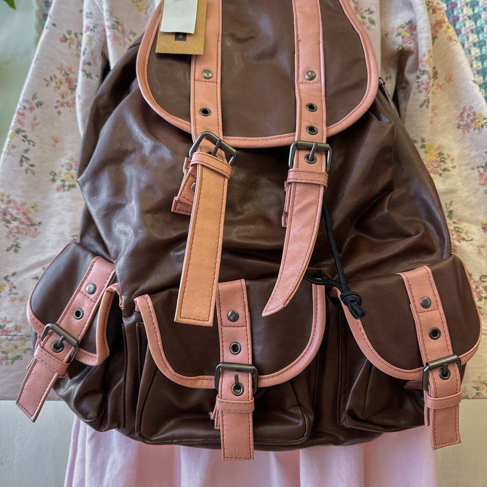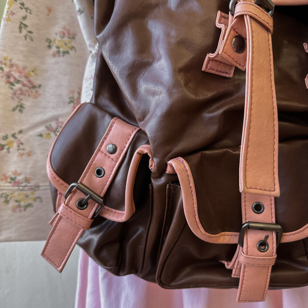 인조가죽으로 추정되구요, 연분홍색과 조합되어 있어서