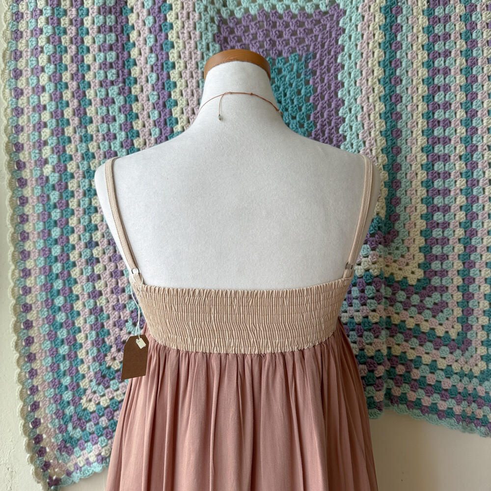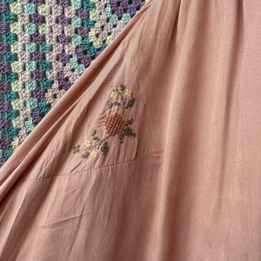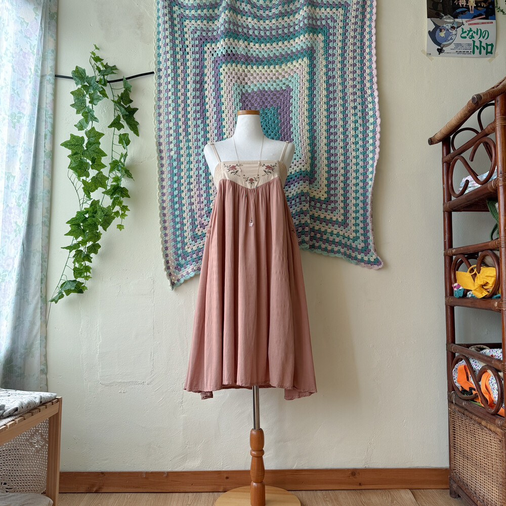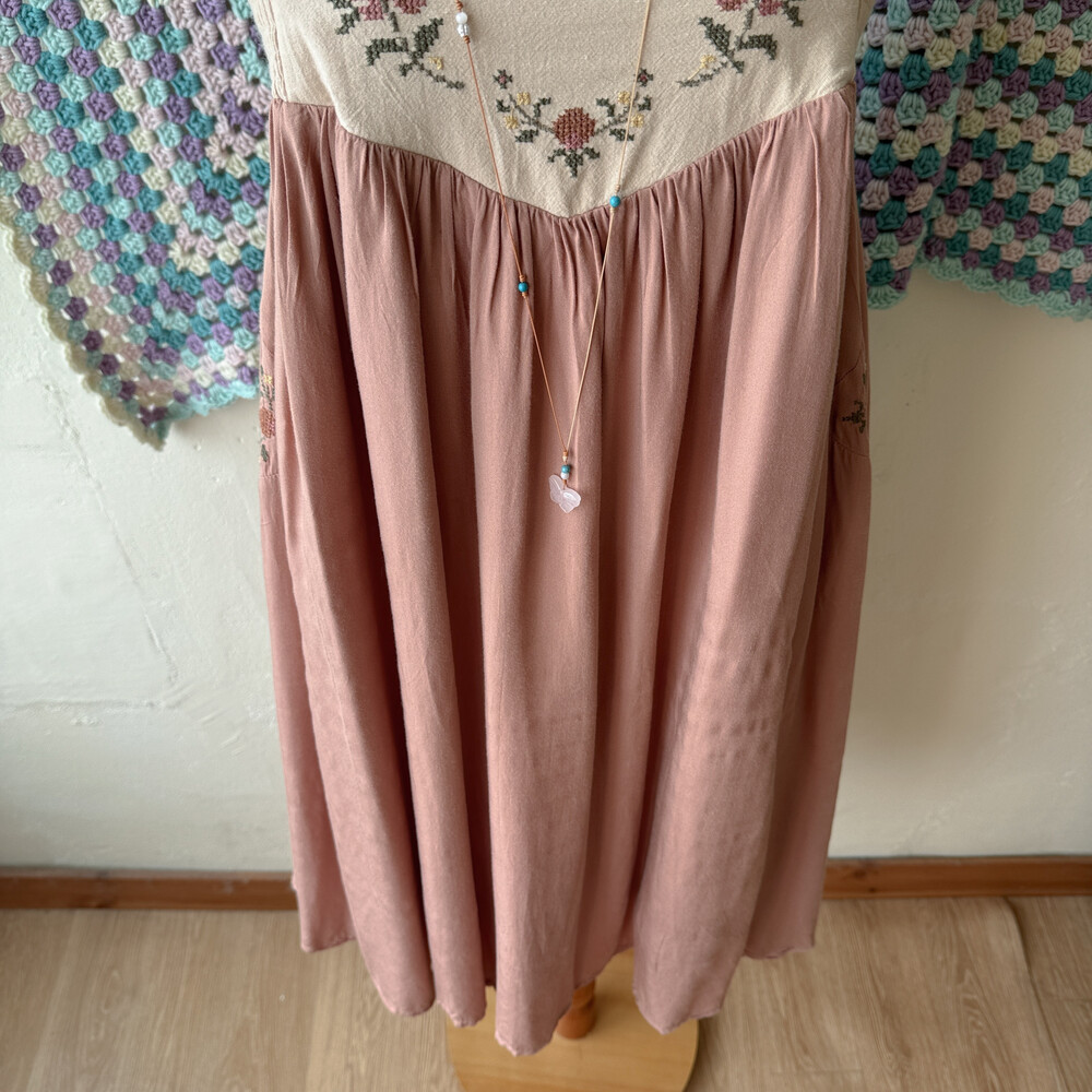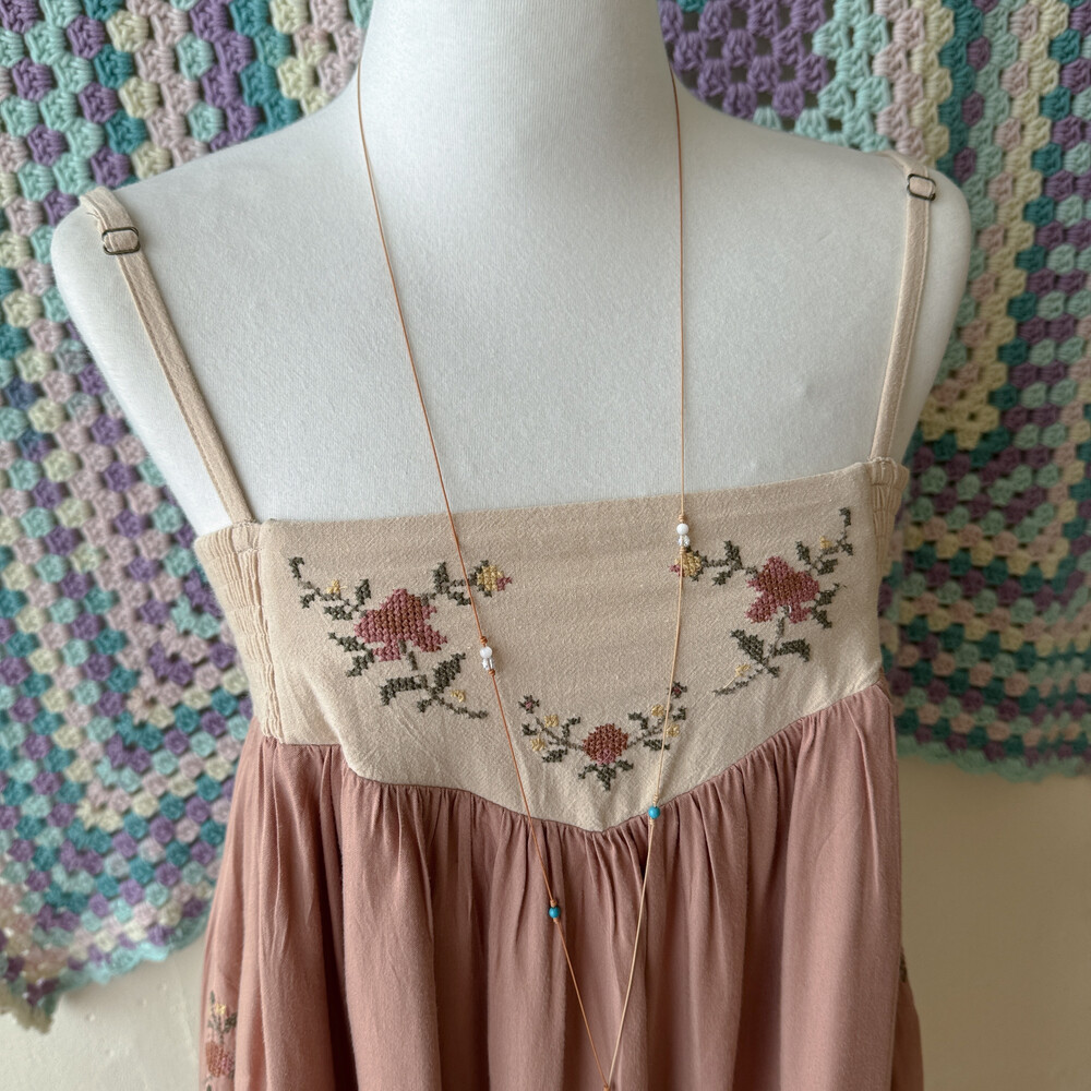 웜한 색감의 십자수 포인트 끈원피스예요