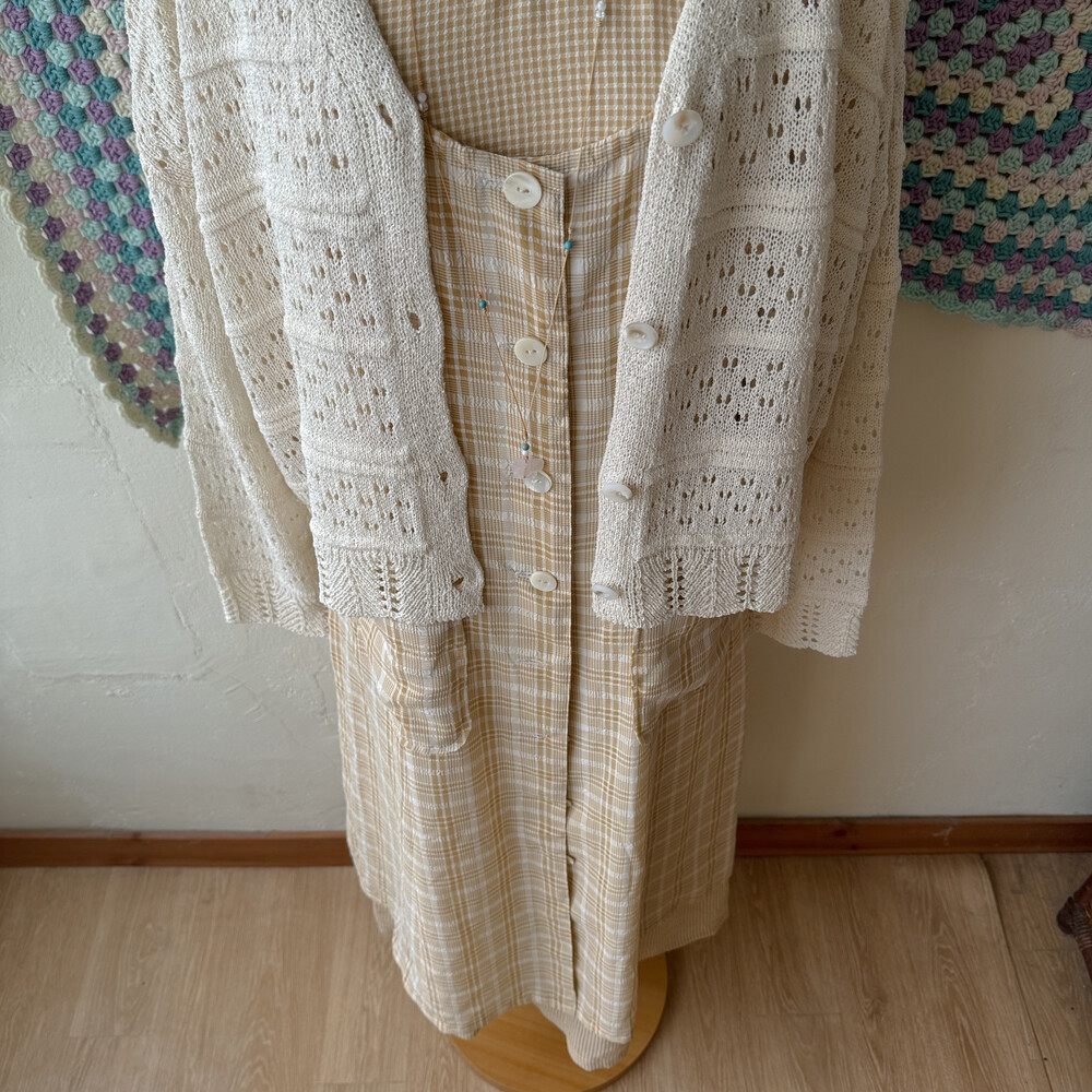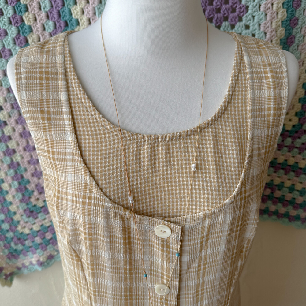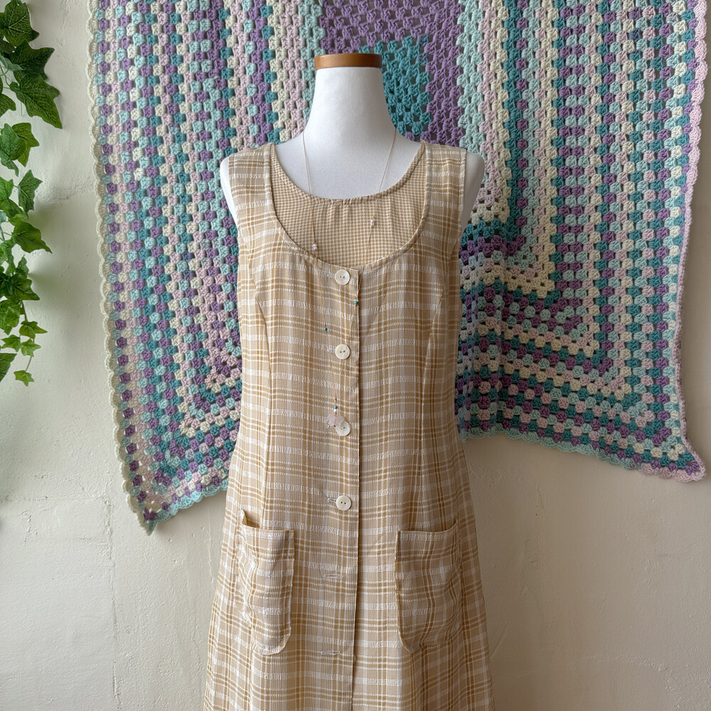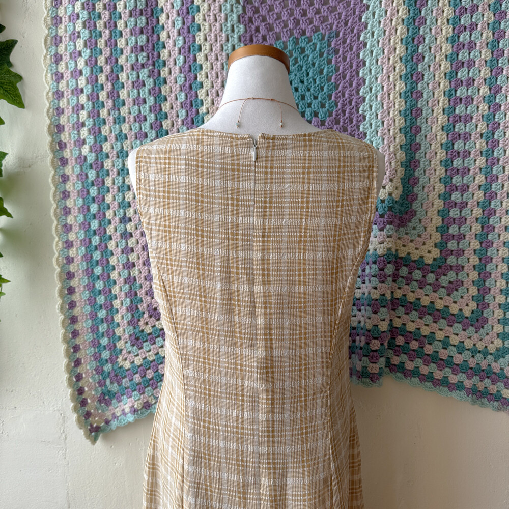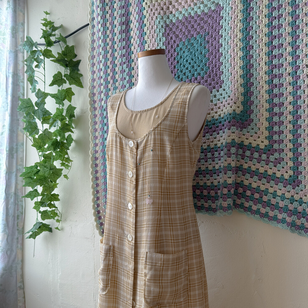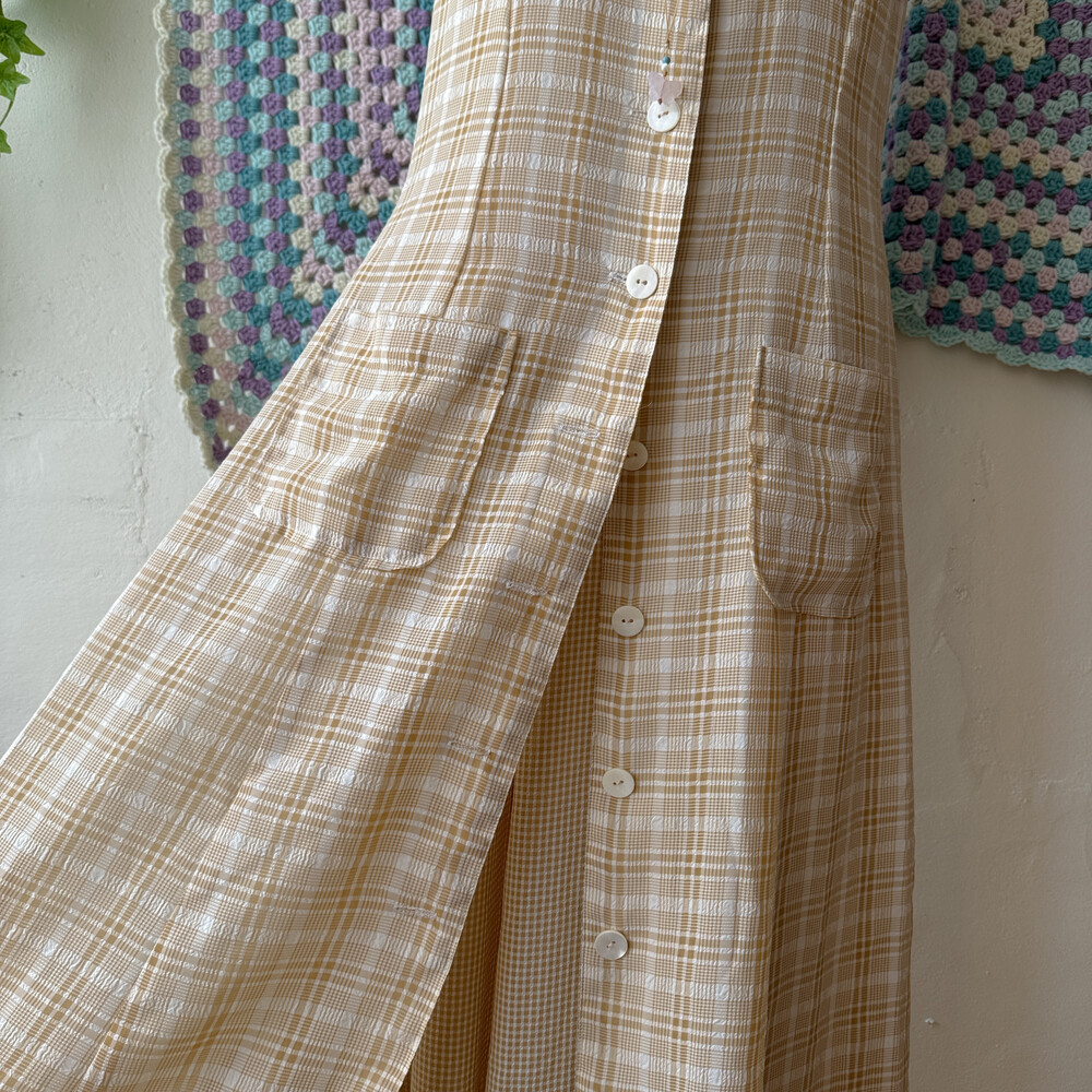 연브라운 색감의 체크 쉬폰 롱원피스예요