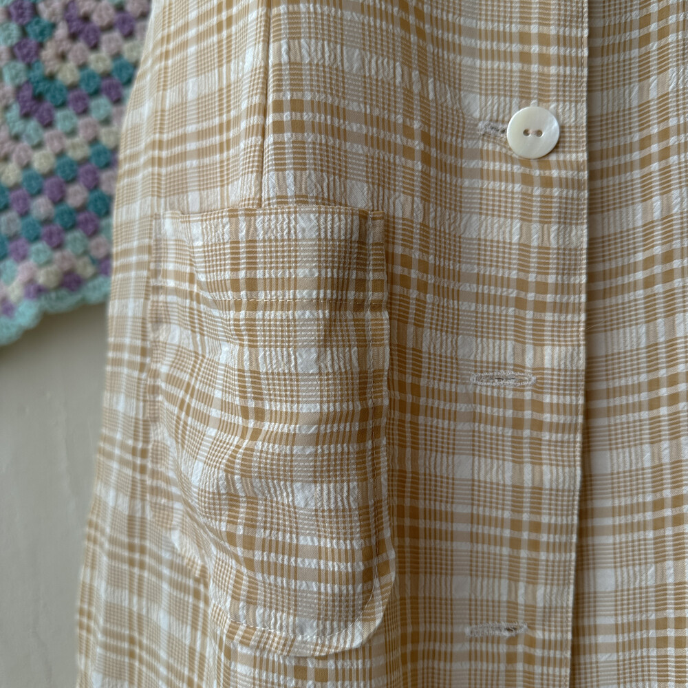 brown check button&pocket layered ops