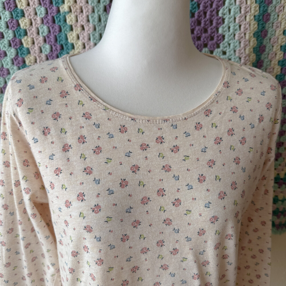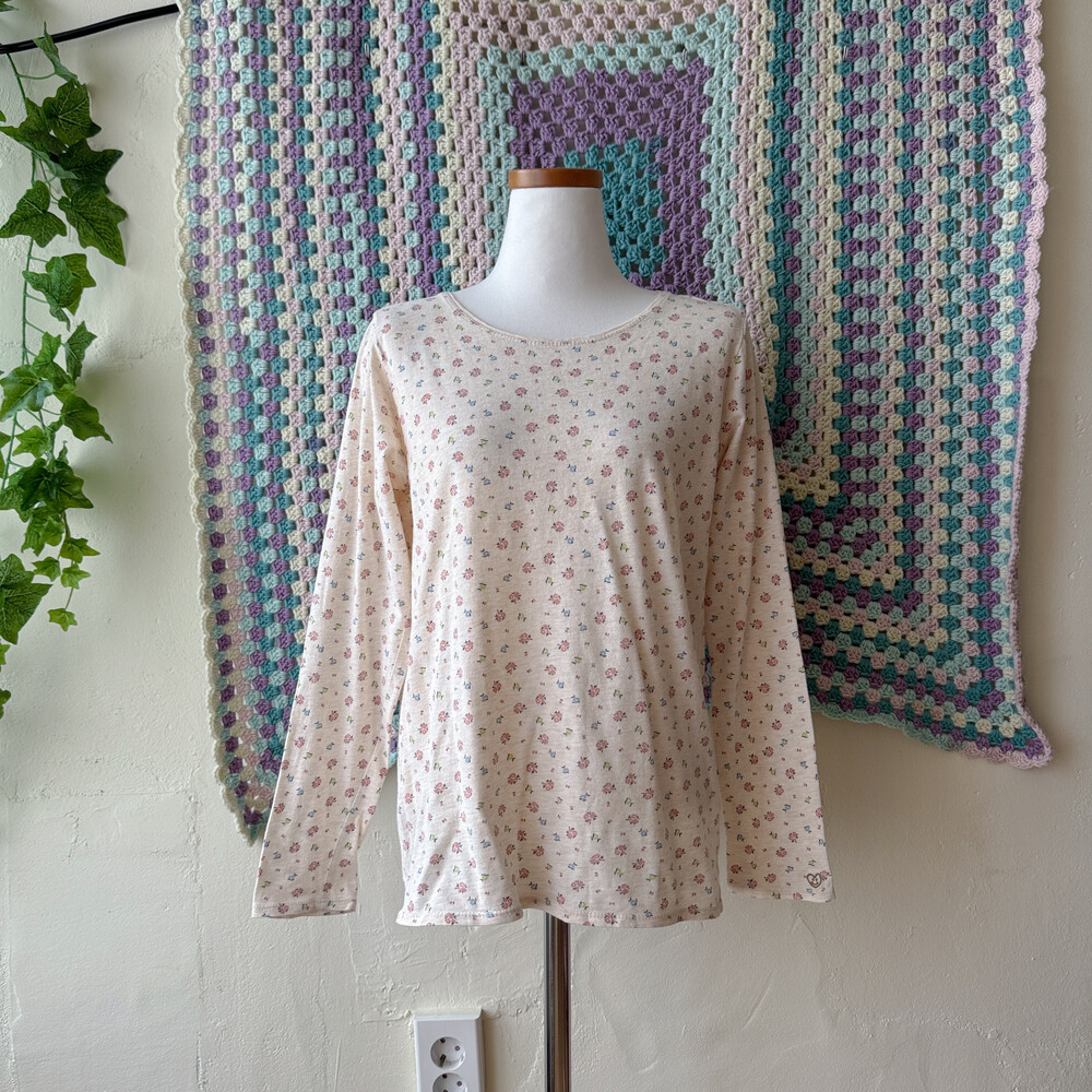 아이보리 색감의 꽃무늬 긴팔 티셔츠예요