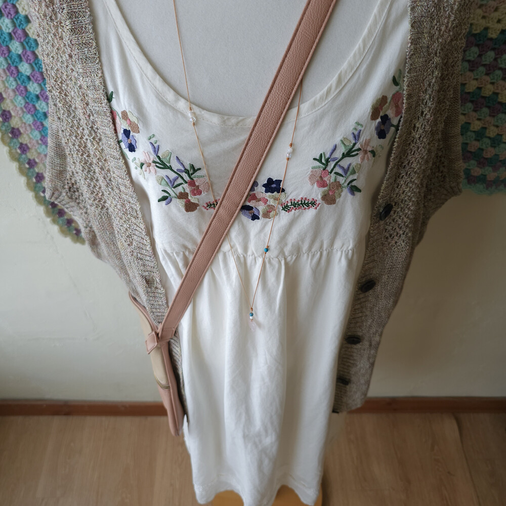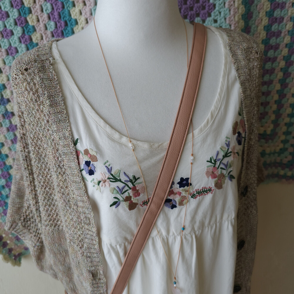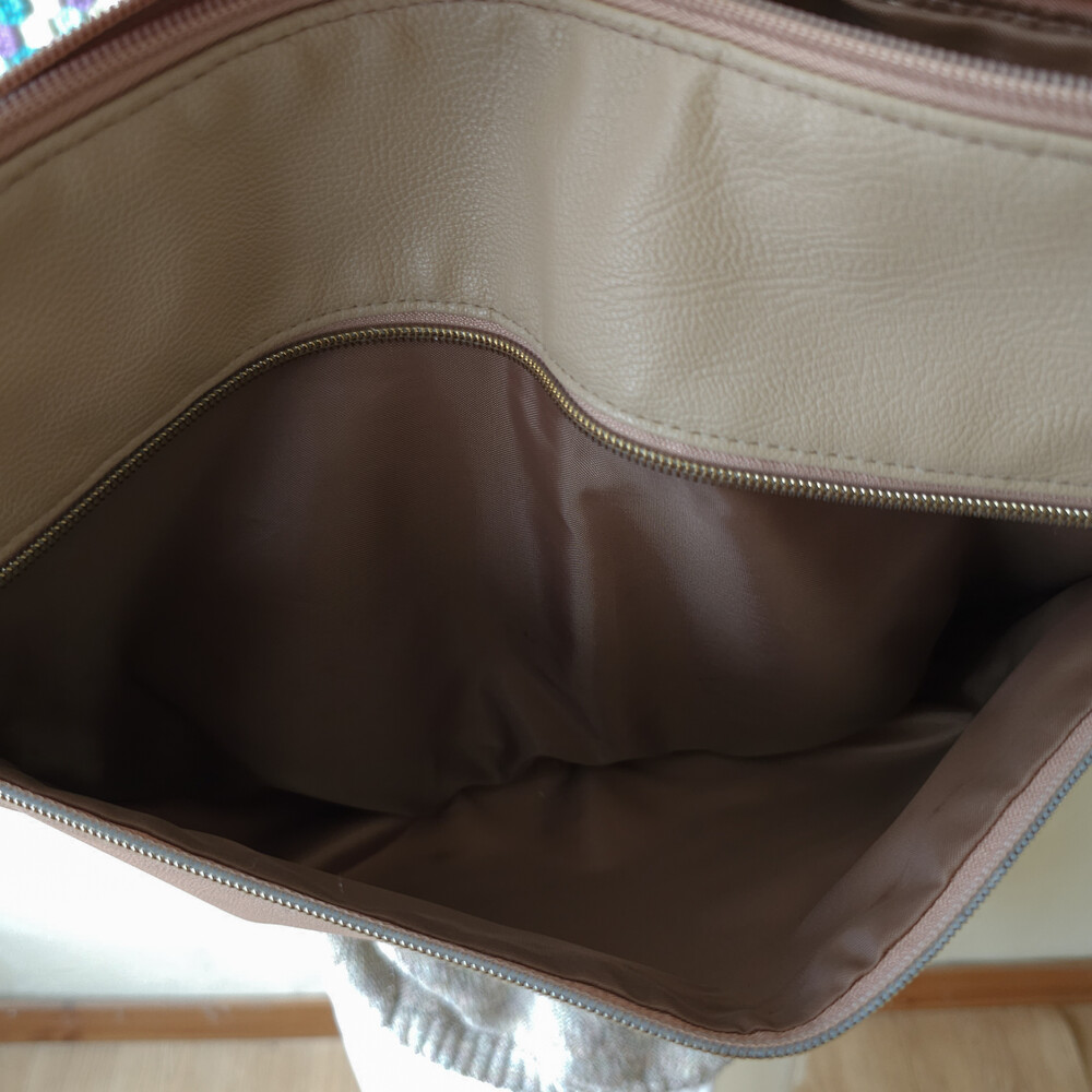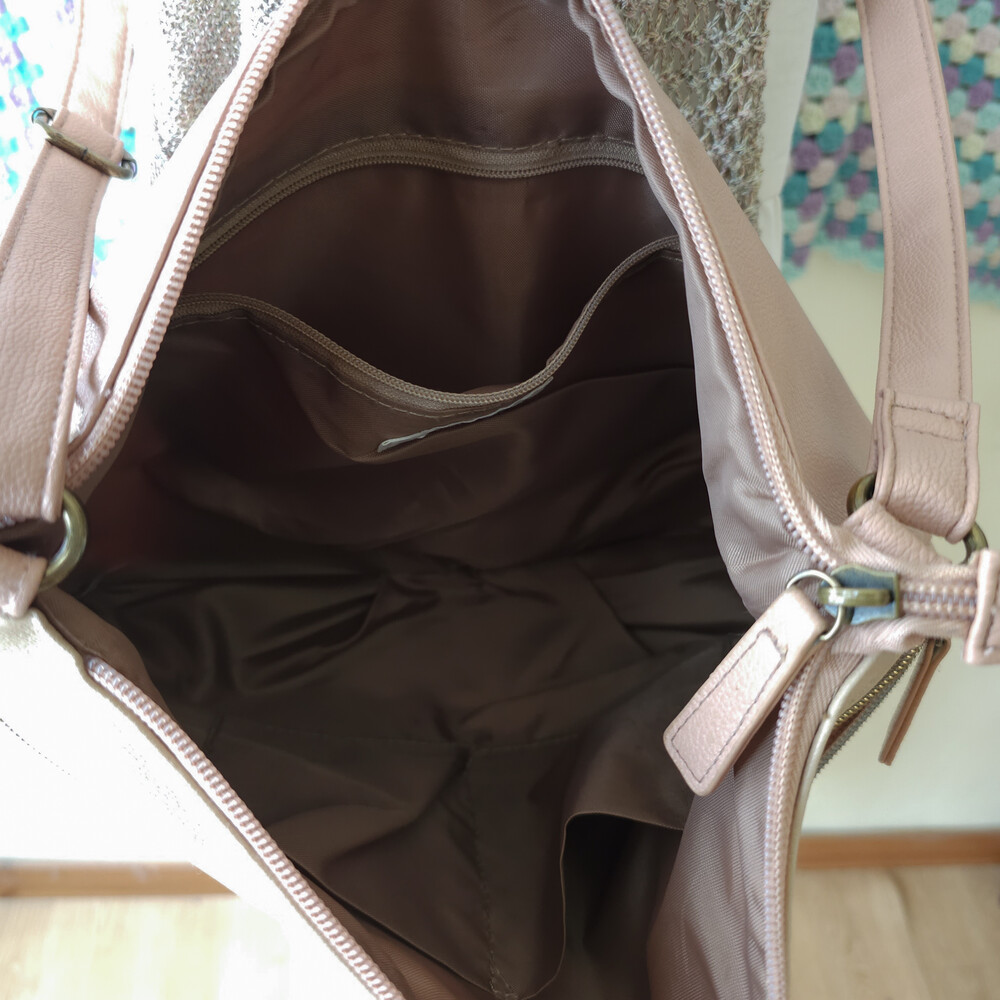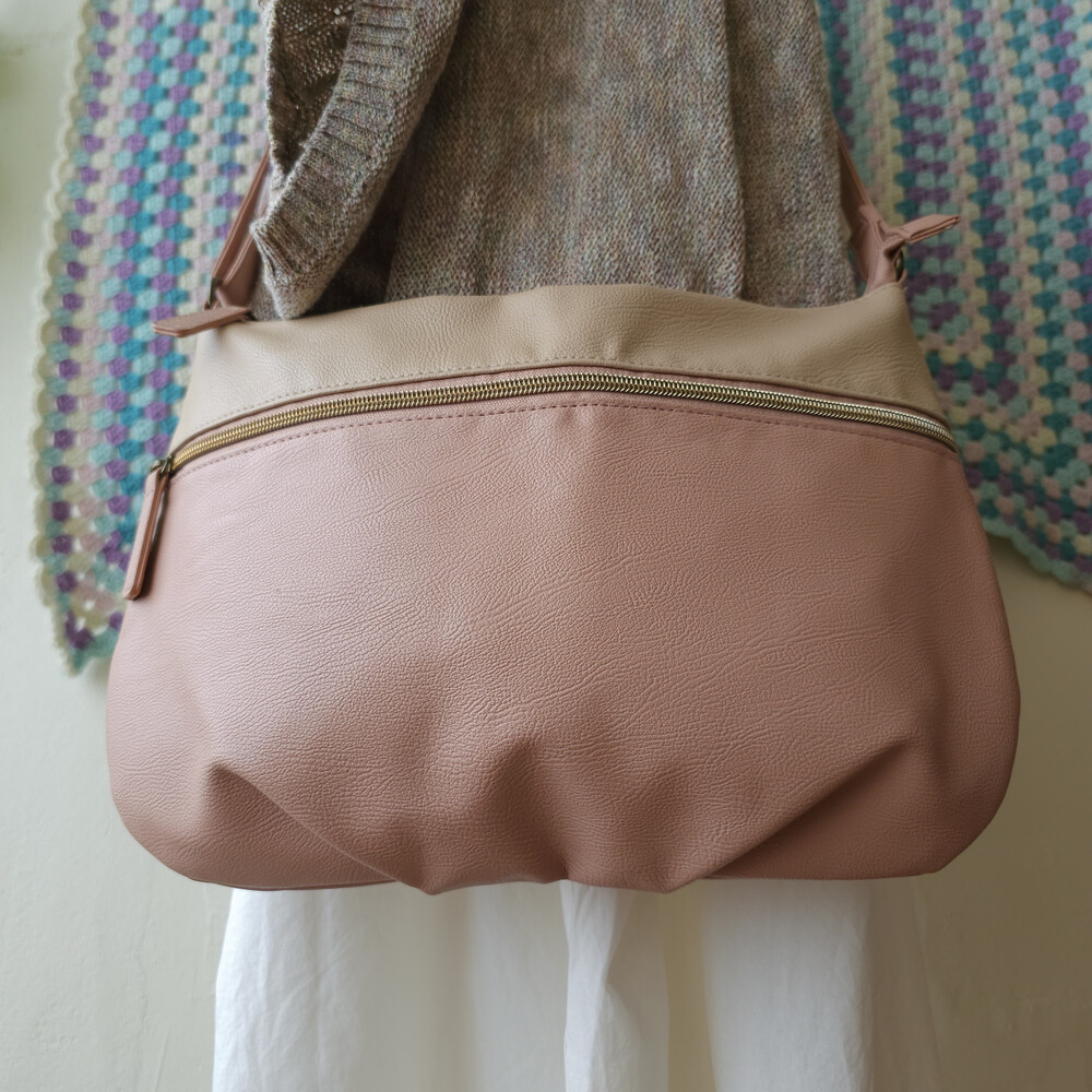 웜한 핑크색감과 베이지색이 조합된 크로스백이에요