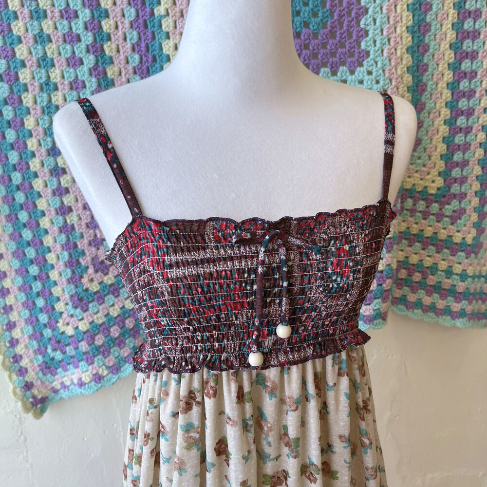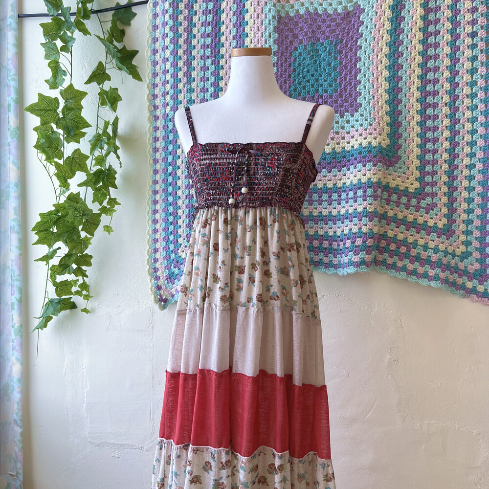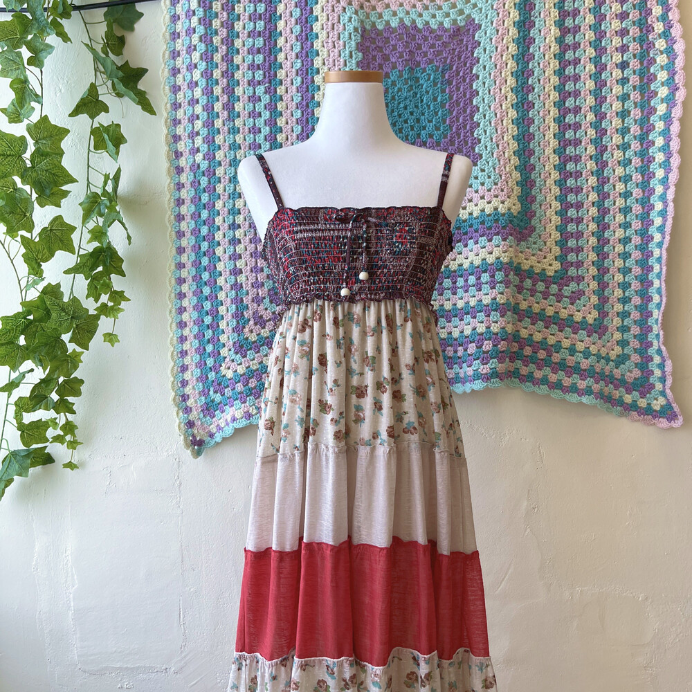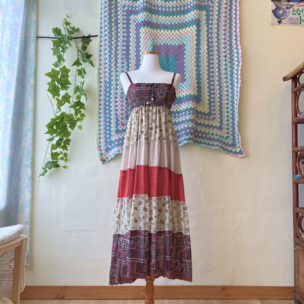 오트밀, 고동, 레드 색감 패치 끈원피스예요