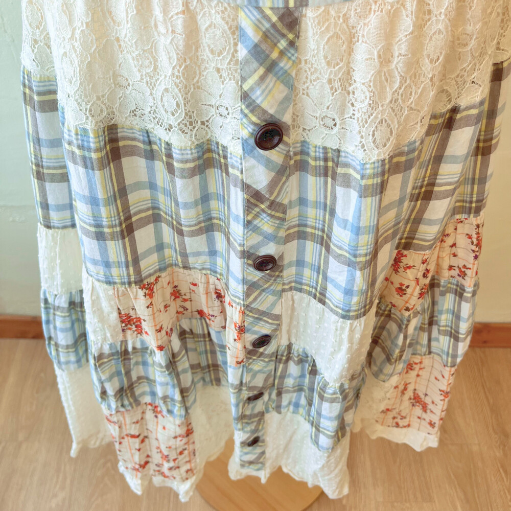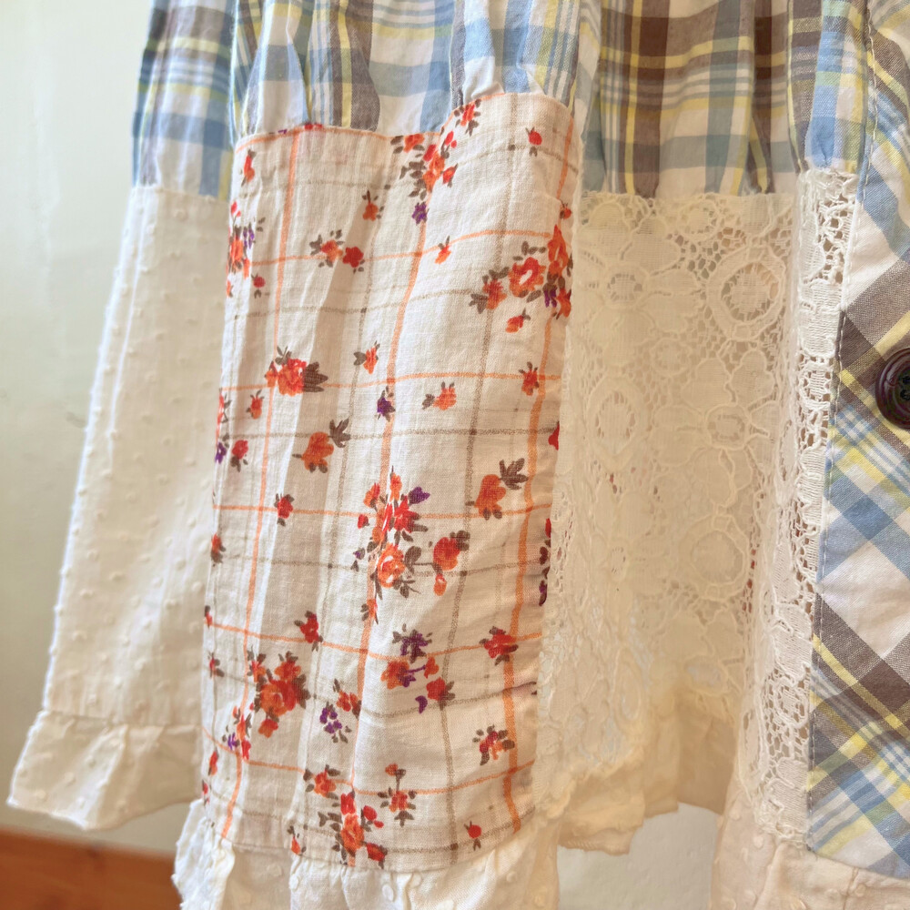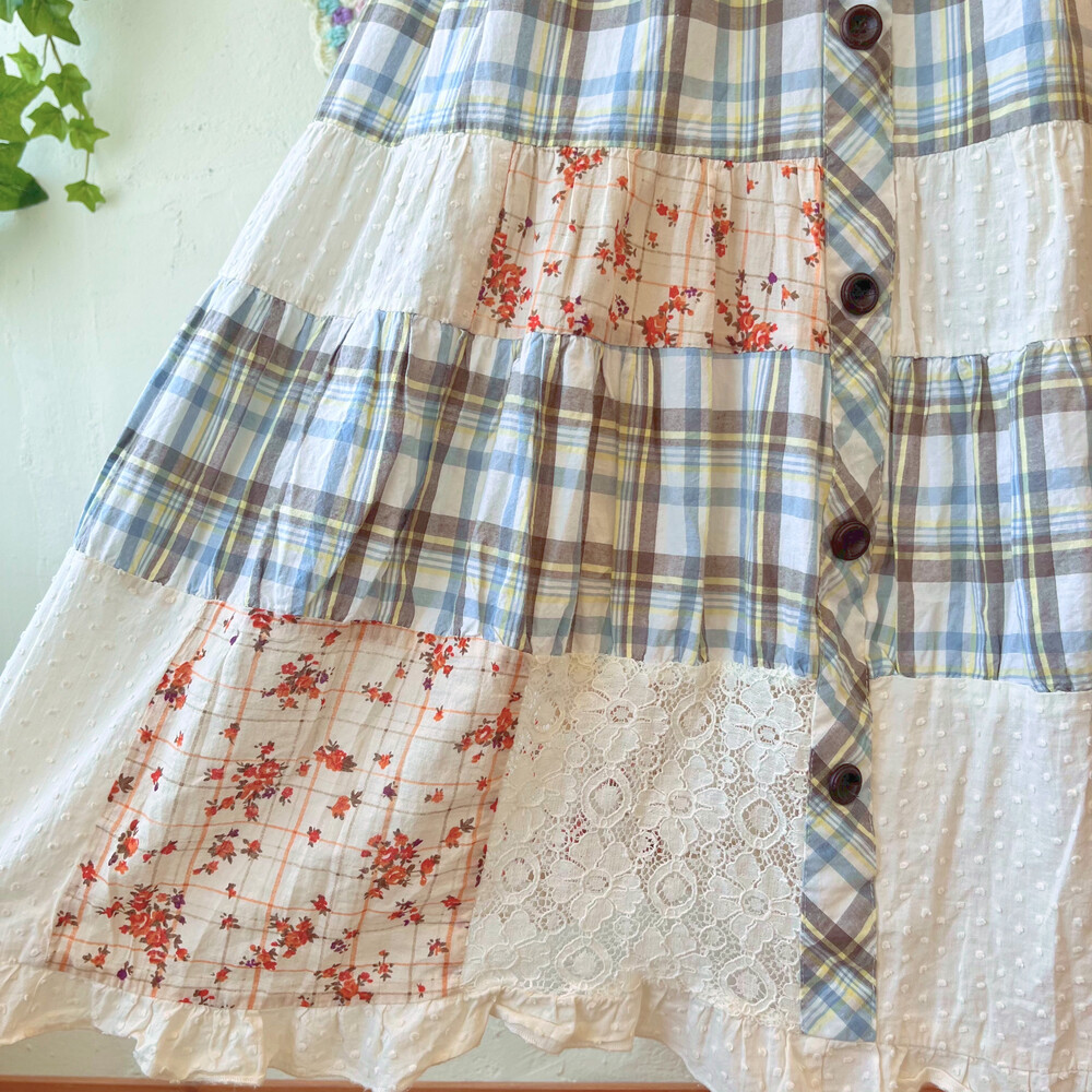 체크와 꽃무늬, 레이스 패치 조합이 사랑스러워요