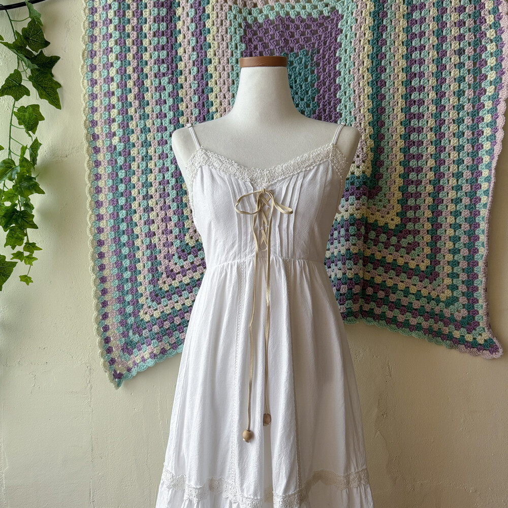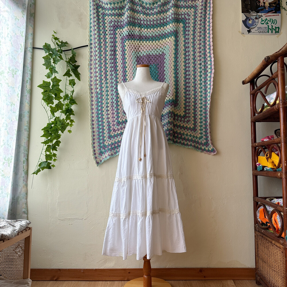 화이트 색감의 아일렛 끈원피스예요