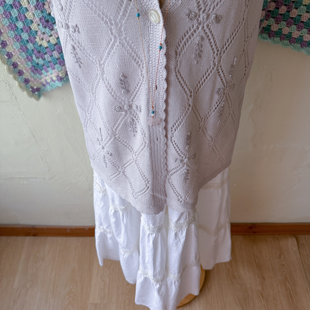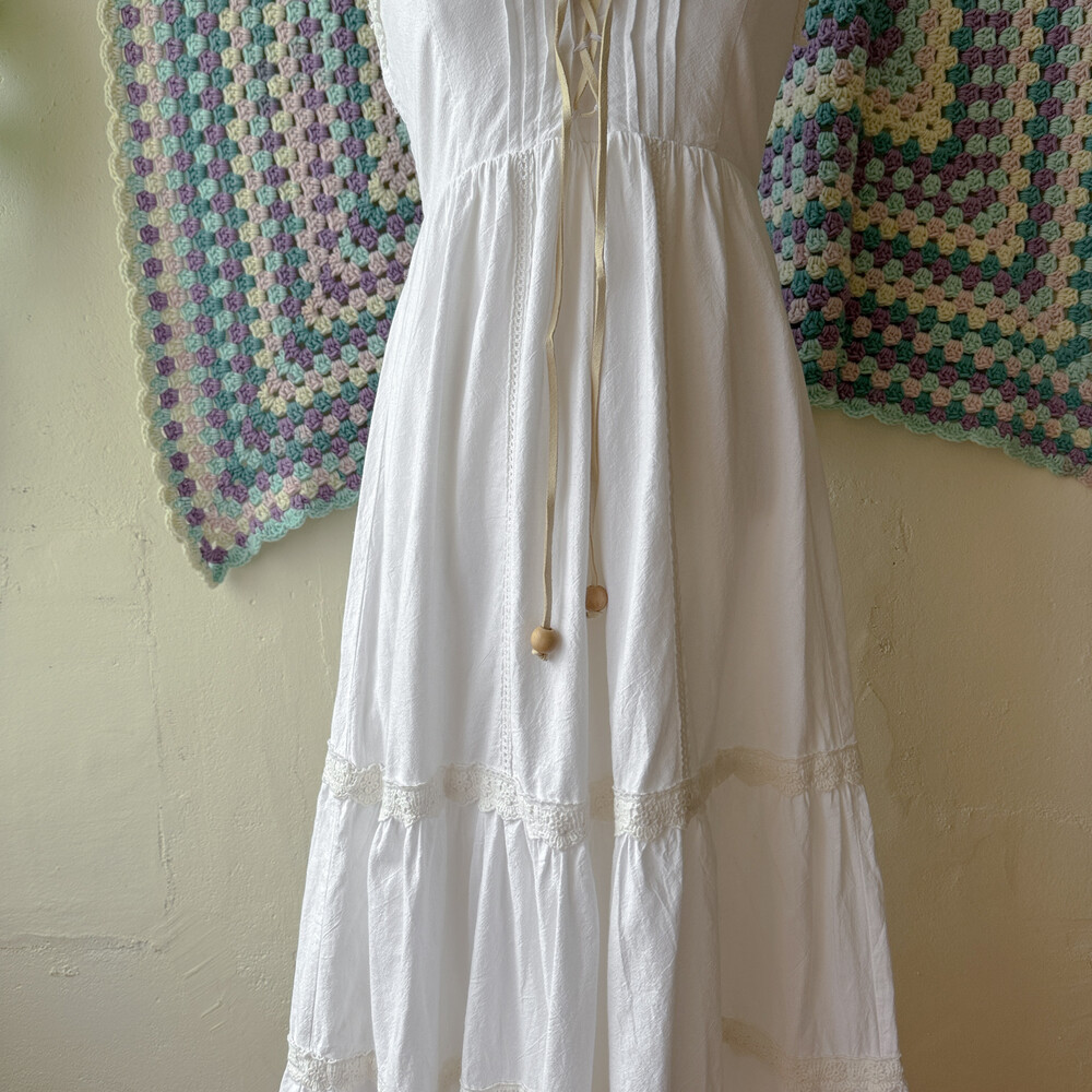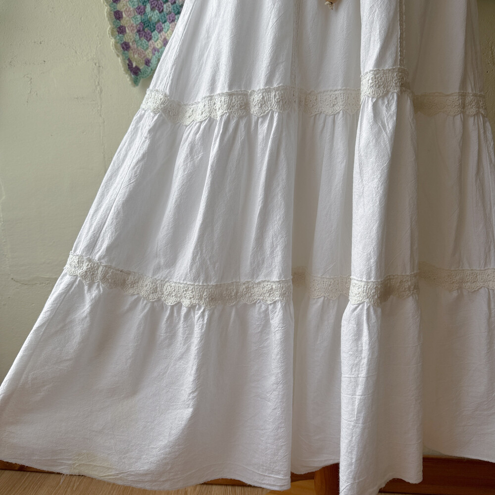 white v-neck eyelet lace tiered ops