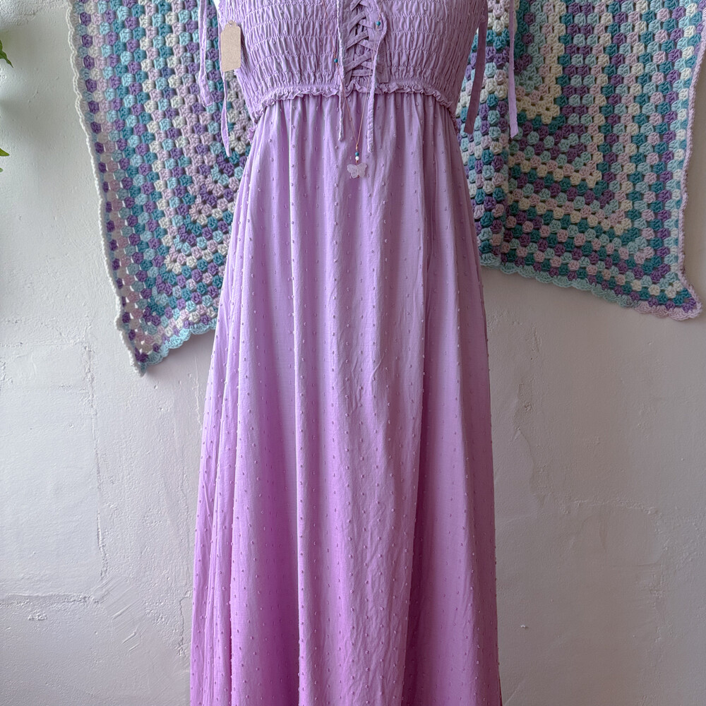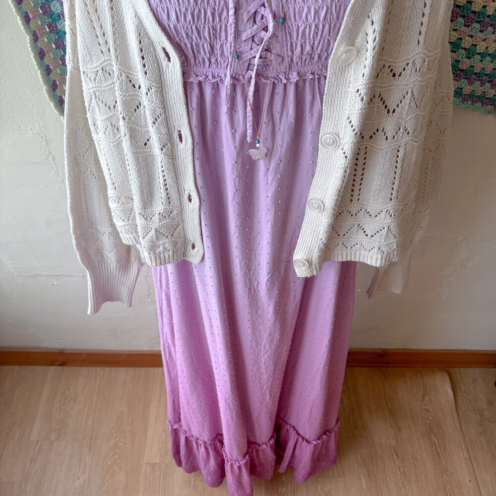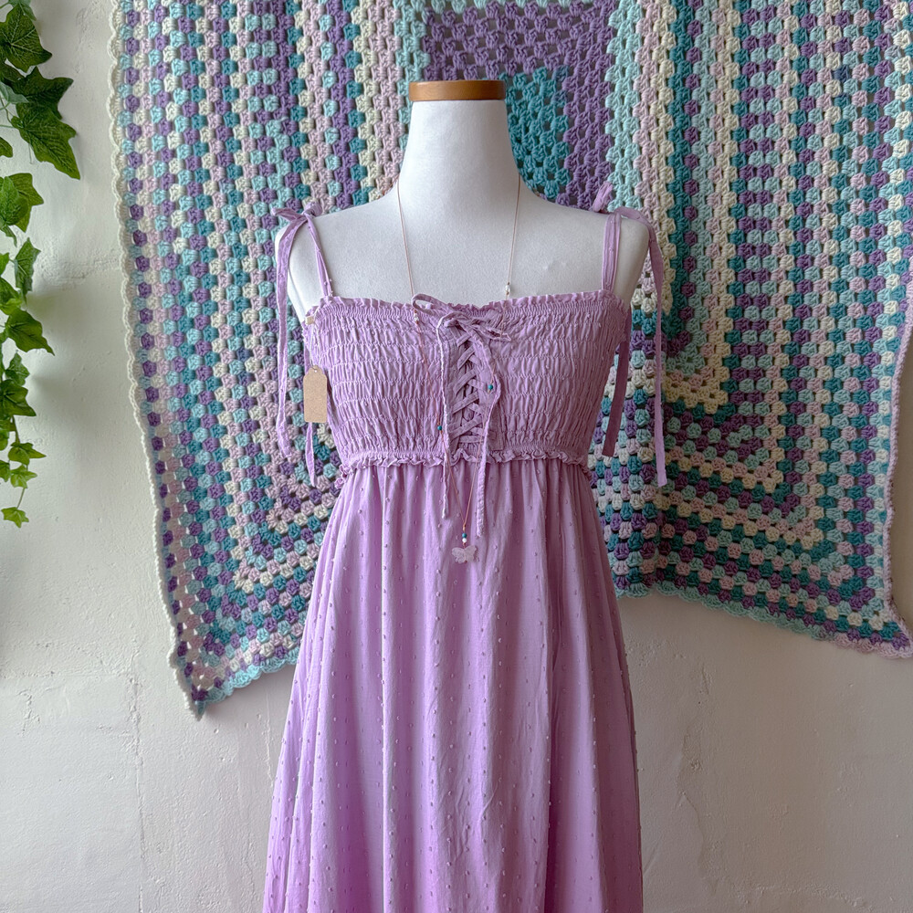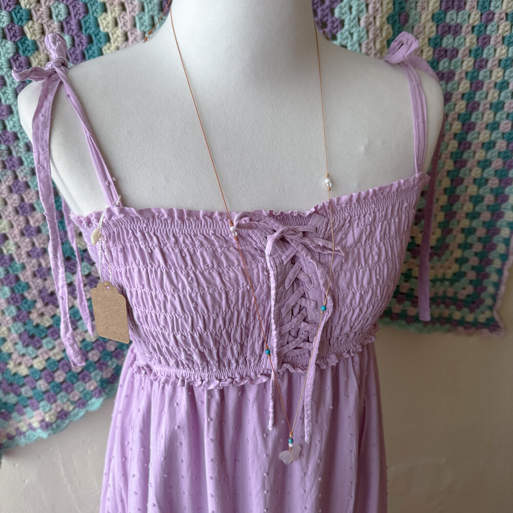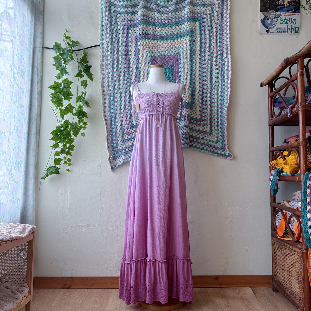 보라색의 그라데이션 코튼 끈원피스예요