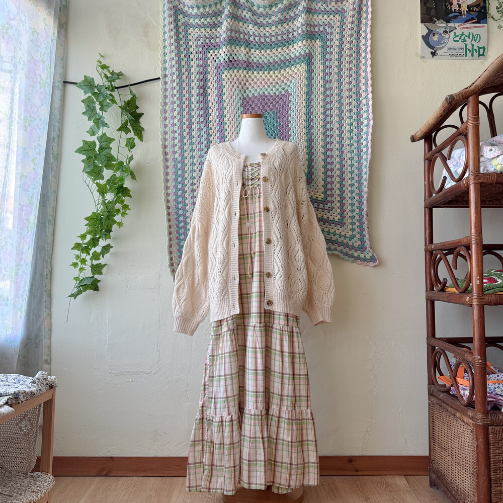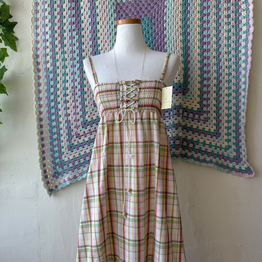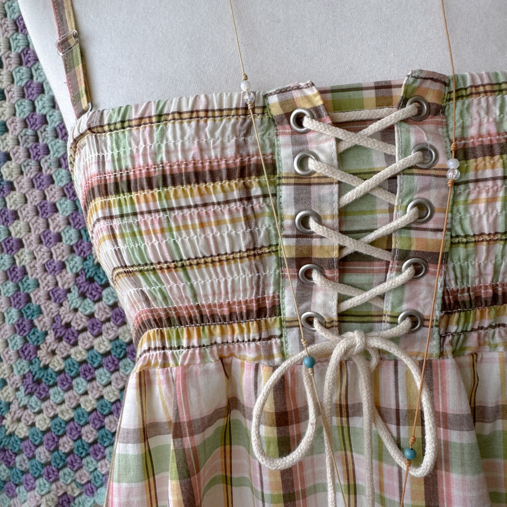 pink&green check eyelet long ops