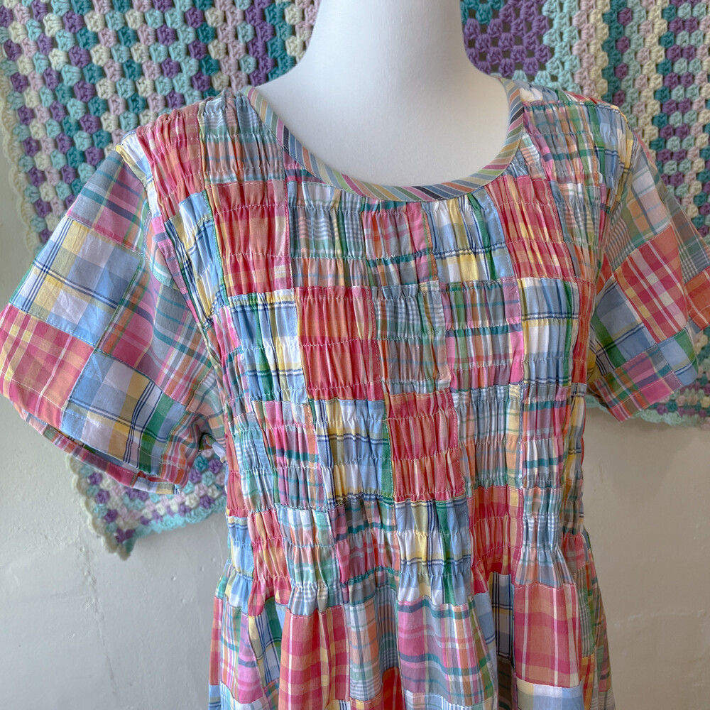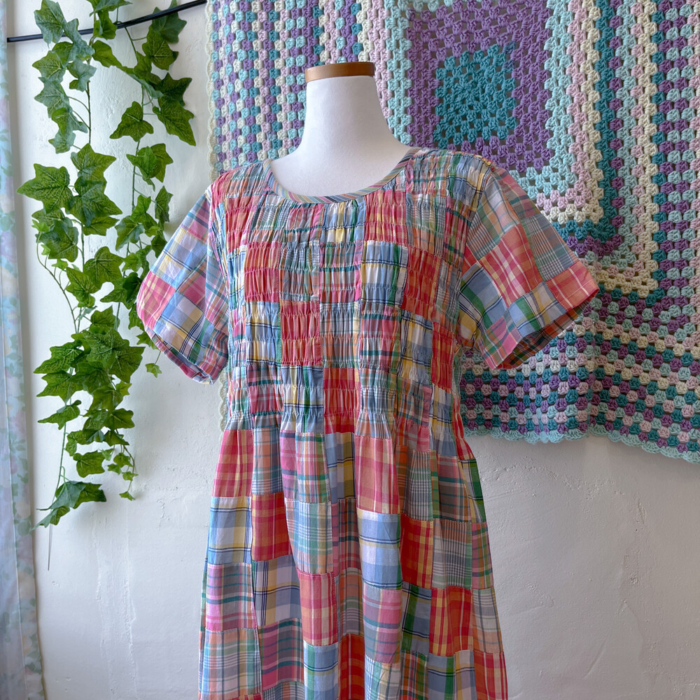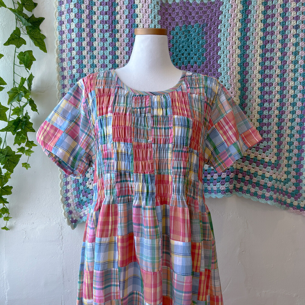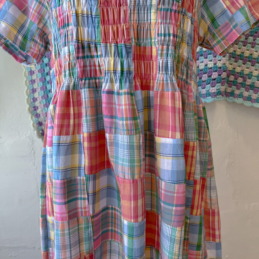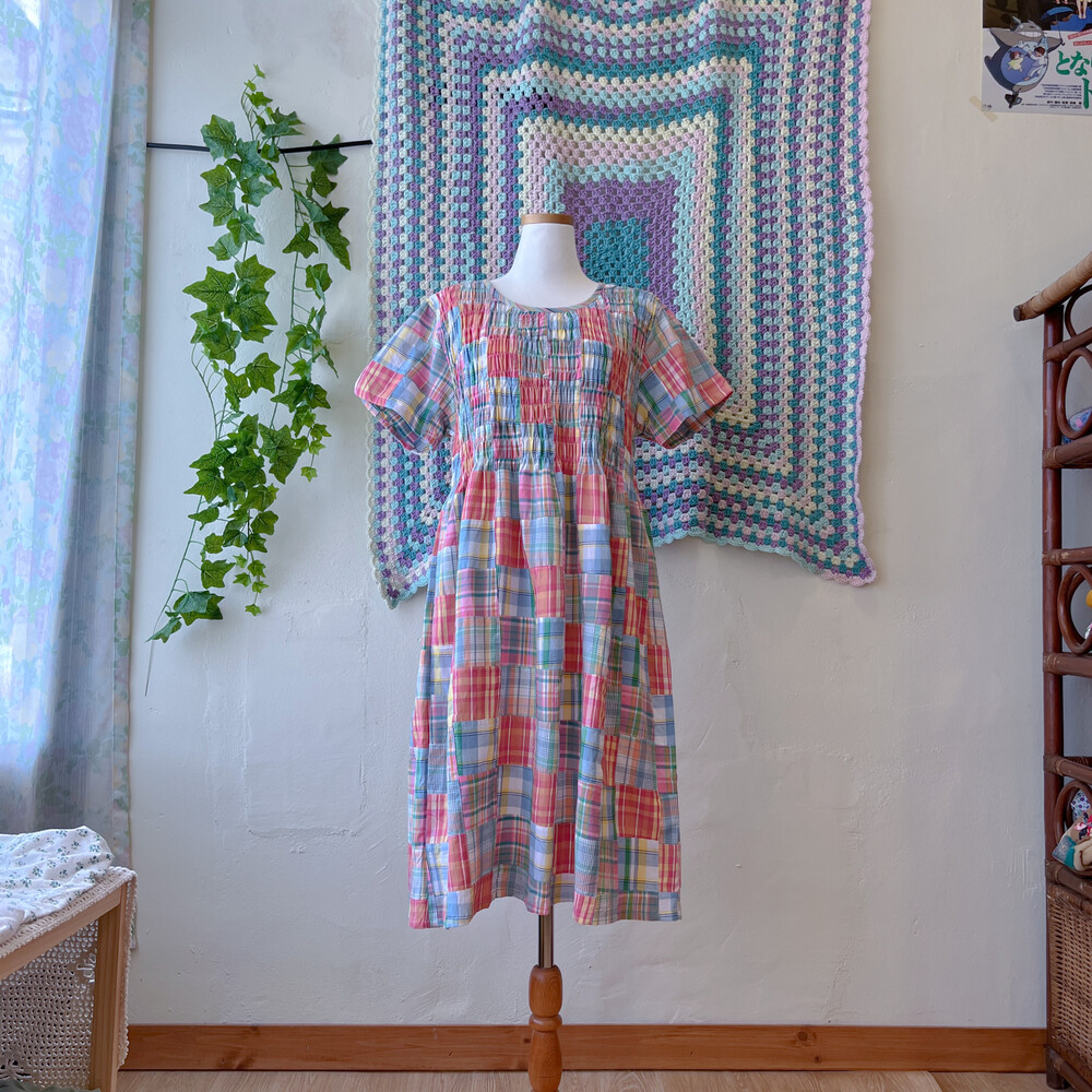 모리모리한 분위기의 코튼 체크 패치 원피스예요