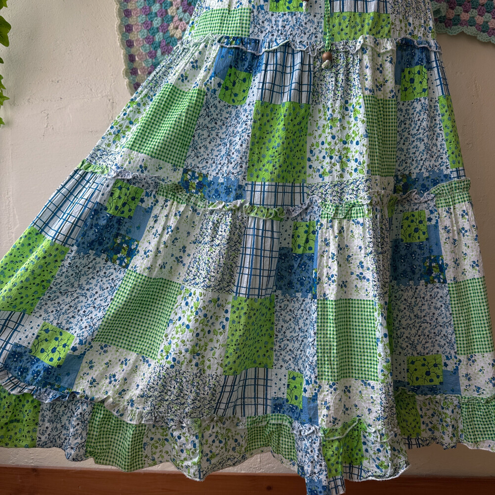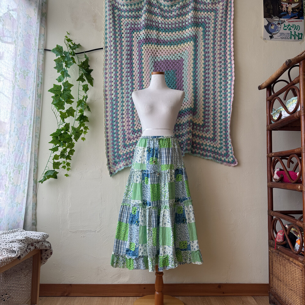 blue&green flower pattern frill sk