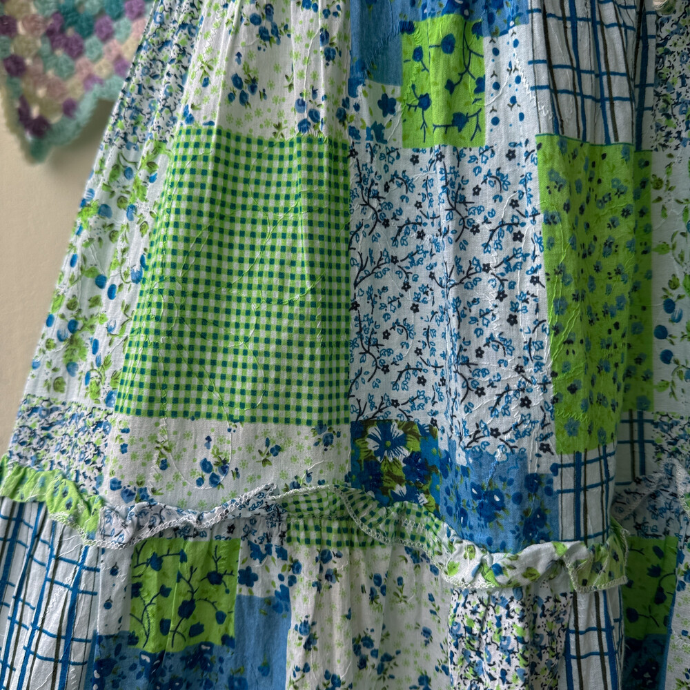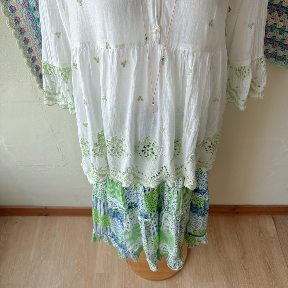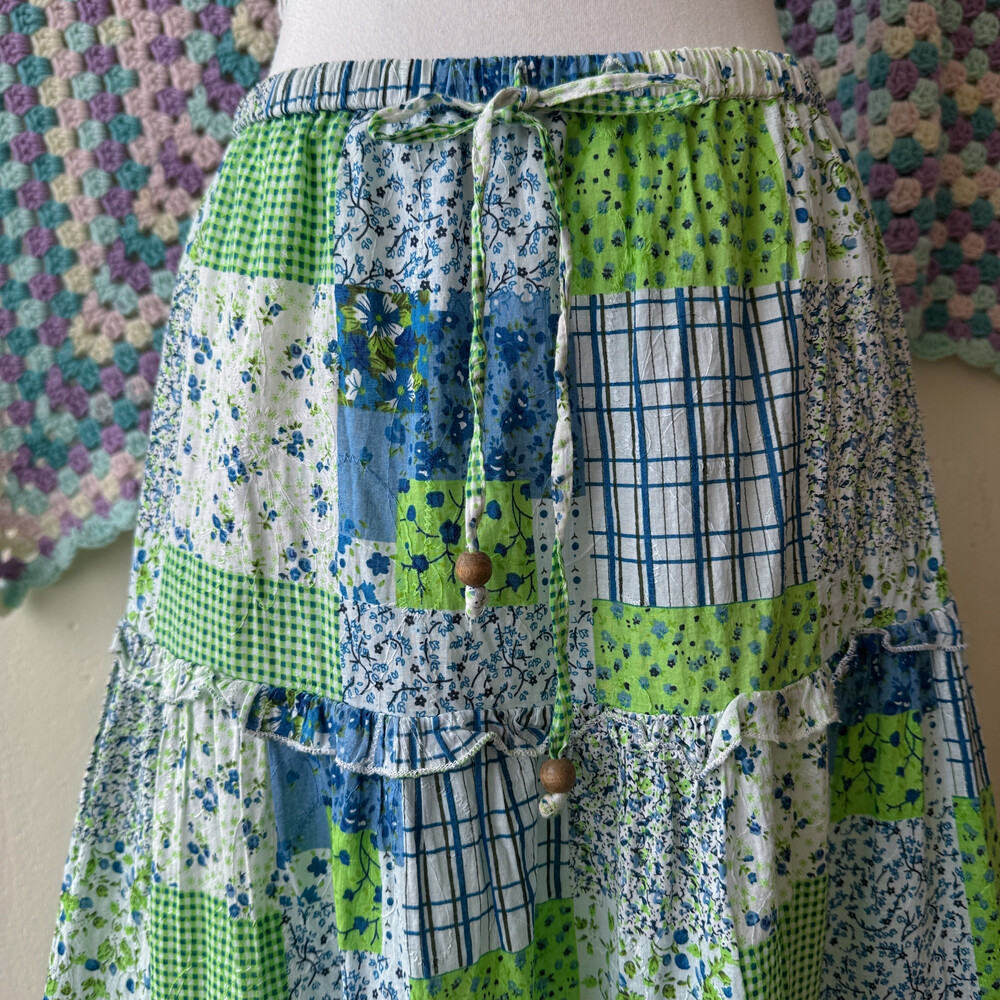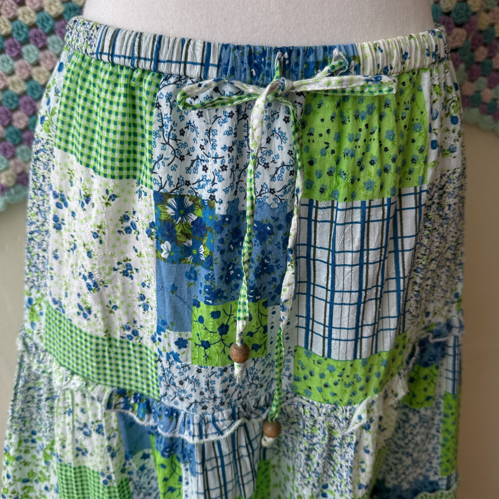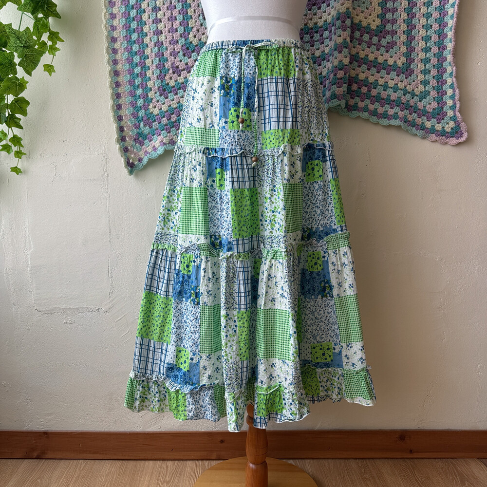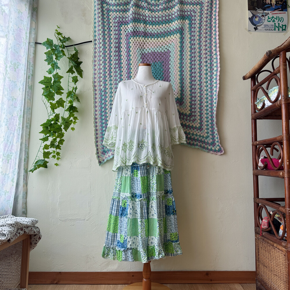 블루, 그린 꽃무늬 코튼 스커트예요