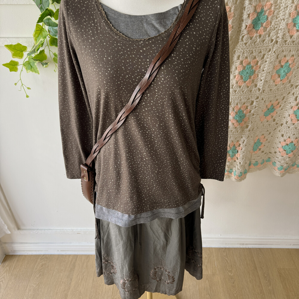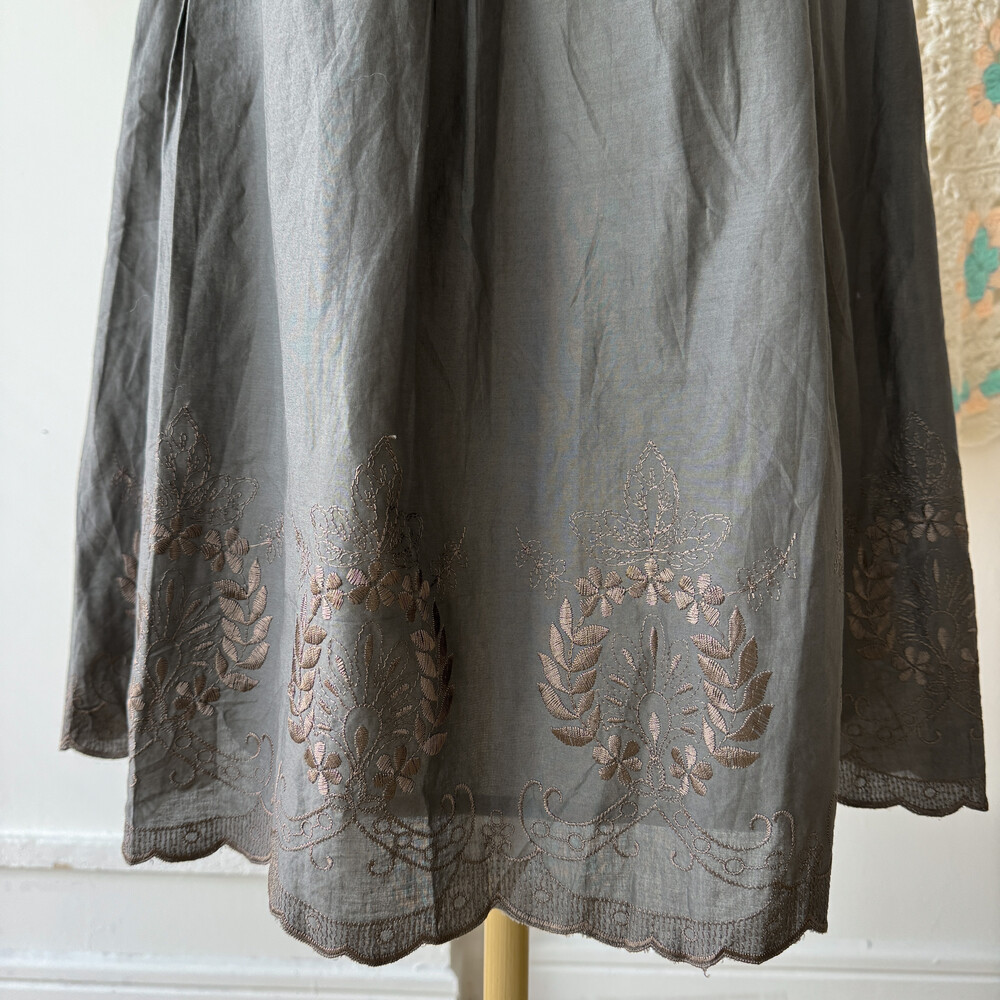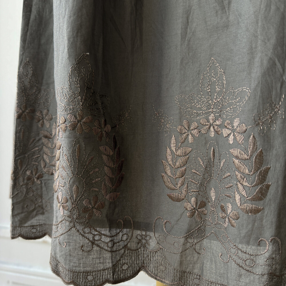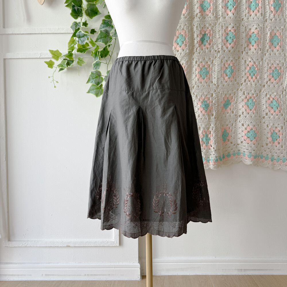 dark khaki leaf embroidery sk