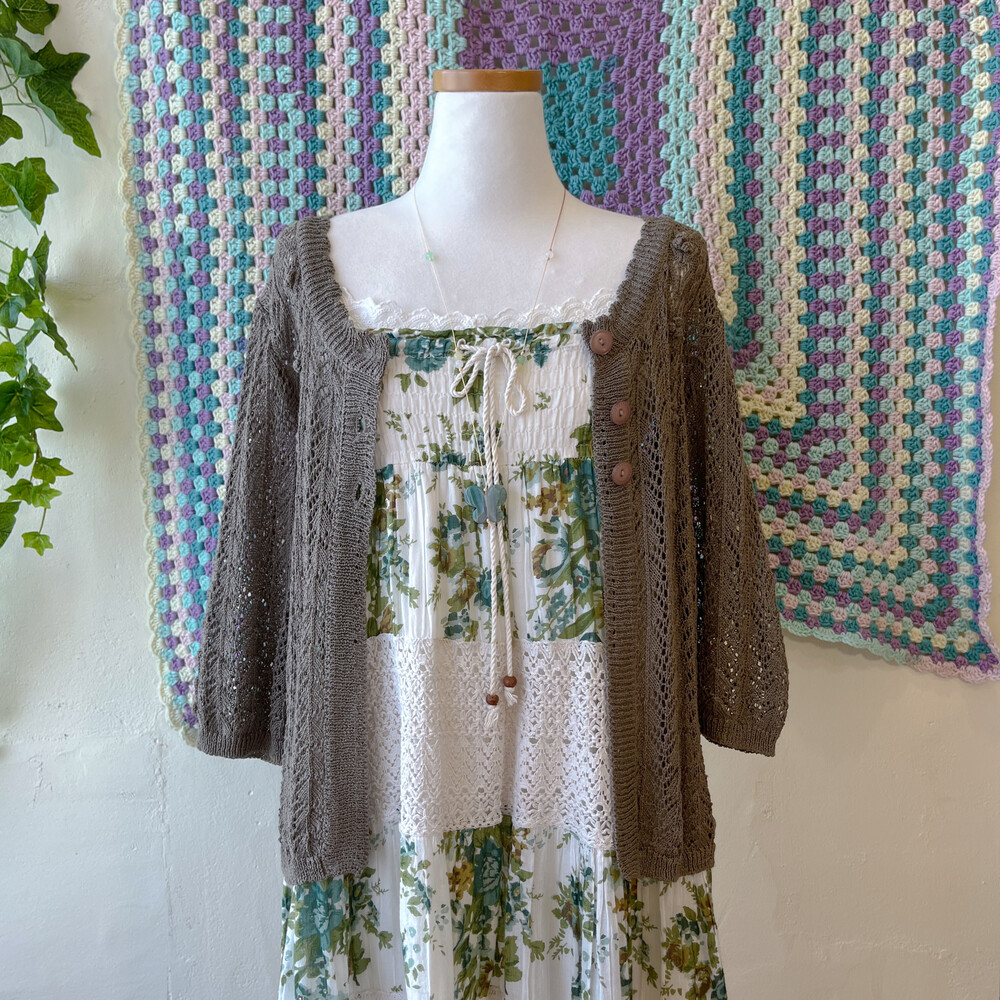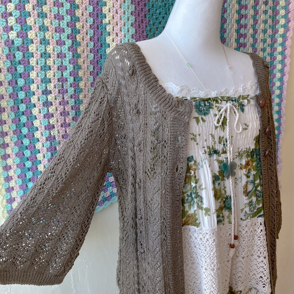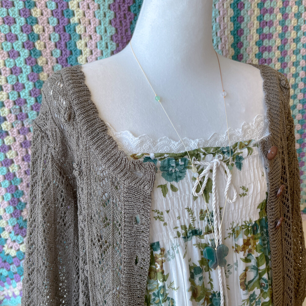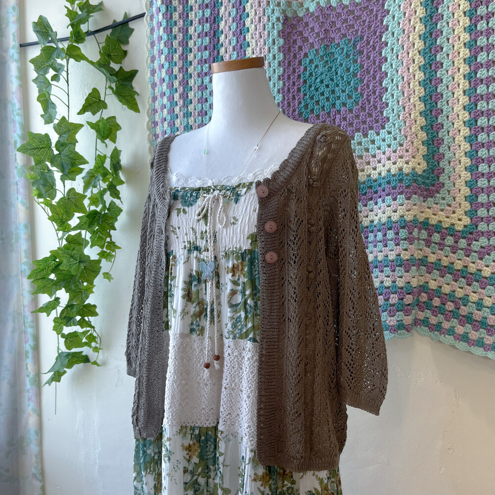 다크 카키 색감의 크로셰 가디건이에요