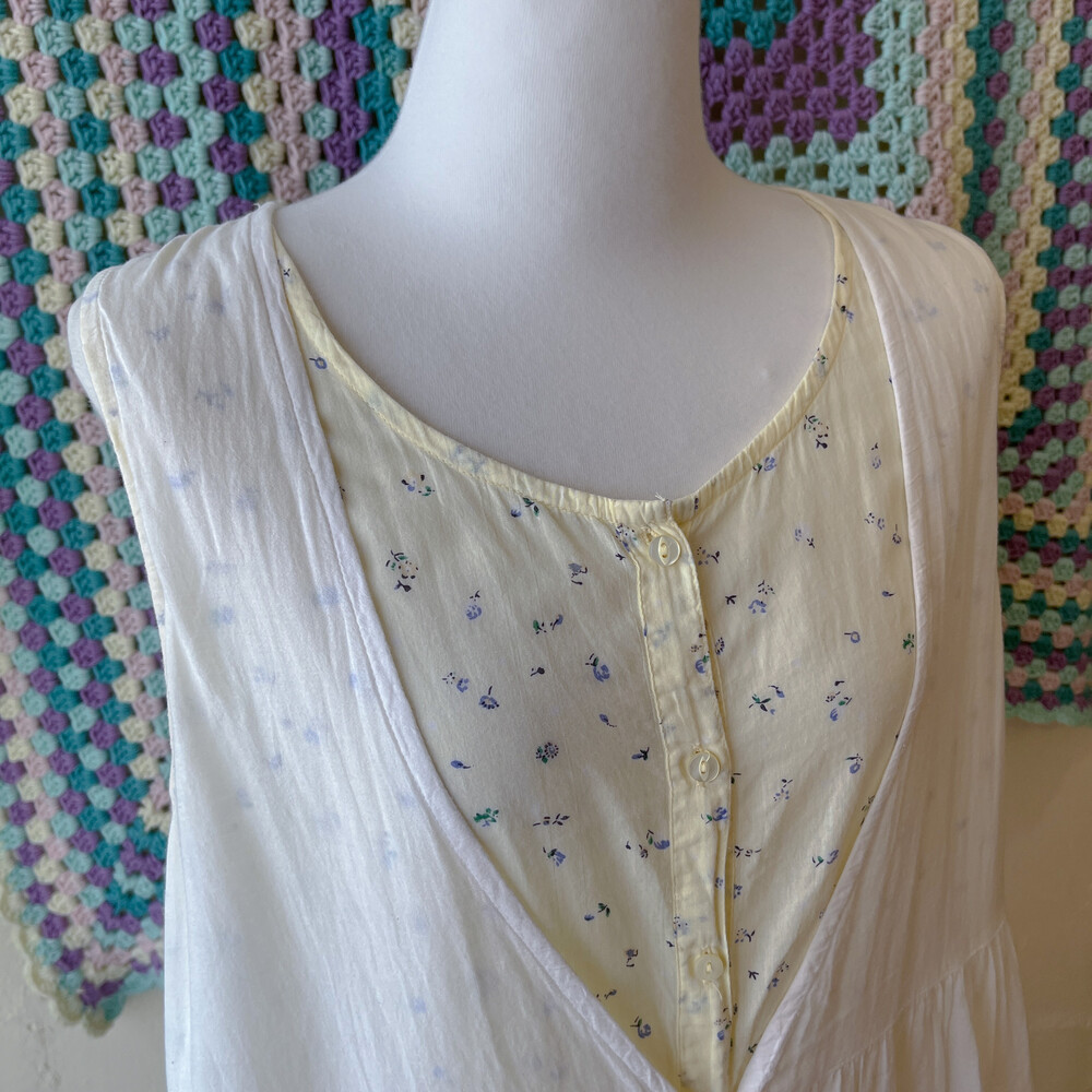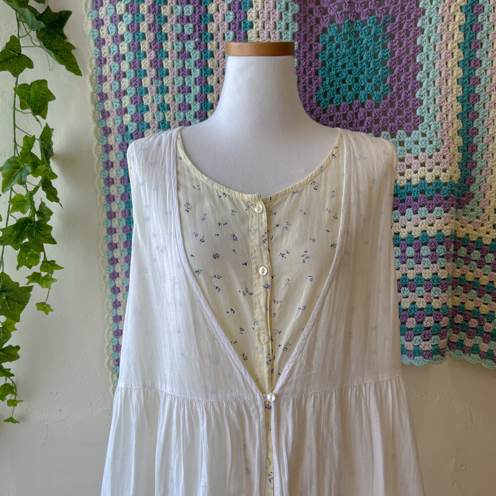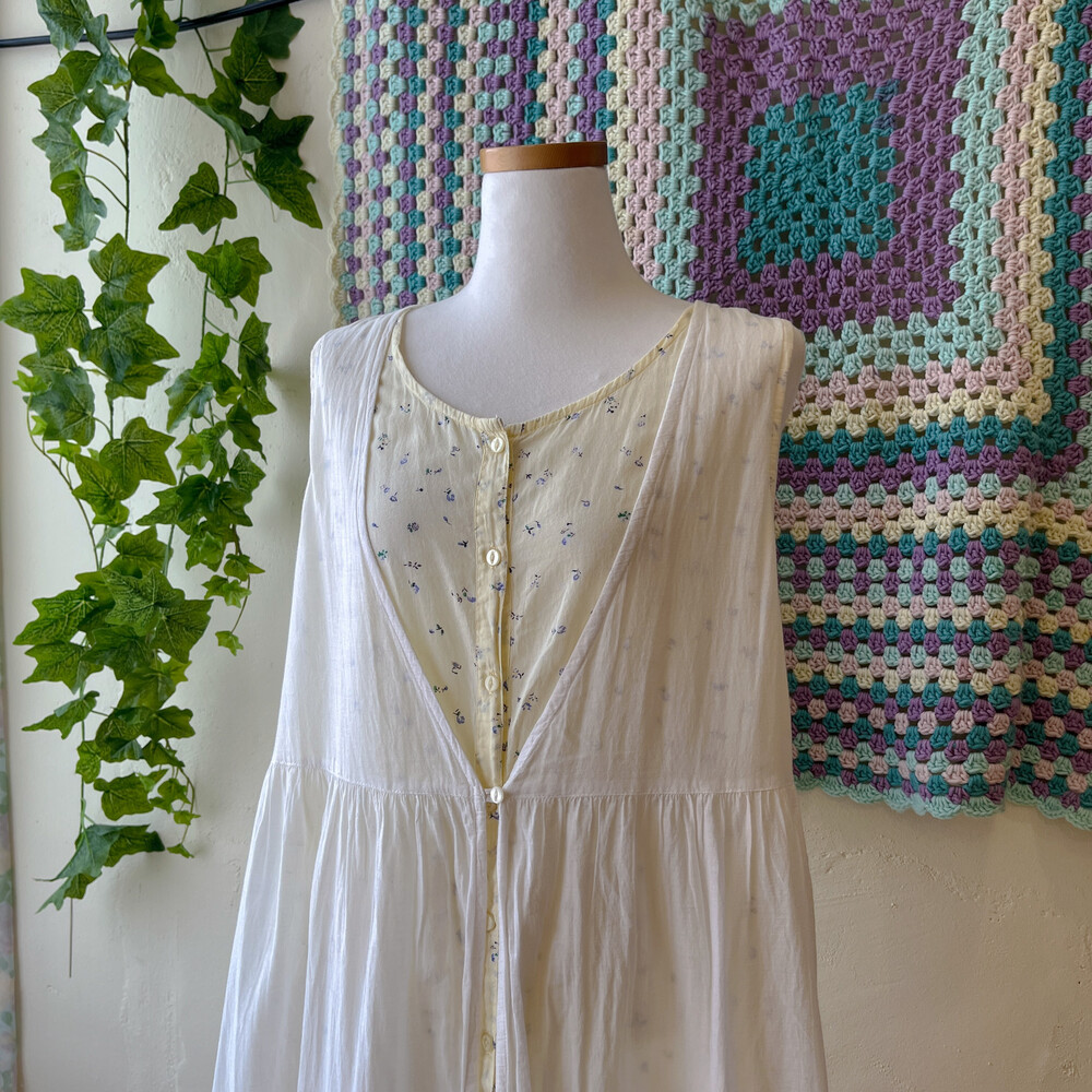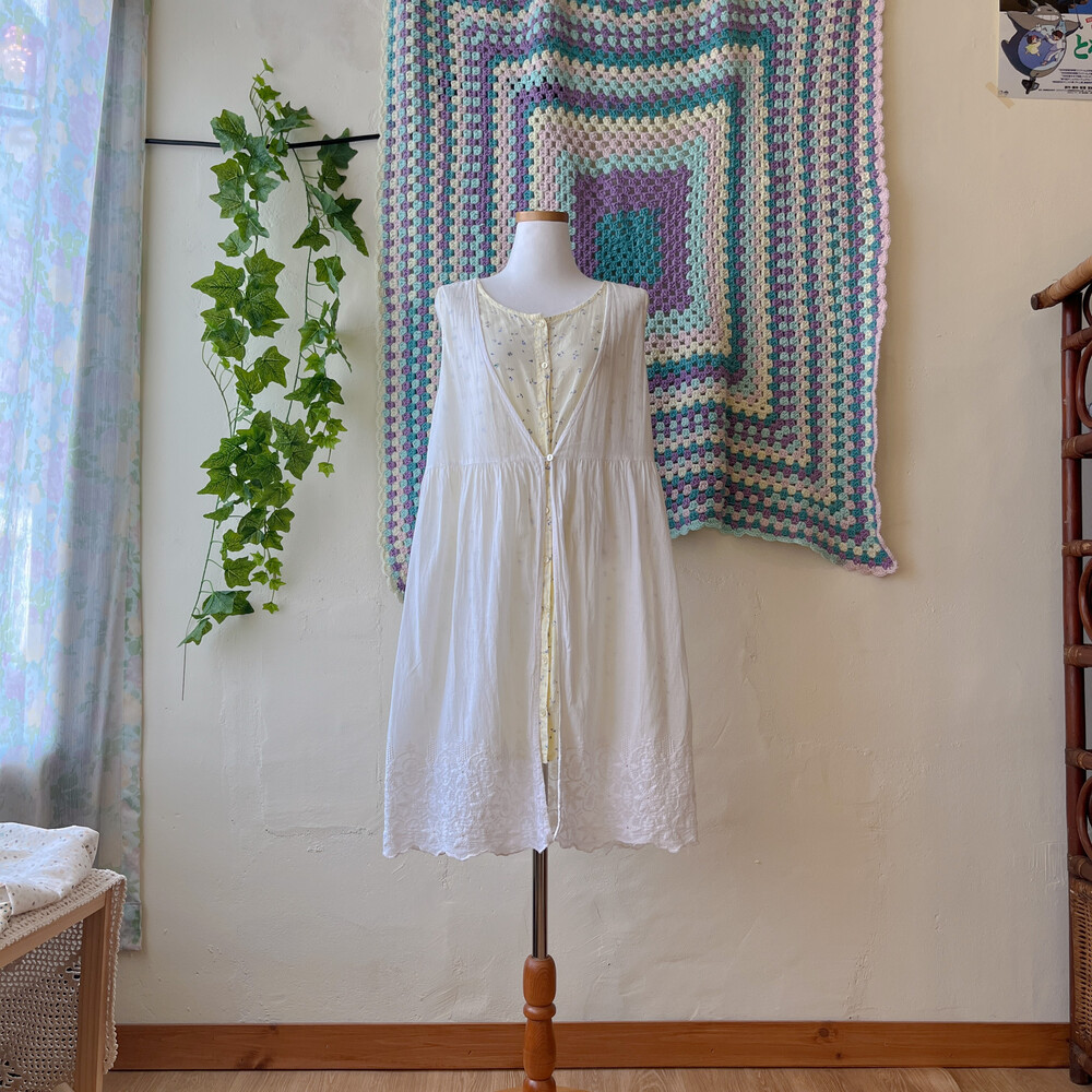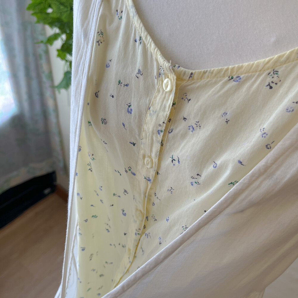 버터 노랑 색감의 민소매 바선생 원피스예요