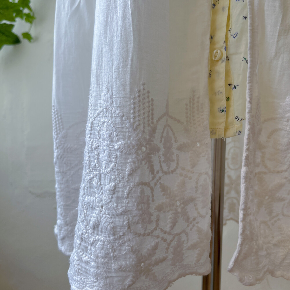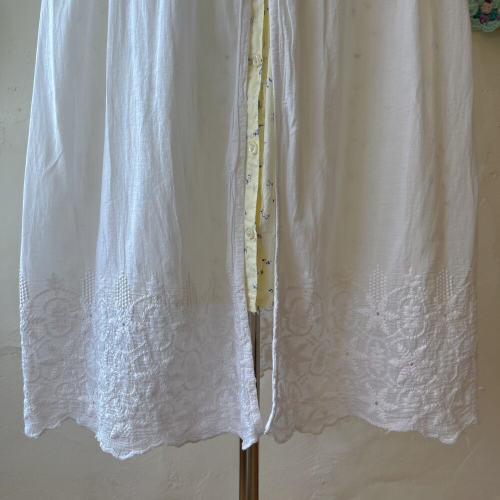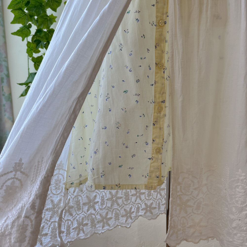 잔잔한 패턴들이 들어가 있고 밑단에 자수 포인트가 있어요