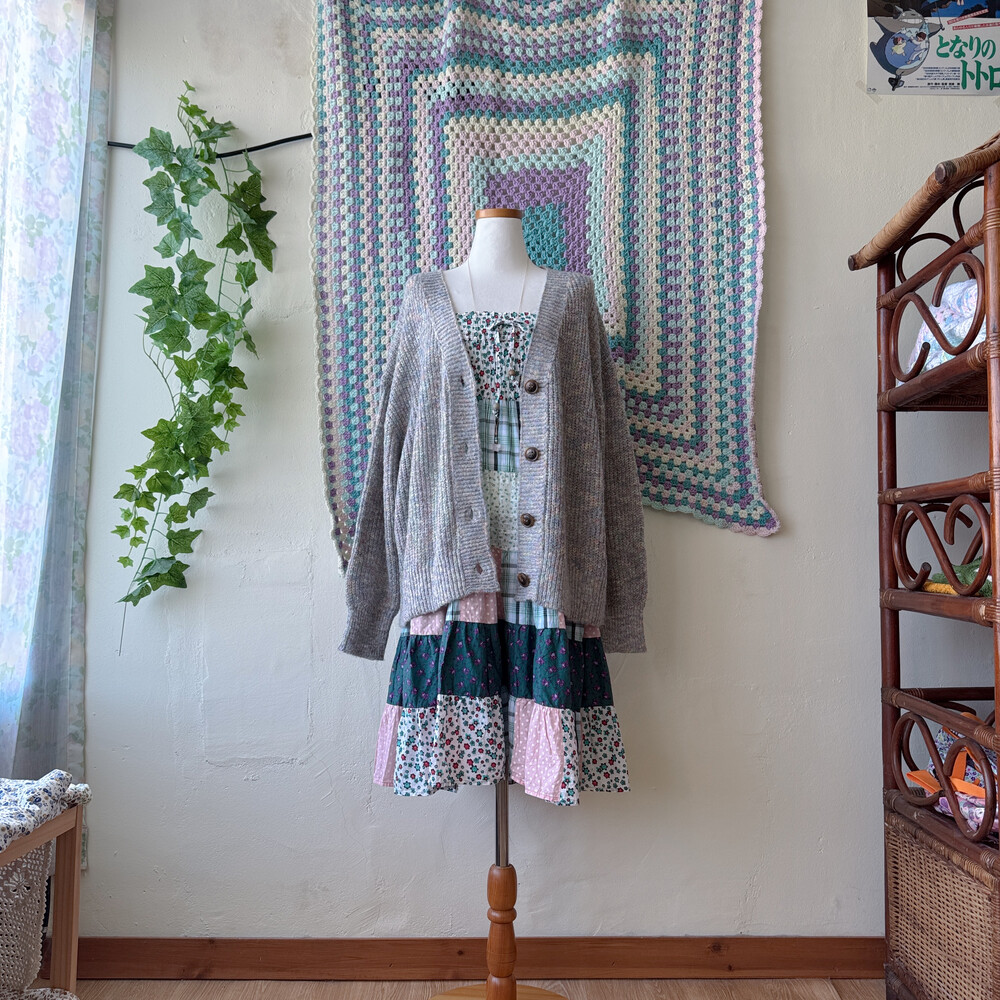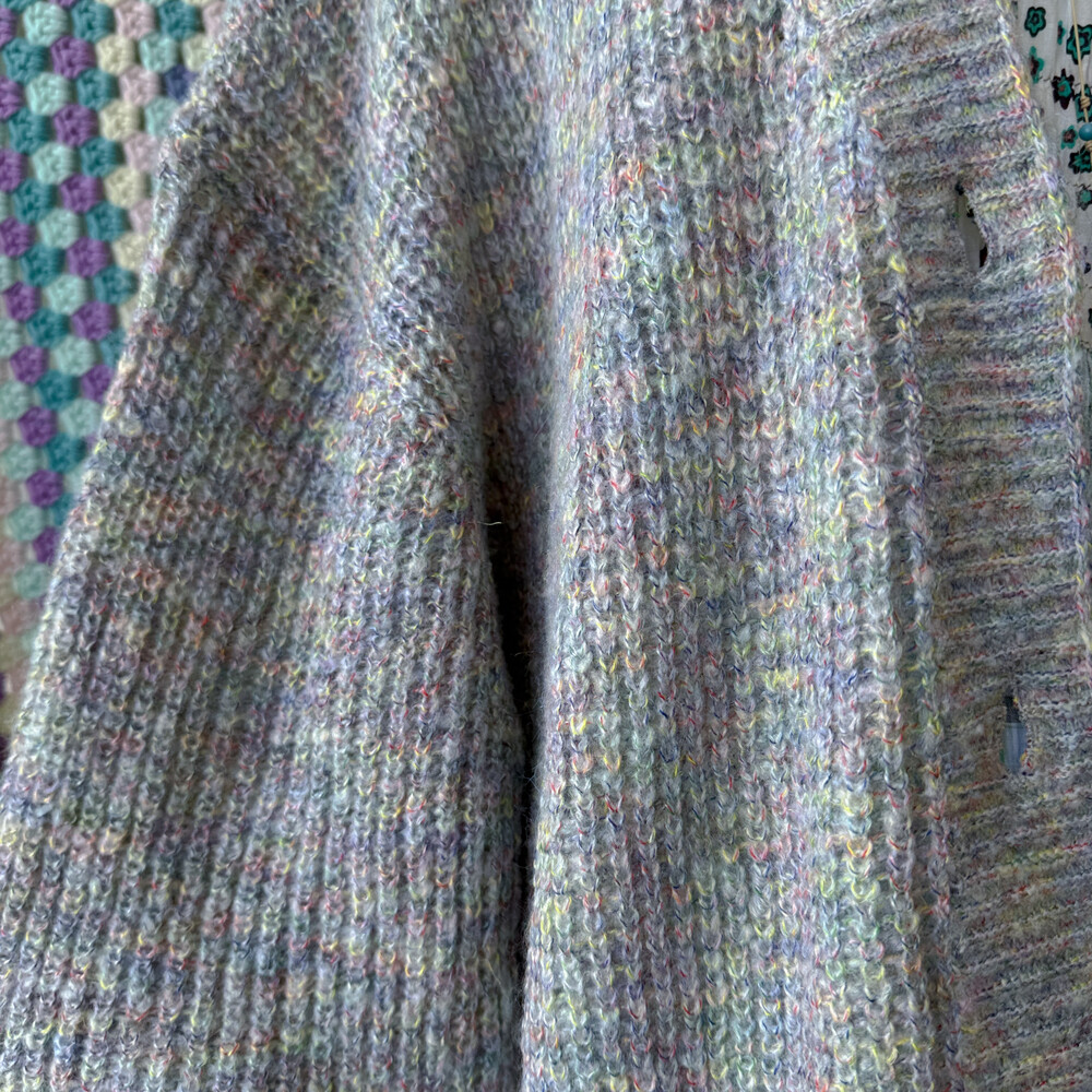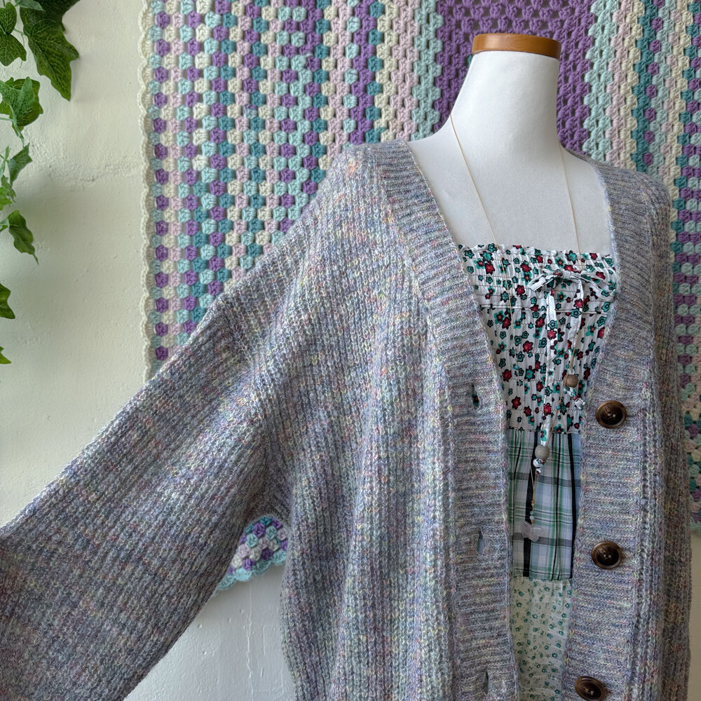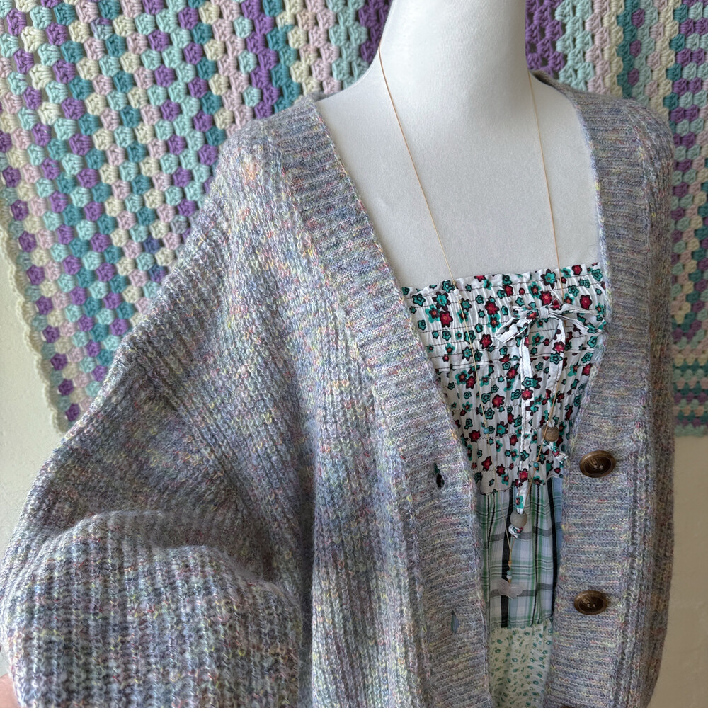퍼플, 네이비, 그린 등 색감 조합의 믹스 가디건이에요