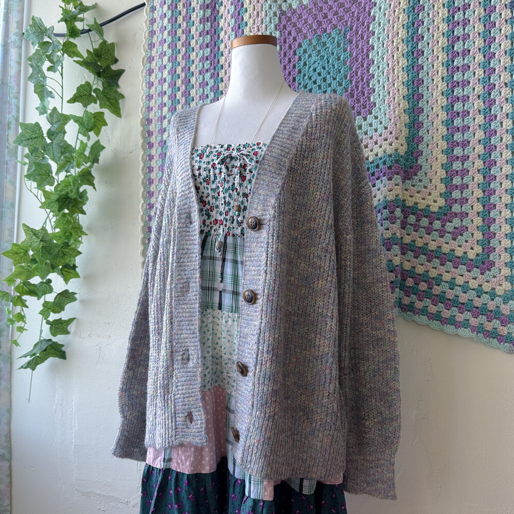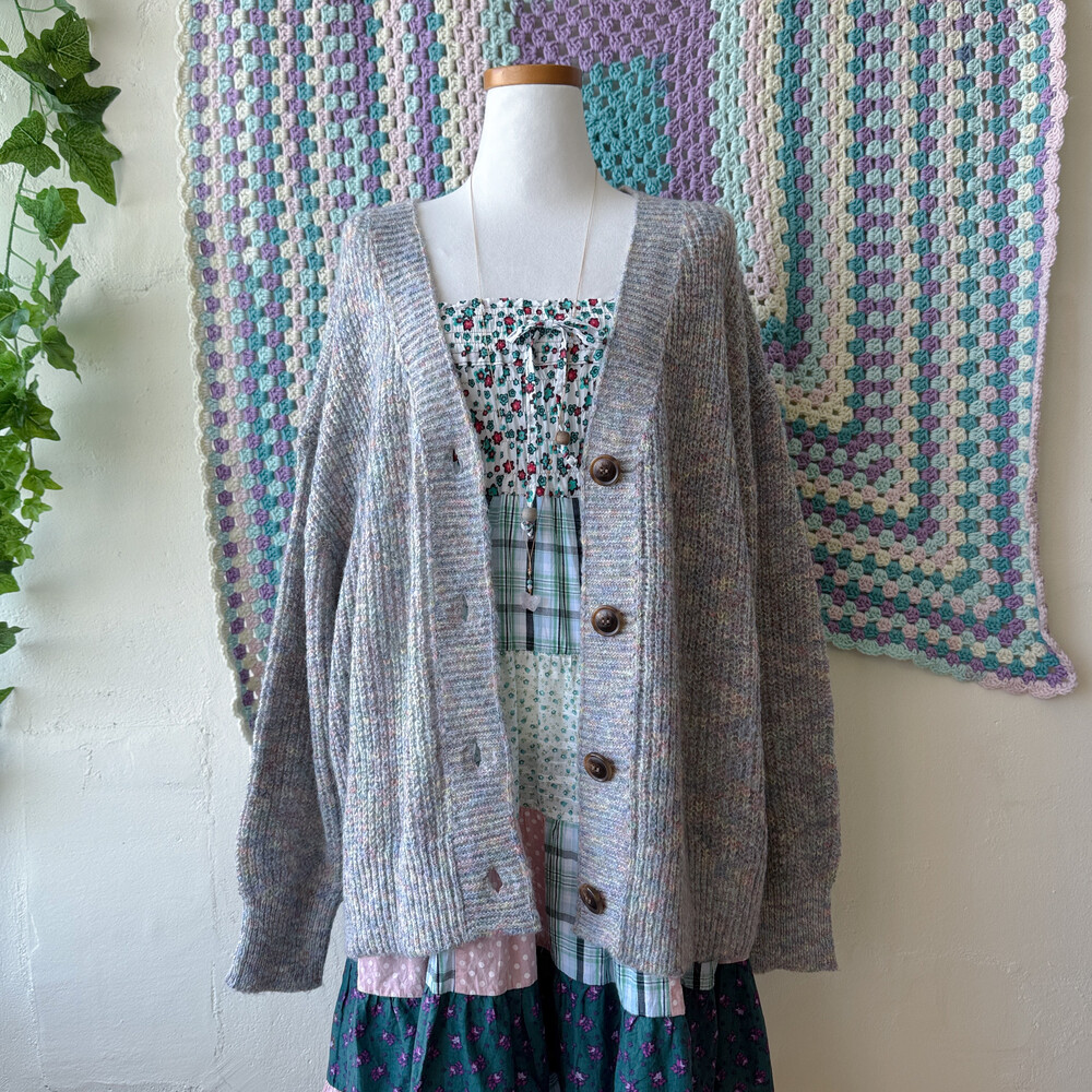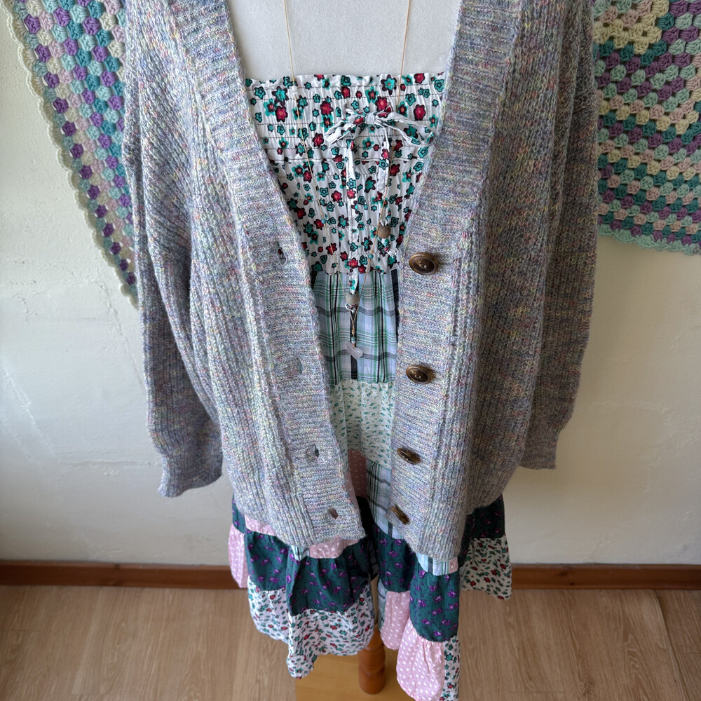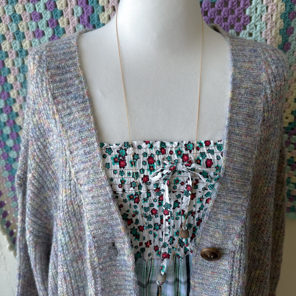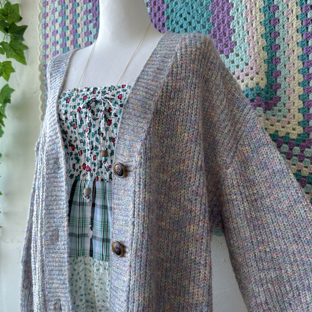 퍼플, 네이비, 그린 등 색감 조합의 믹스 가디건이에요