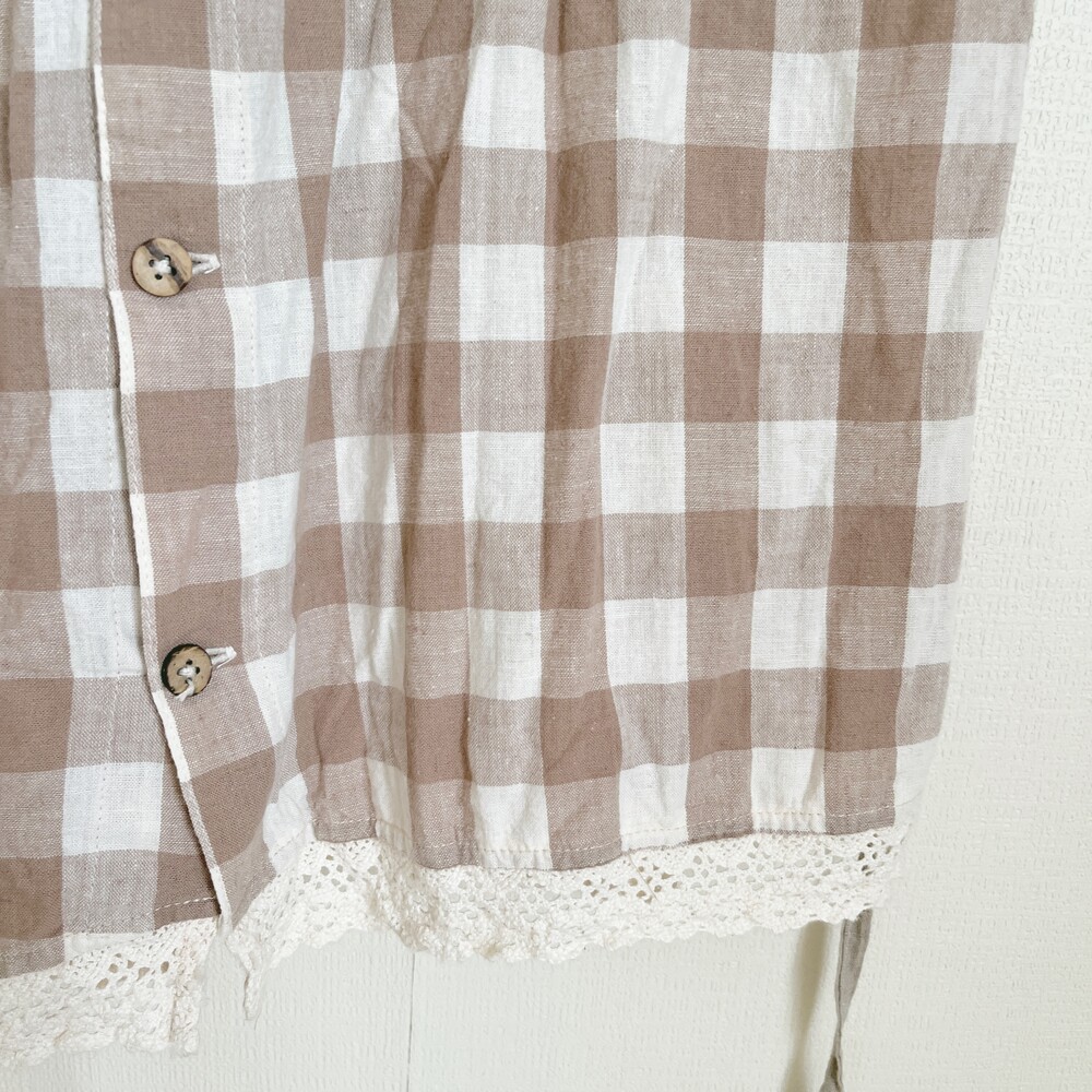 beige check back button linen ops